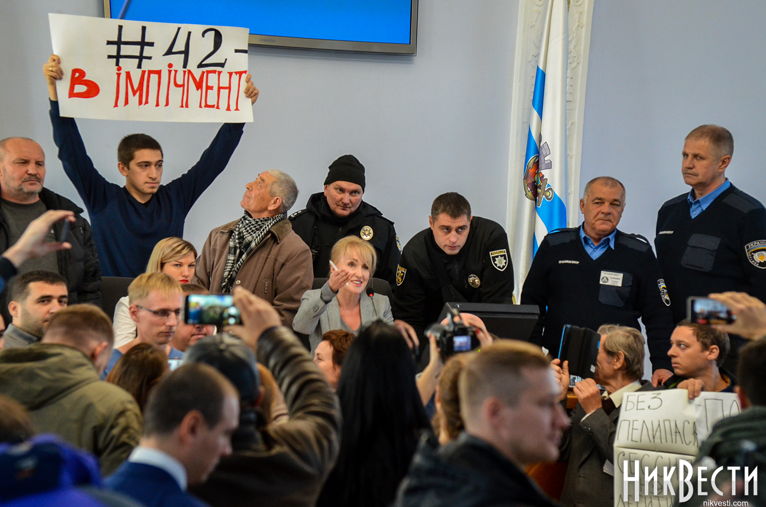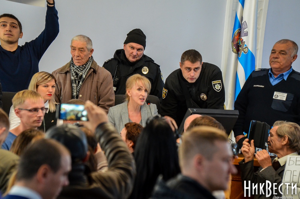 На это временно исполняющая обязанности горсовета Татьяна Казакова спросила, есть ли полиция в зале, чтоб обеспечить правопорядок.