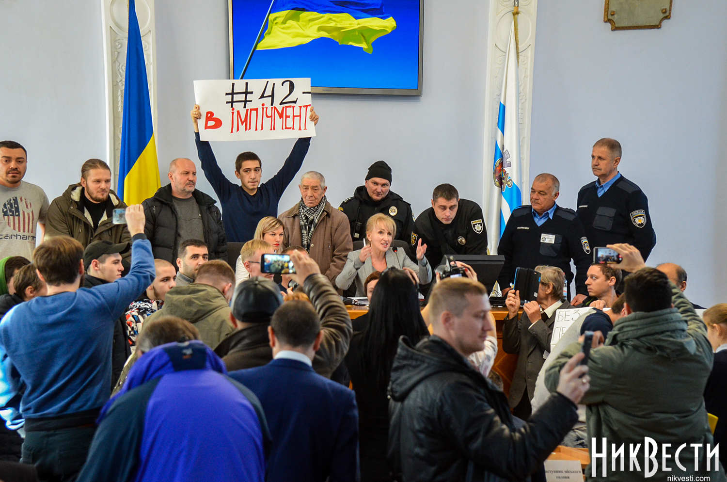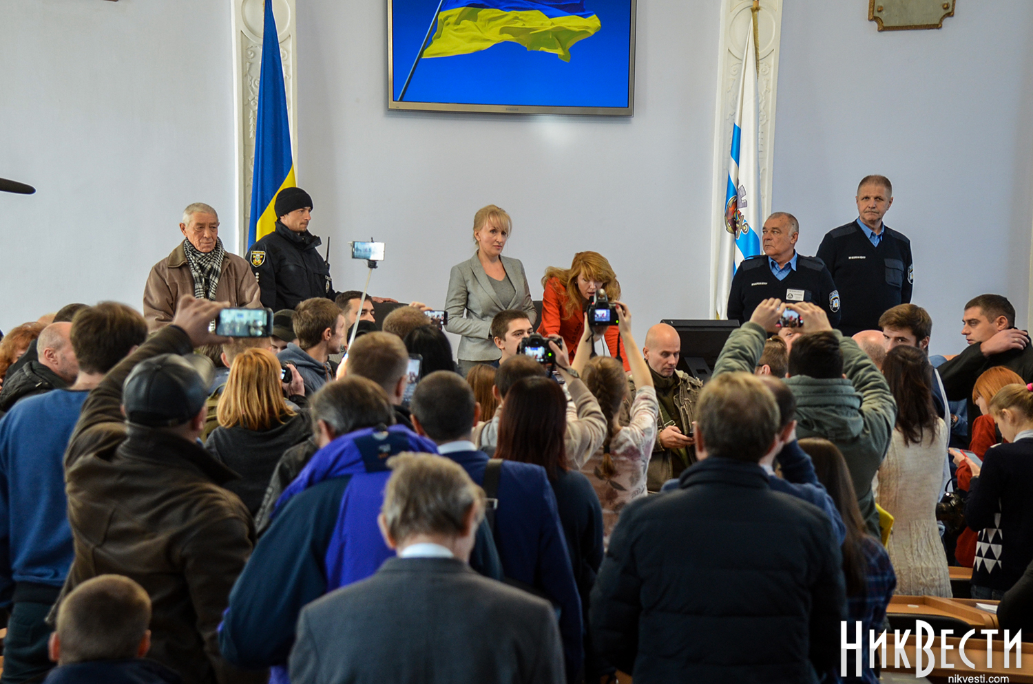 — После ошибки честные народные избранники идут в отставку. Это должны сделать и вы. Община Николаева два раза выходила на вече, ставила подписи под обращением к Верховной Раде Украины. Мы просим народных депутатов переизбрать весной горсовет. Сегодня вашим первым решением должно быть обращение в облгосадминистрацию о назначении новых выборов в горсовет Николаева, - сказала представитель ДемАльянса Евгения Матейчук.