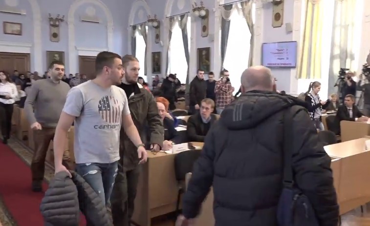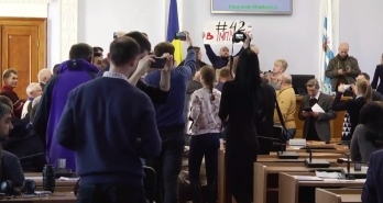 Сторонники Сенкевича заблокировали трибуну горсовета и сорвали сессию