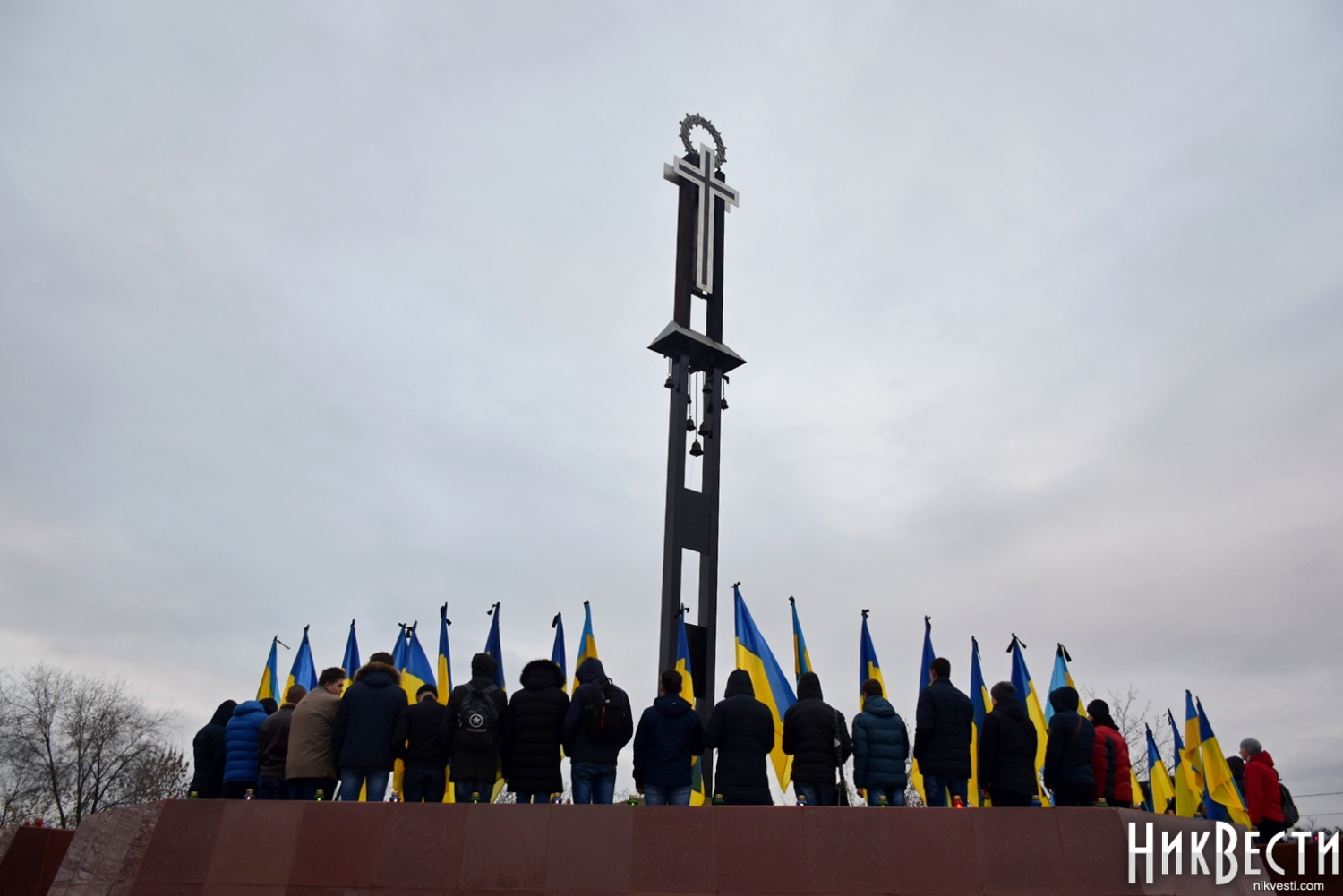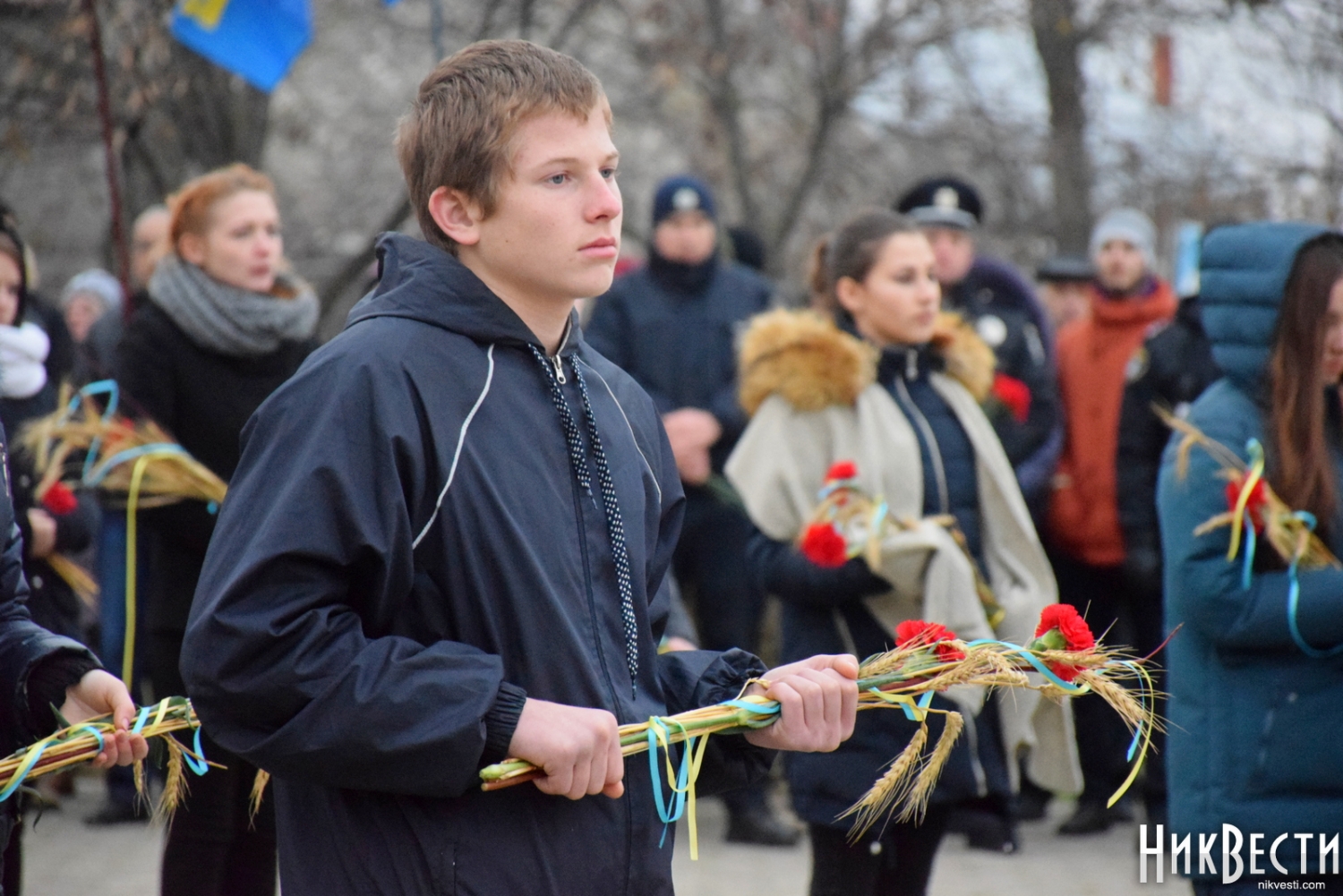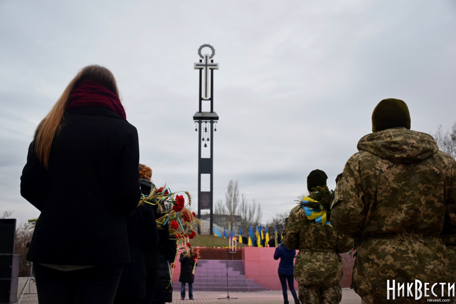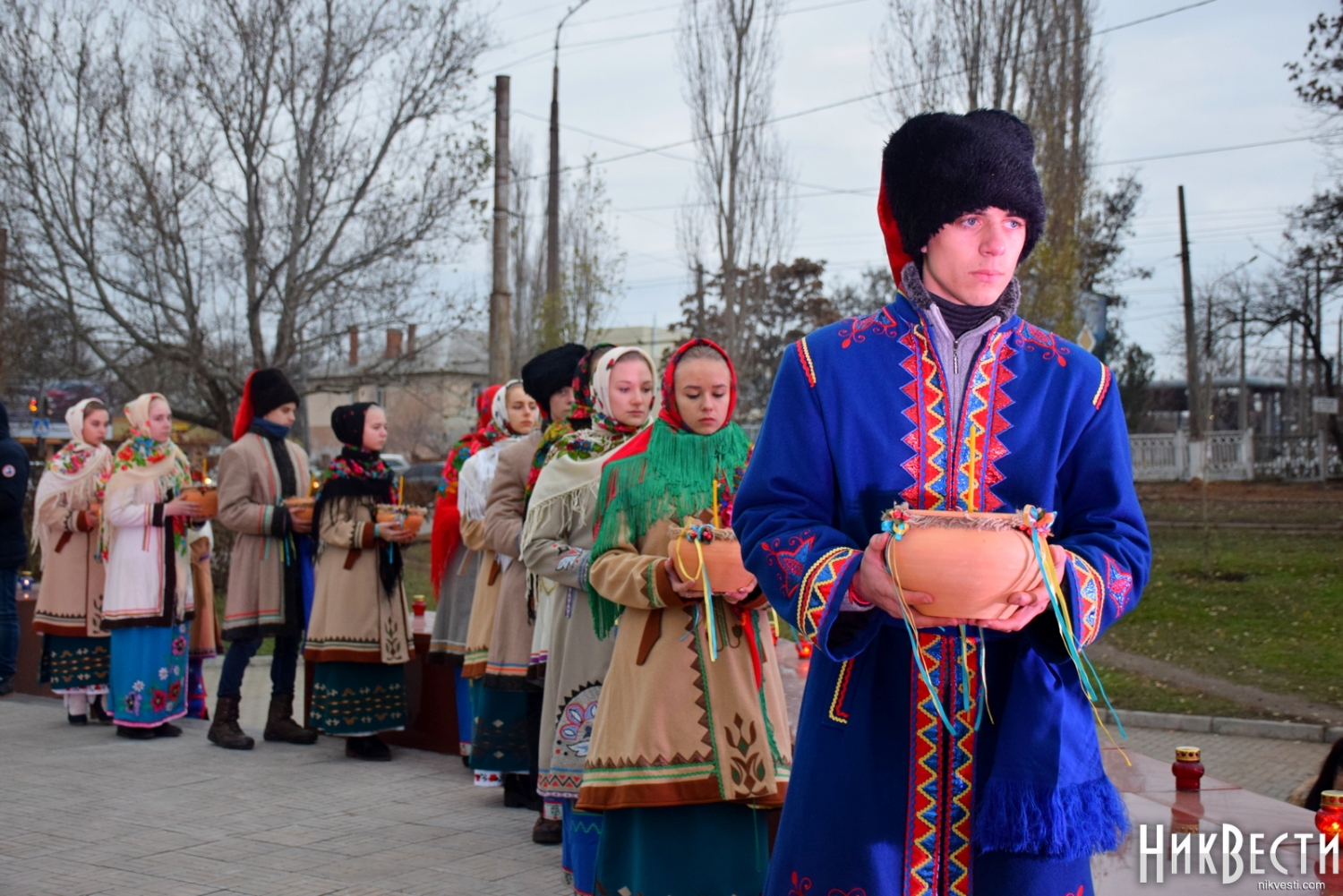 По традиции ровно в 16:00 по всей Украине, в том числе и в Николаеве, прошла минута молчания. После этого николаевцы возложили цветы к памятнику, также оставив горшочки с пшеном, лампадки и свечи.