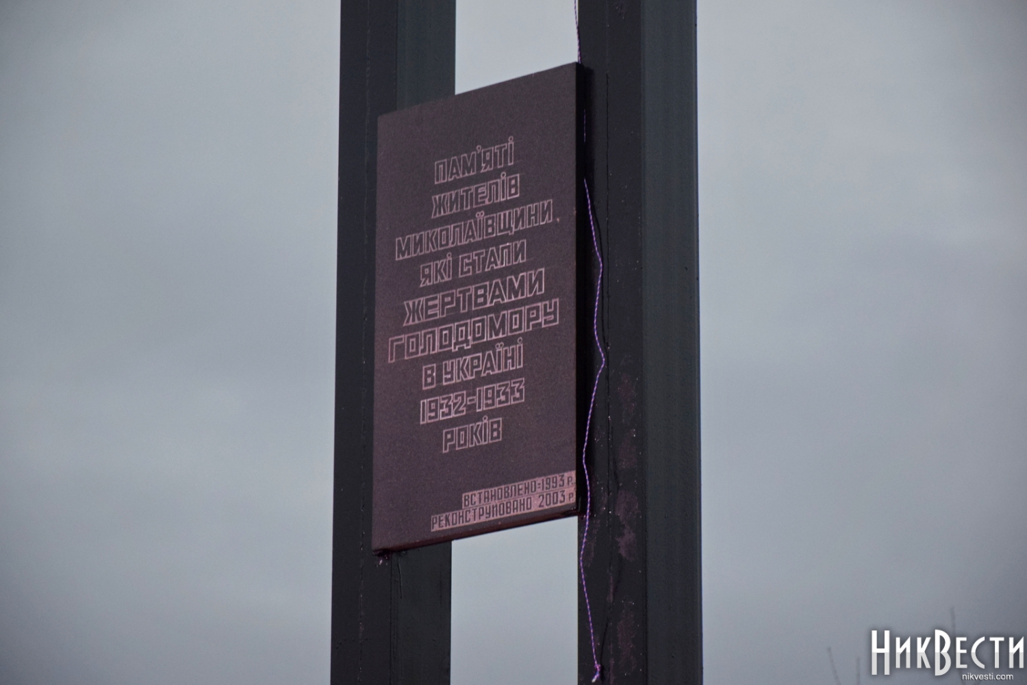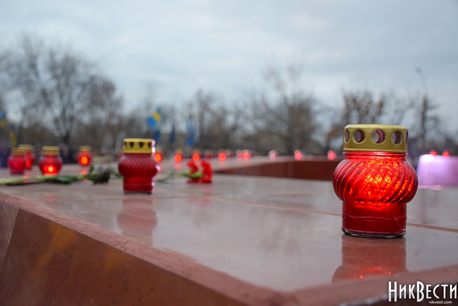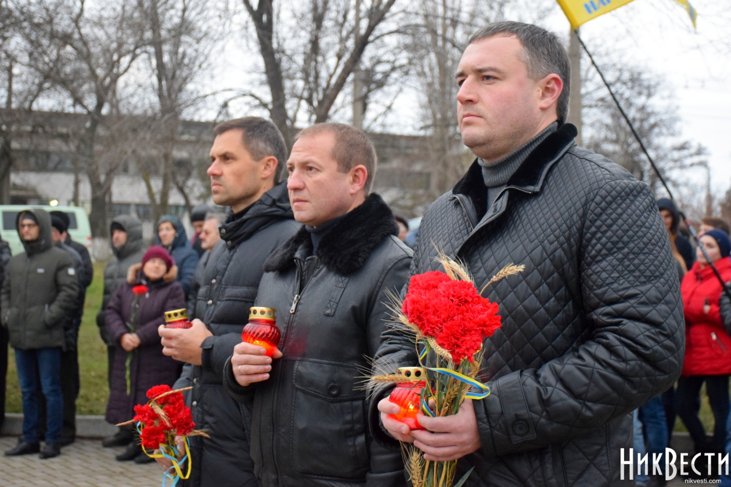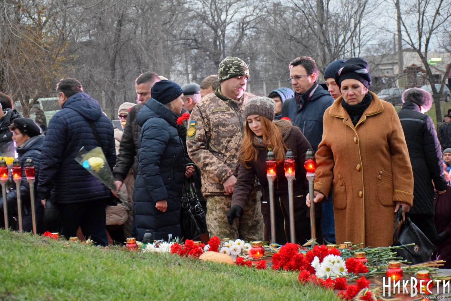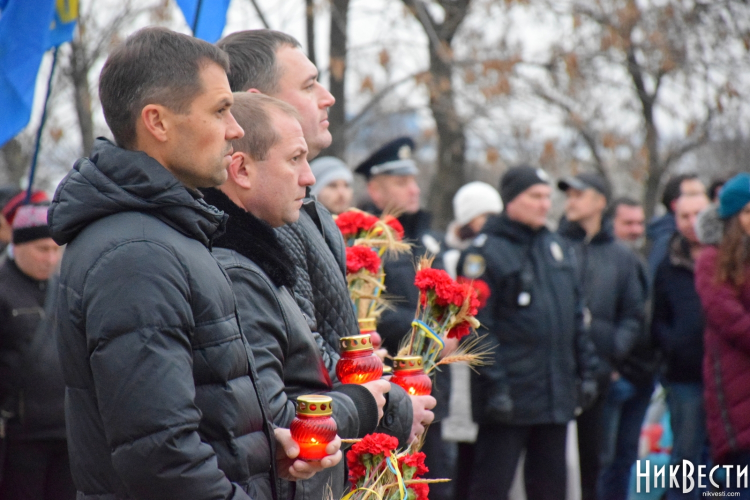 По традиции ровно в 16:00 по всей Украине, в том числе и в Николаеве, прошла минута молчания. После этого николаевцы возложили цветы к памятнику, также оставив горшочки с пшеном, лампадки и свечи.
