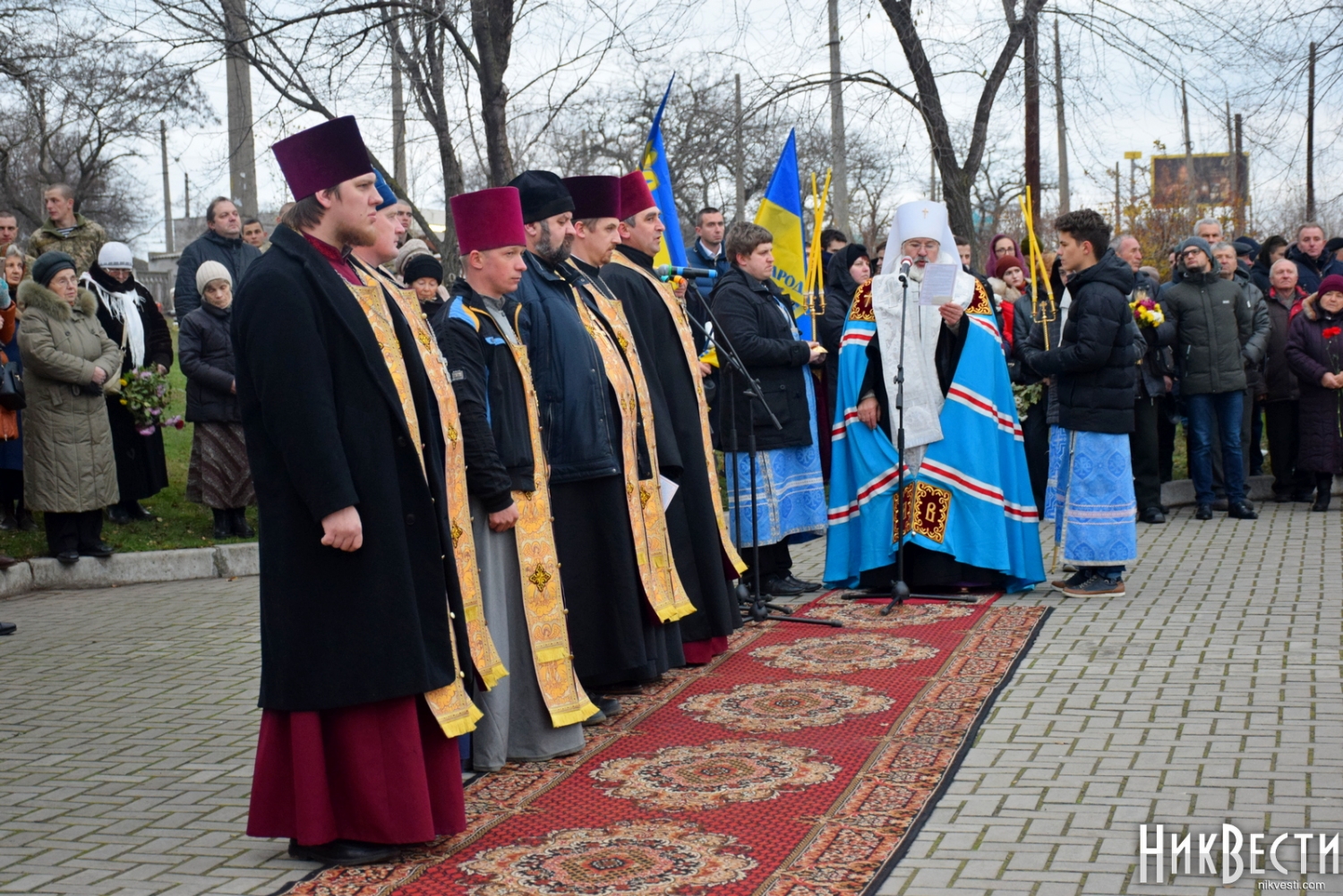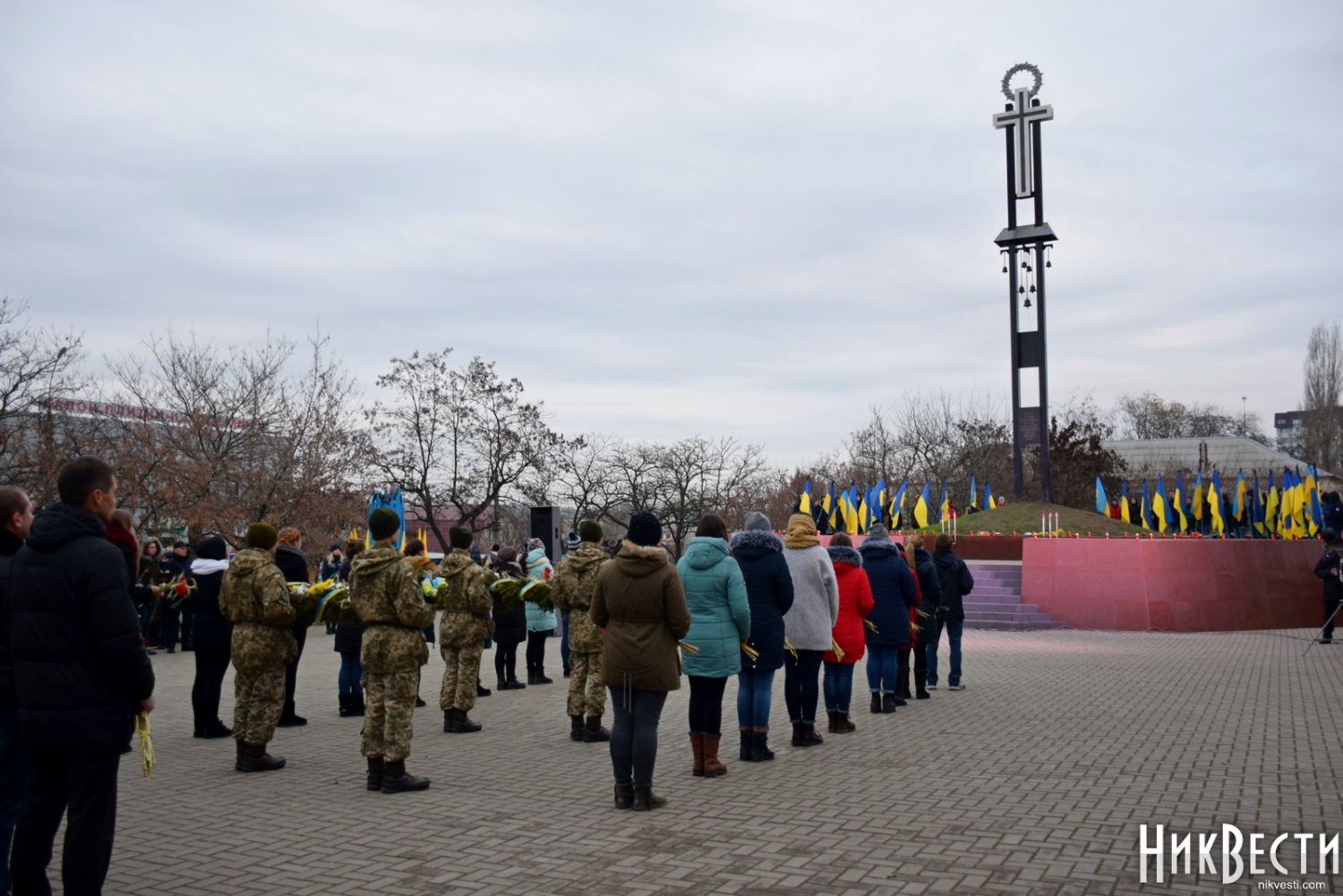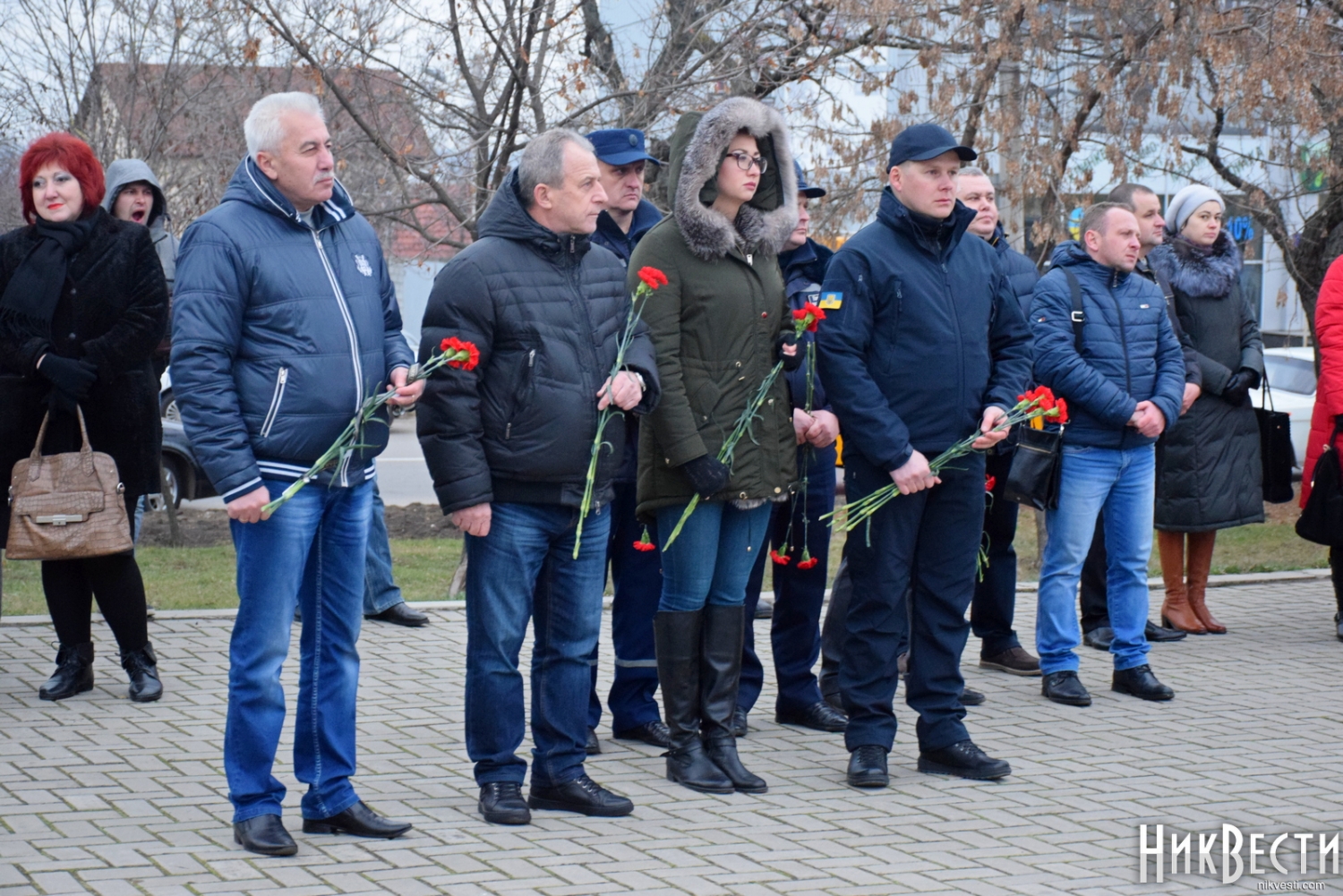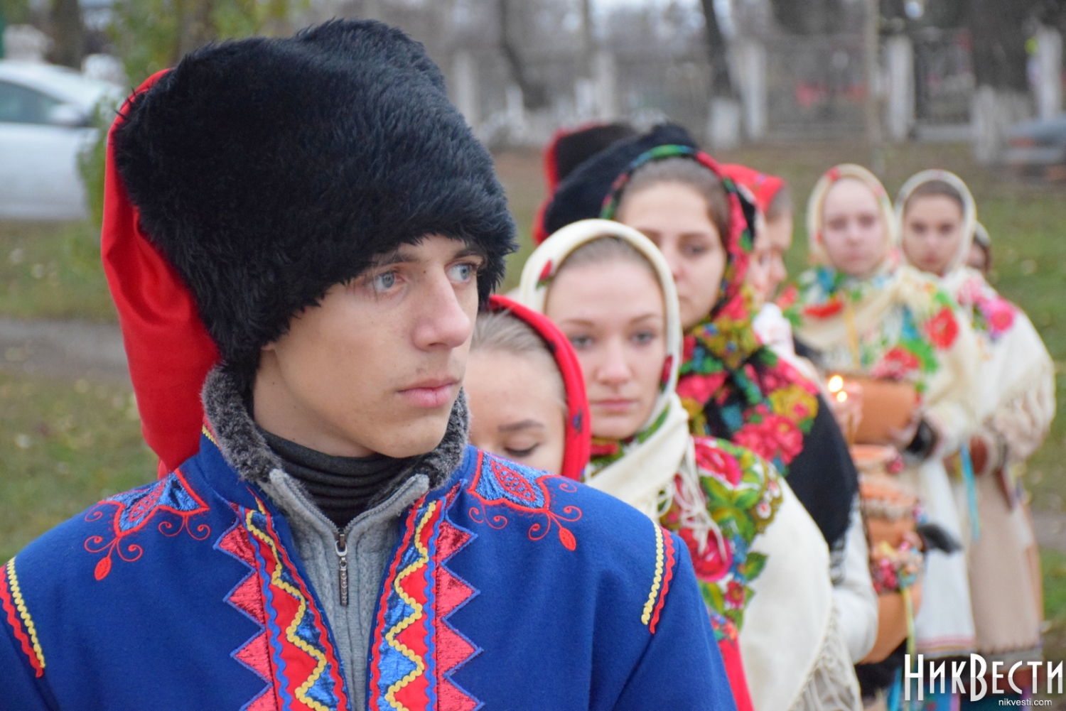 По традиции ровно в 16:00 по всей Украине, в том числе и в Николаеве, прошла минута молчания. После этого николаевцы возложили цветы к памятнику, также оставив горшочки с пшеном, лампадки и свечи.