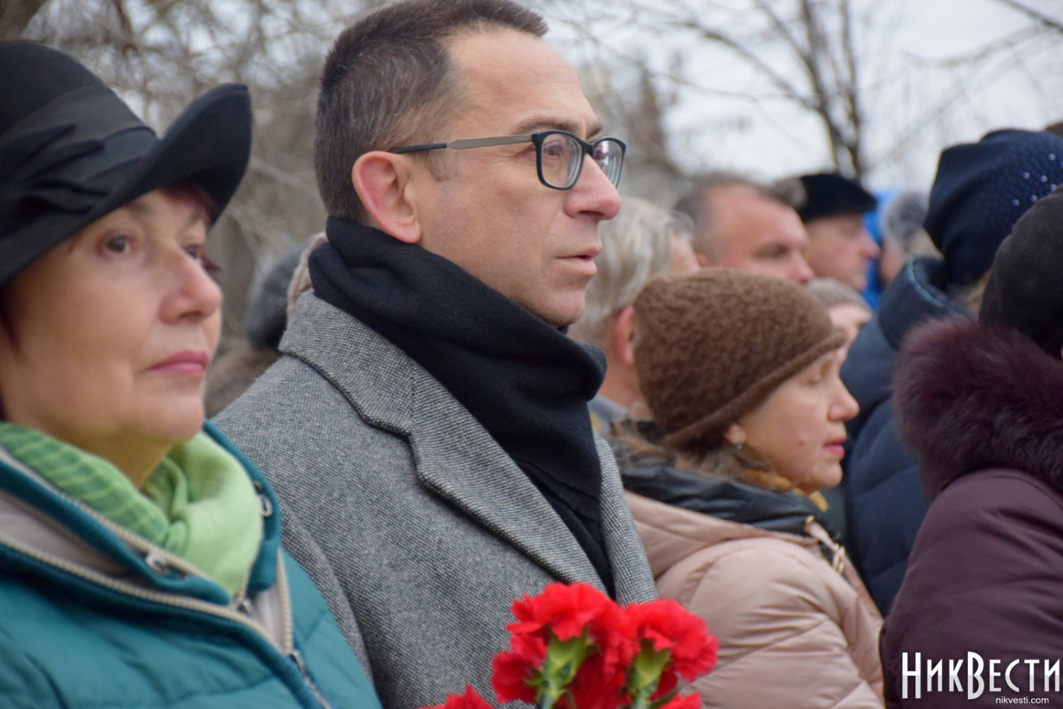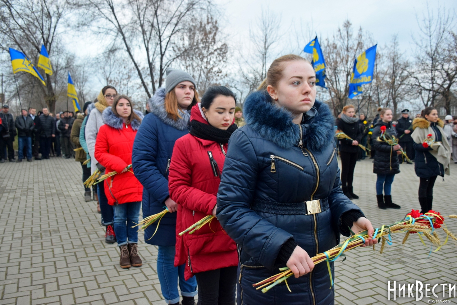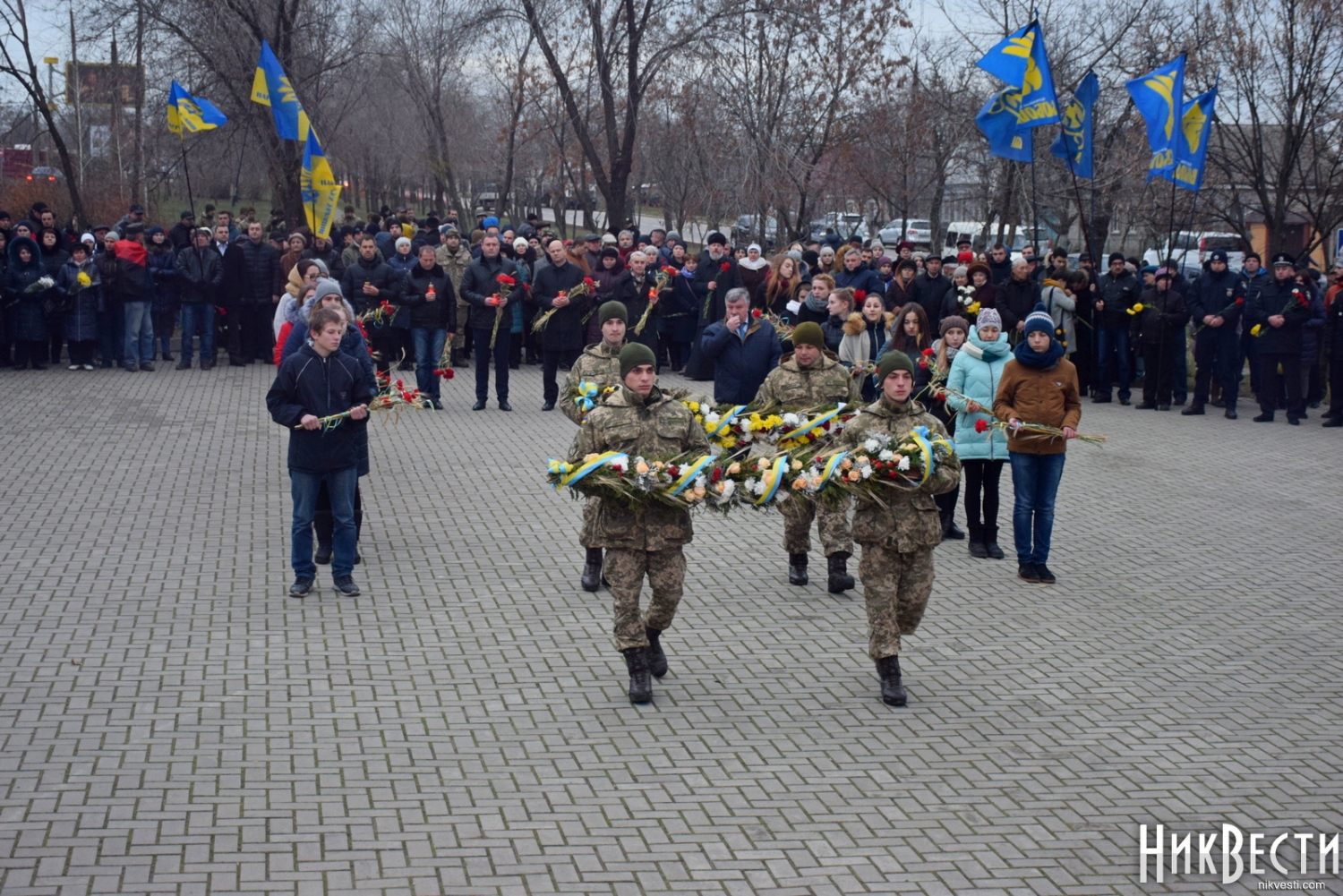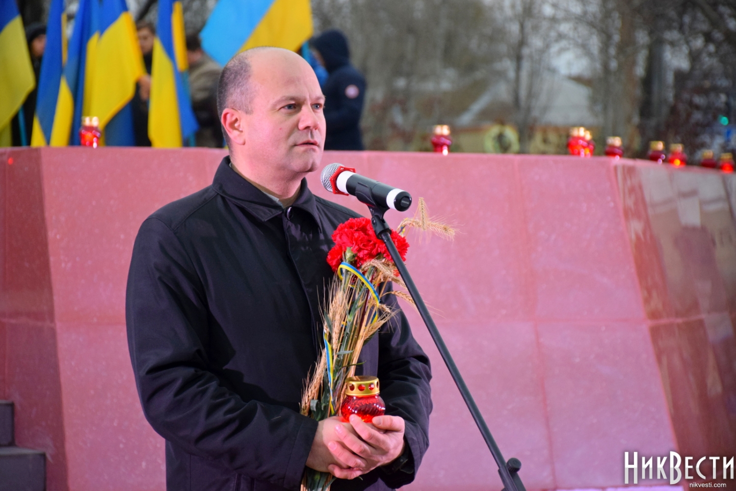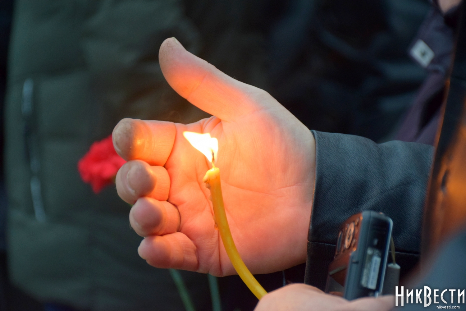По традиции ровно в 16:00 по всей Украине, в том числе и в Николаеве, прошла минута молчания. После этого николаевцы возложили цветы к памятнику, также оставив горшочки с пшеном, лампадки и свечи.