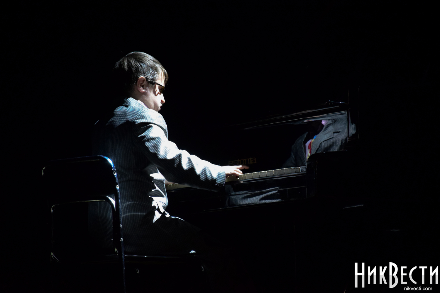 Гостем Jubilee X стал полюбившийся николаевцам незрячий пианист Иван Мохий, который уже несколько раз выступал здесь с программой «Джаз в темноте». Владимир Алексеев отметил, что музыкант оказался настолько близок слушателям, что он не мог не пригласить его снова. На большой сцене, погруженной во мрак, яркий столп света падал только на лицо Ивана Мохия и его пальцы, перебегавшие по клавишам рояля «Эстония». В следующим номере к нему присоединился еще один слепой музыкант Геннадий Суменков, исполнивший песню победителя конкурса Евровидение-2017 португальца Сальвадора Собрала «Amar pelos dois». В этой песне поется о сердце, которое «все выдержит и сможет любить за двоих».