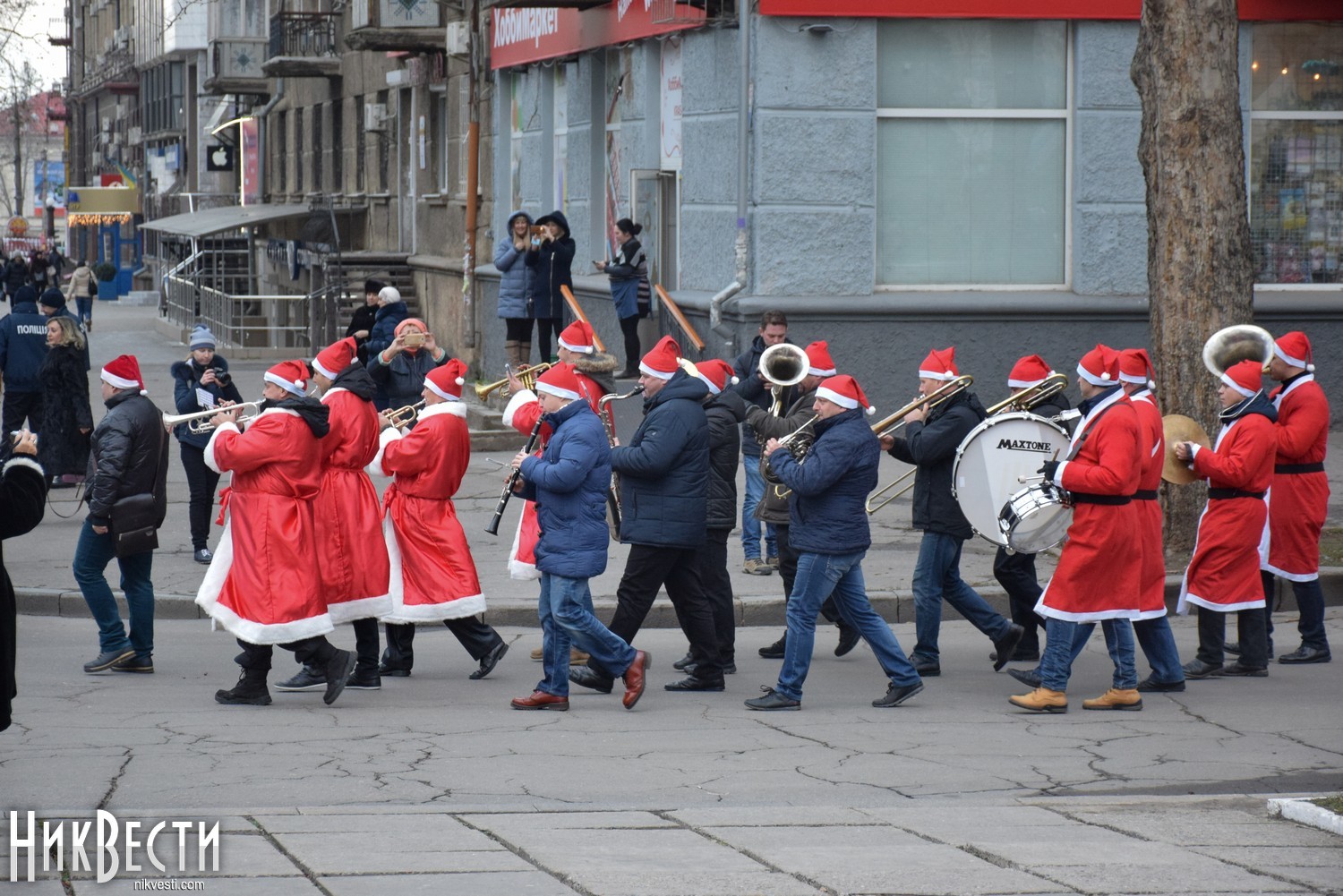 После этого Святой Николай, его сказочные помощники и празднично одетые горожане составили колонну, которая под музыку оркестра двинулась из детского городска к елке у Каштанового сквера. Попутно Святой Николай поздравлял горожан с праздником от своего имени.