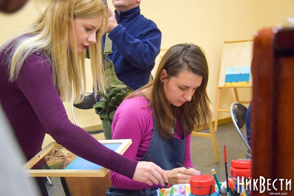 В выставочном зале Николаевского городского дворца культуры и искусств сегодня, 23 декабря, открылась благотворительная выставка, на которой представлены работы ветеранов АТО со всей Украины. В рамках проекта проходят мастер-классы для военнослужащих и членов их семей.
