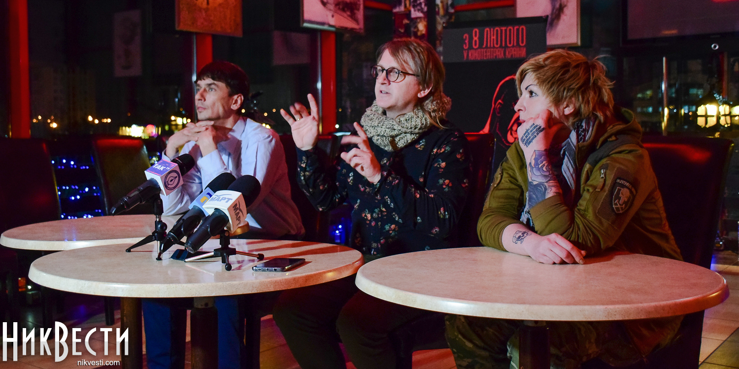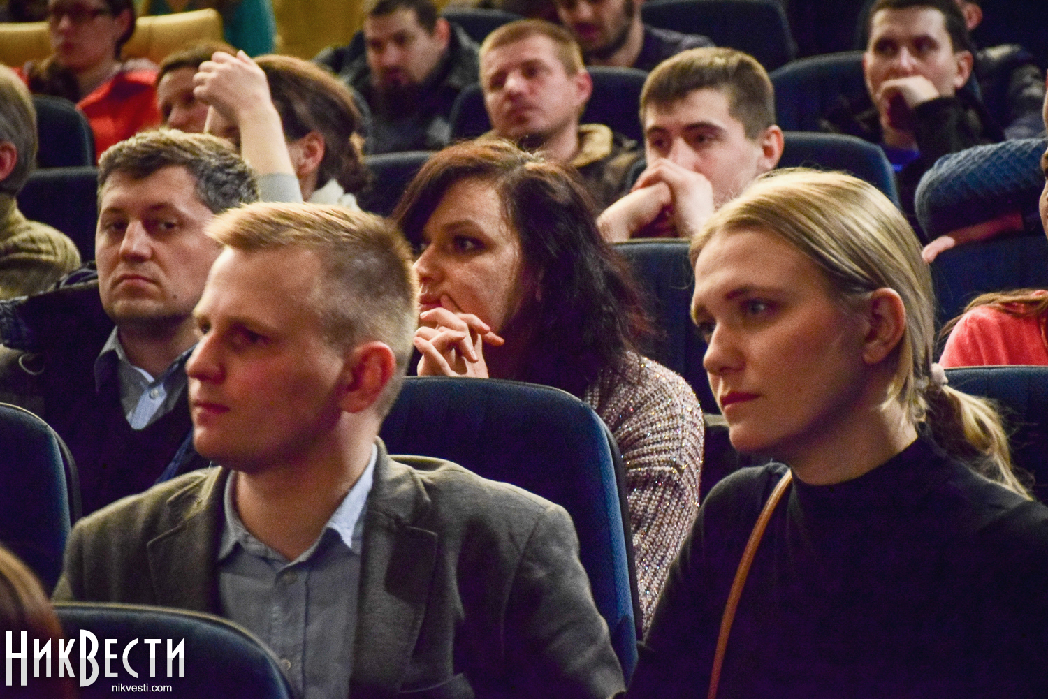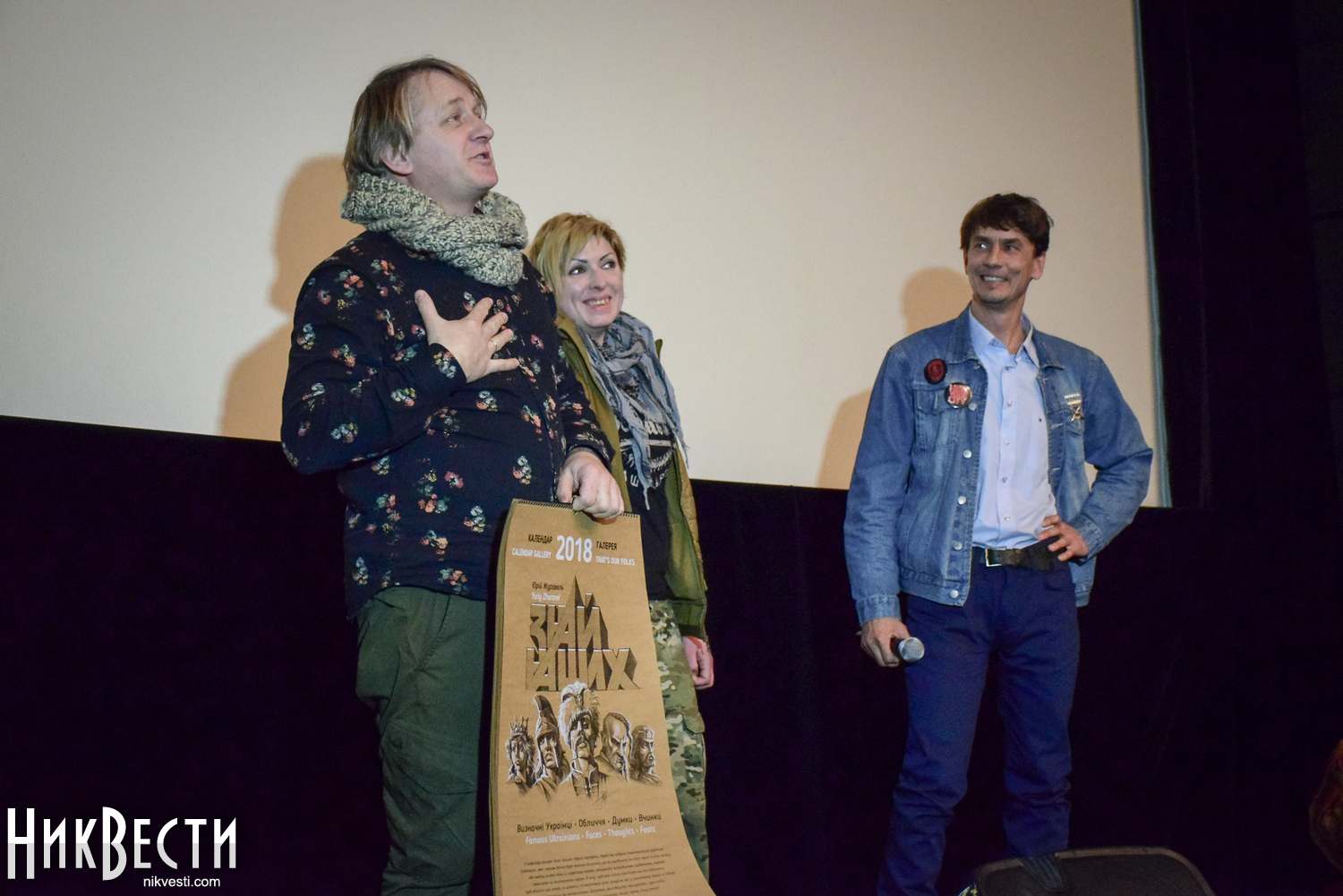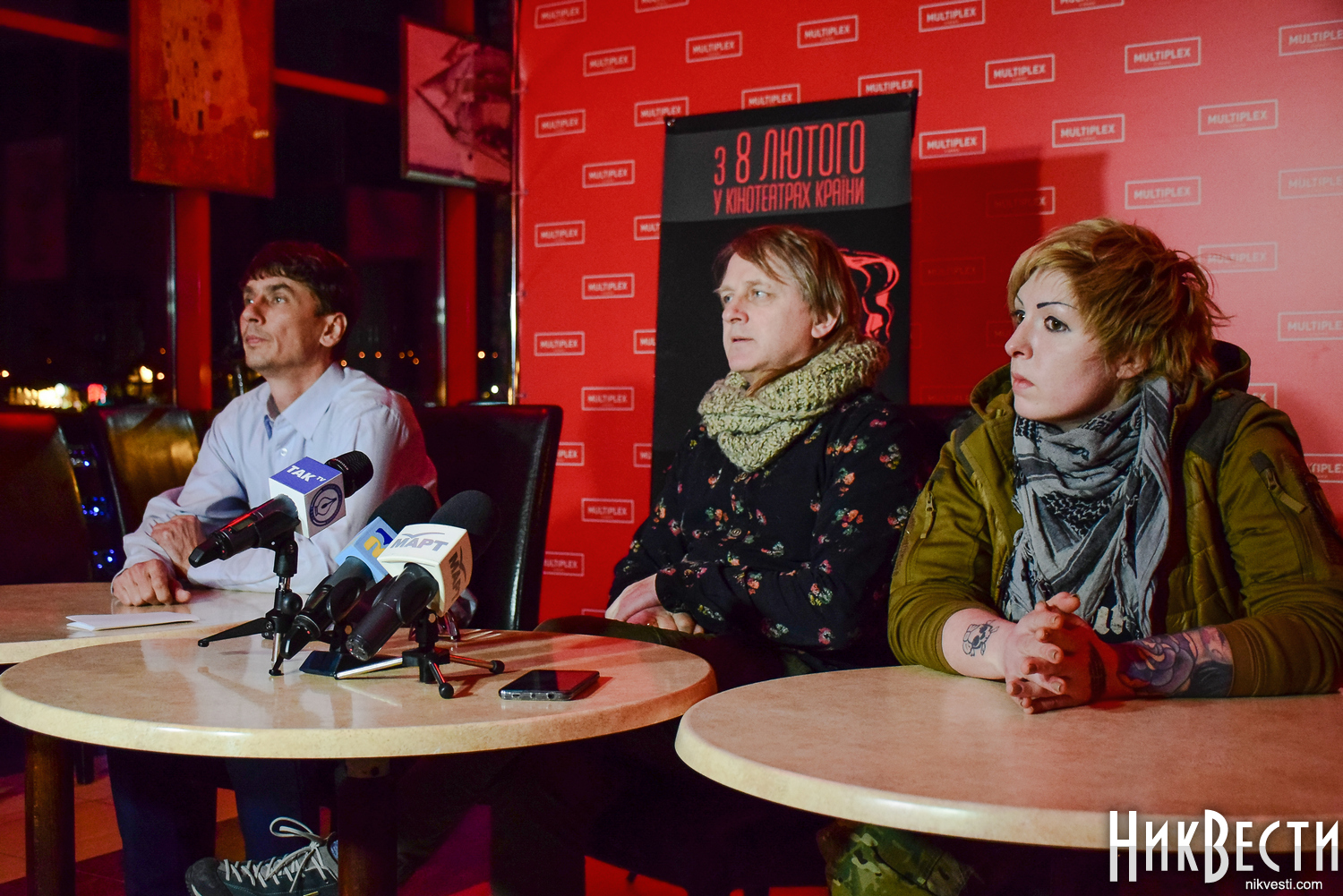 Представлять фильм в Николаев приехали режиссер ленты Иван Ясний, режиссер монтажа Ярослав Попов, а также журналистка и боец Вооруженных сил Украины Валерия Бурлакова, передают НикВести.