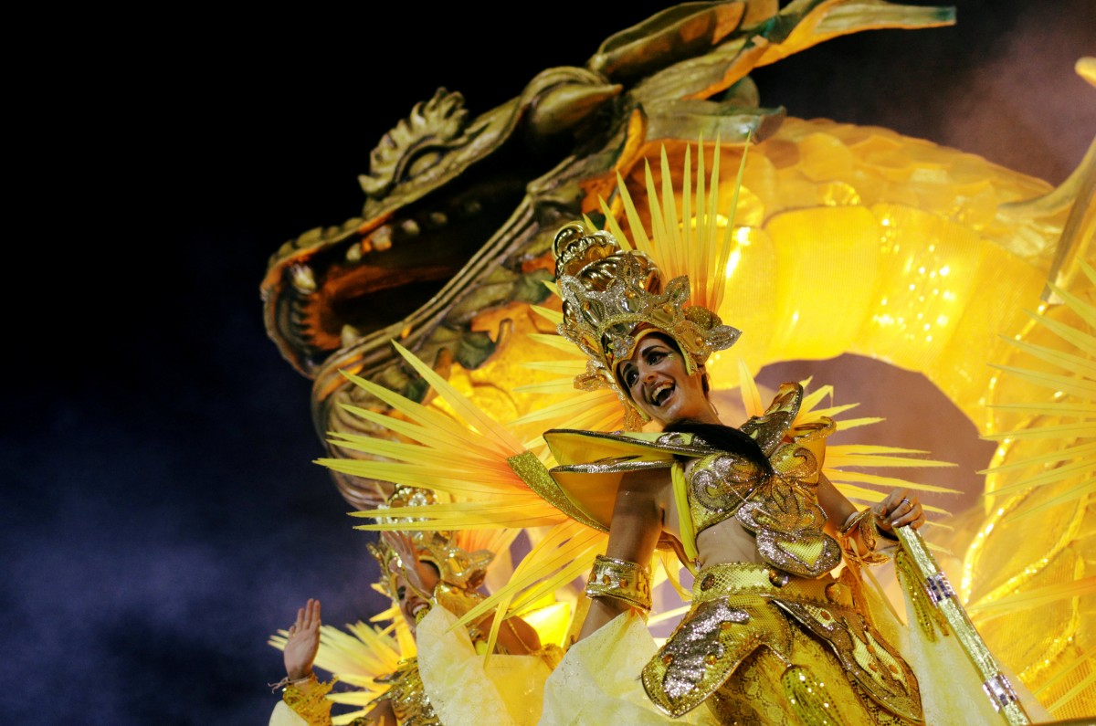 На самбодром в Рио-де-Жанейро вышли знаменитые школы самбы и начали соревнование за право называться лучшими танцорами.