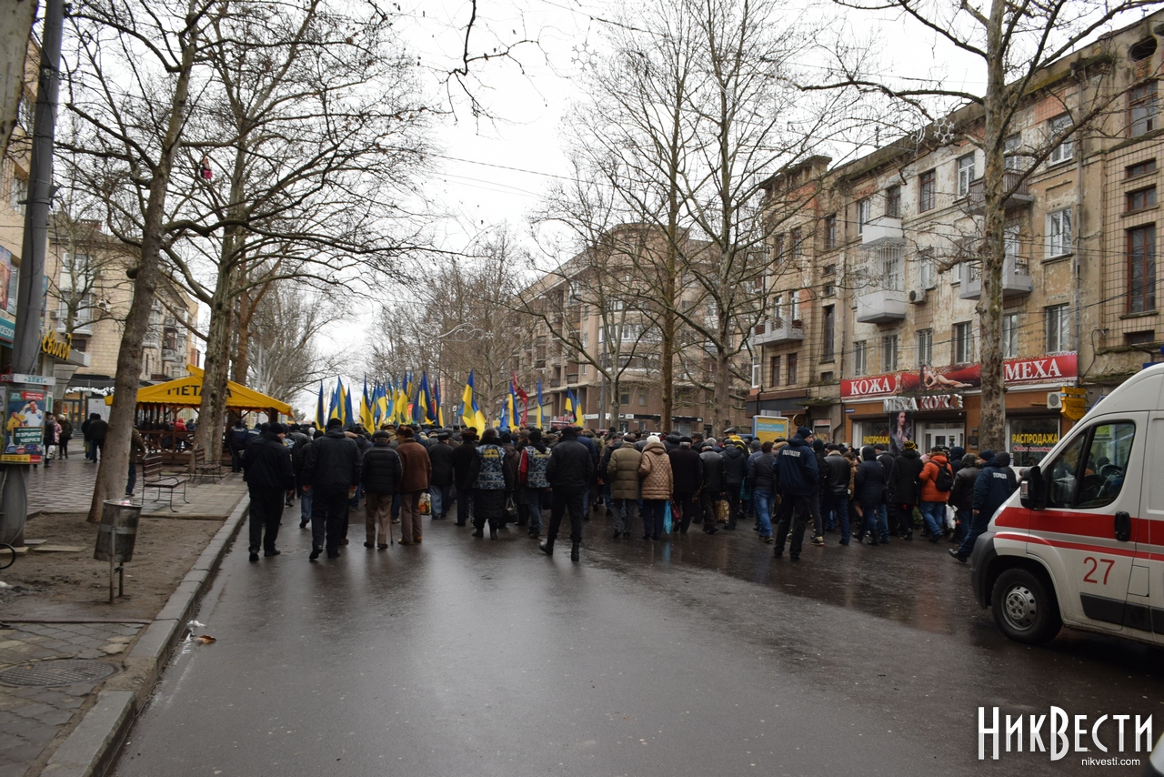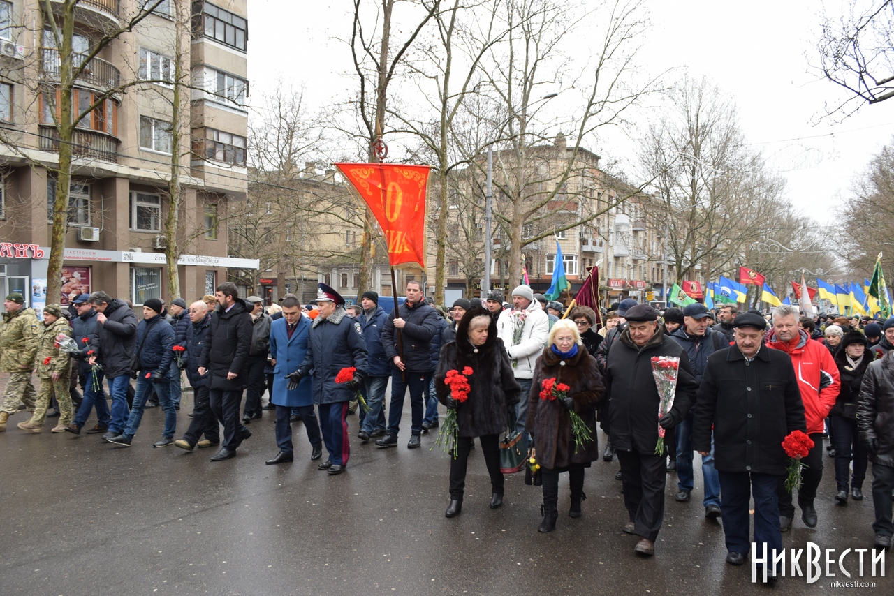 Мемориальный марш ветеранов традиционно стартовал от Областного Дворца культуры. Шествие прошло по улице Соборной, мимо Каштанового сквера. На улице Адмиральской колонна повернула налево, а затем по Пушкинской дошла до памятника воинам-интернационалистам.