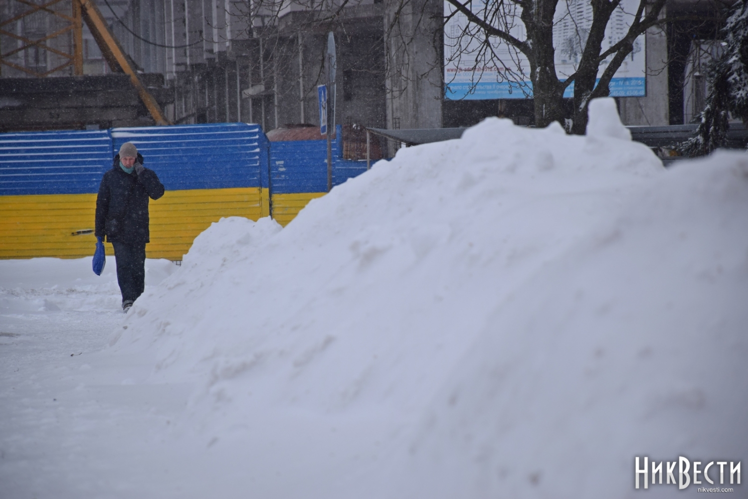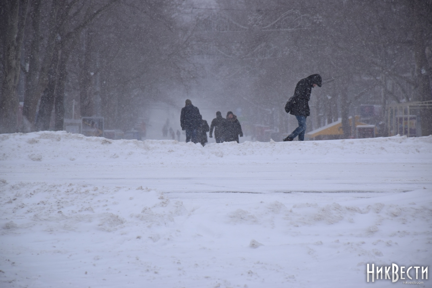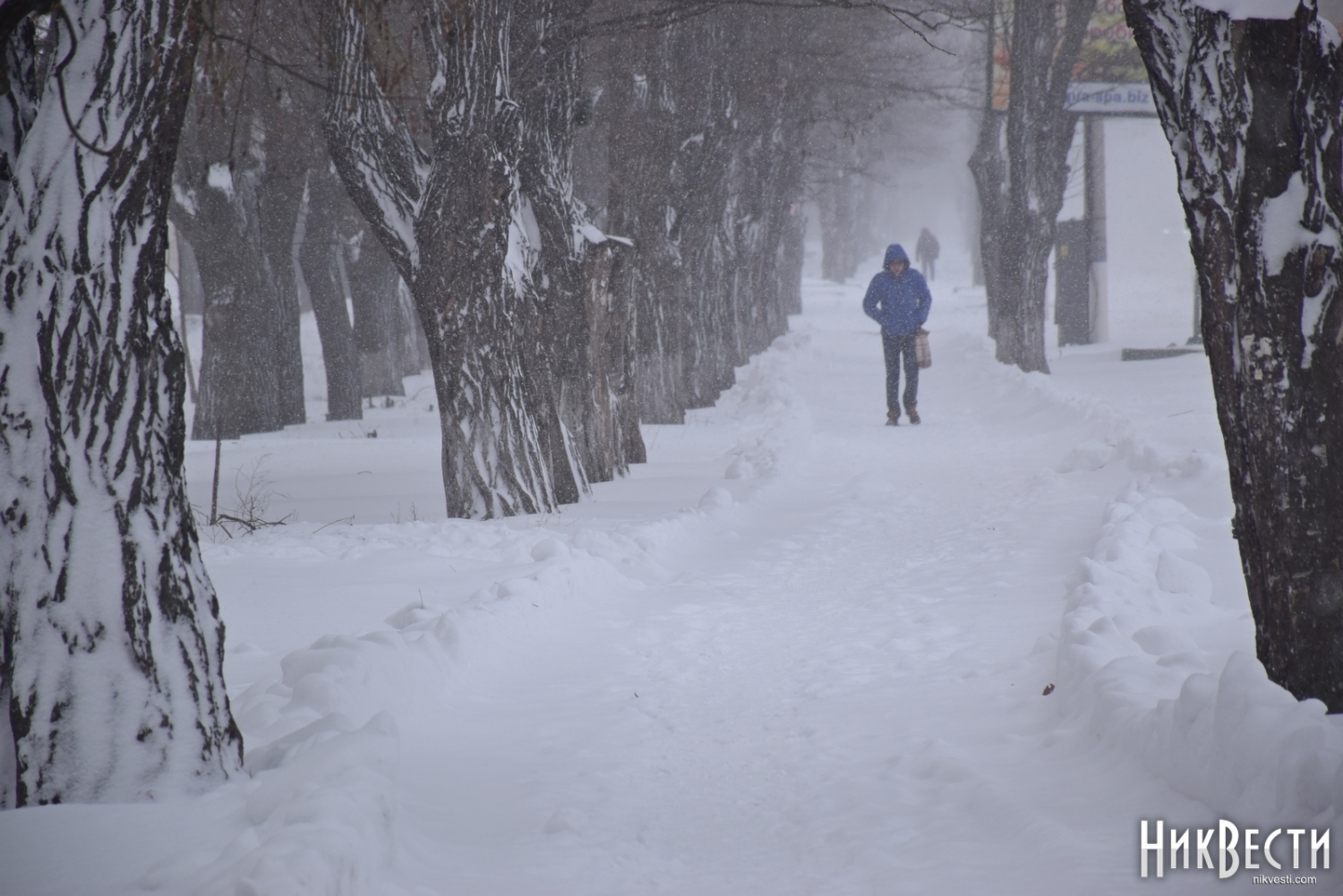В четверг, 1 марта, в Николаеве продолжился сильный снегопад из-за активного циклона, коммунальные службы продолжают убирать снег на основных магистралях.