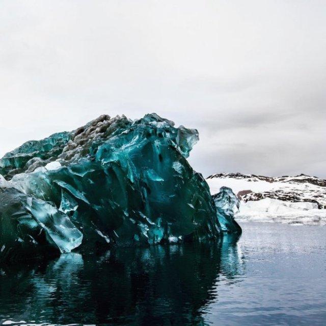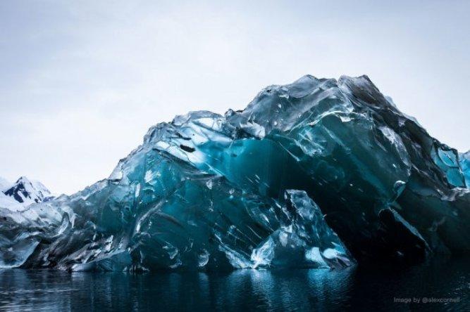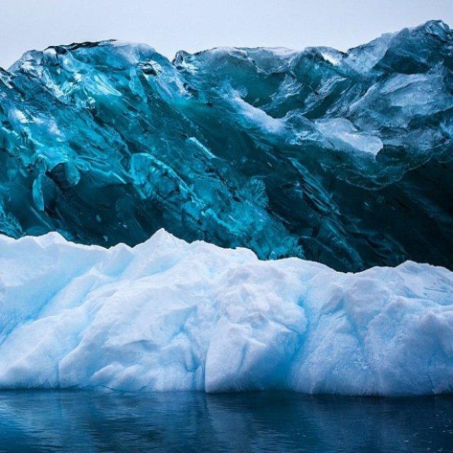 Во время экспедиции в Антарктике художник увидел кусок льда, который дрейфовал Атлантическим океаном. Фотограф сделал снимки, не подозревая, что зафиксировал уникальное природное явление. Как правило, айсберги белого цвета. Однако в природе существует такое явление, когда они становятся синие.
