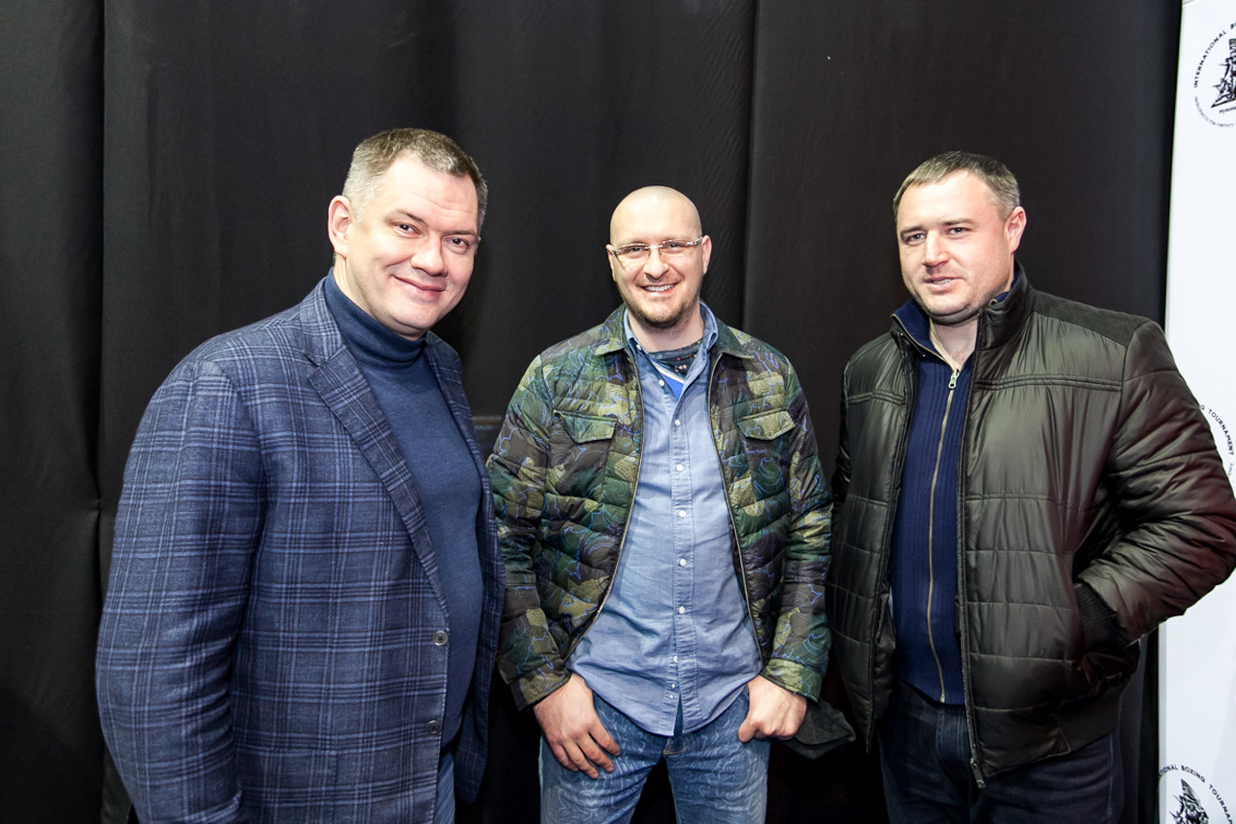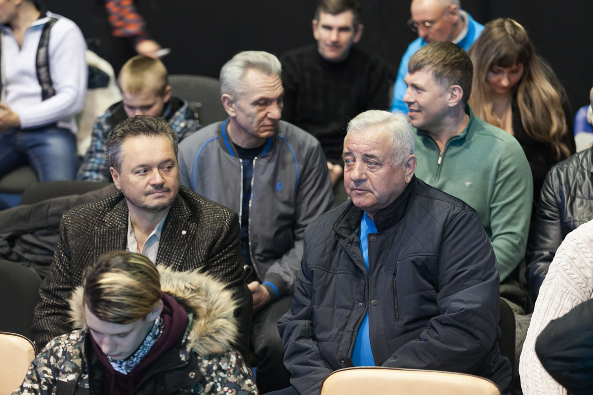Игорю Жданову и Вадиму Мерикову подарили боксерские перчатки с автографами команд.