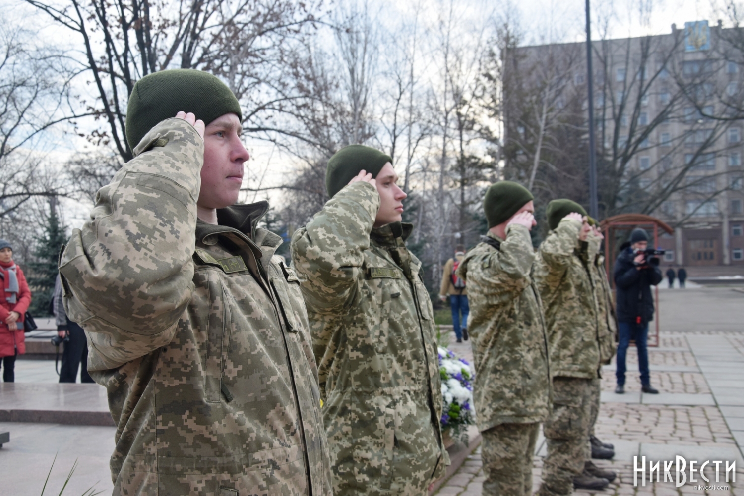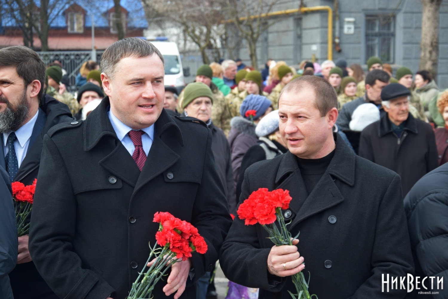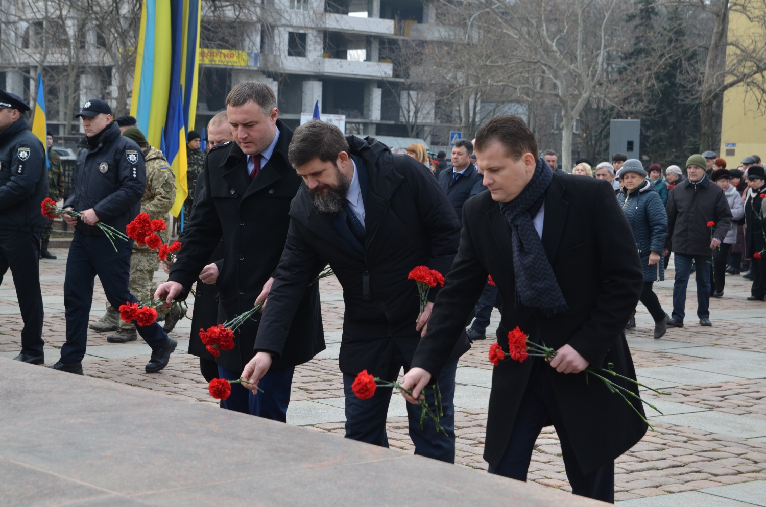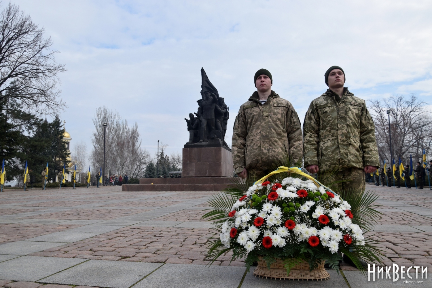 На церемонии возложения присутствовали первый заместитель председателя Николаевской облгосадминистрации Вячеслав Бонь, руководитель аппарата облгосадминистрации Юрий Гранатуров, советник главы области Евгений Шевченко, заместители главы Николаевского облсовета Иван Кухта и Андрей Кротов, первый заместитель Николаевского городского головы Владимир Крыленко, вице-мэры Юрий Степанец и Александр Омельчук, а также депутаты областного и городского совета и жители города.
