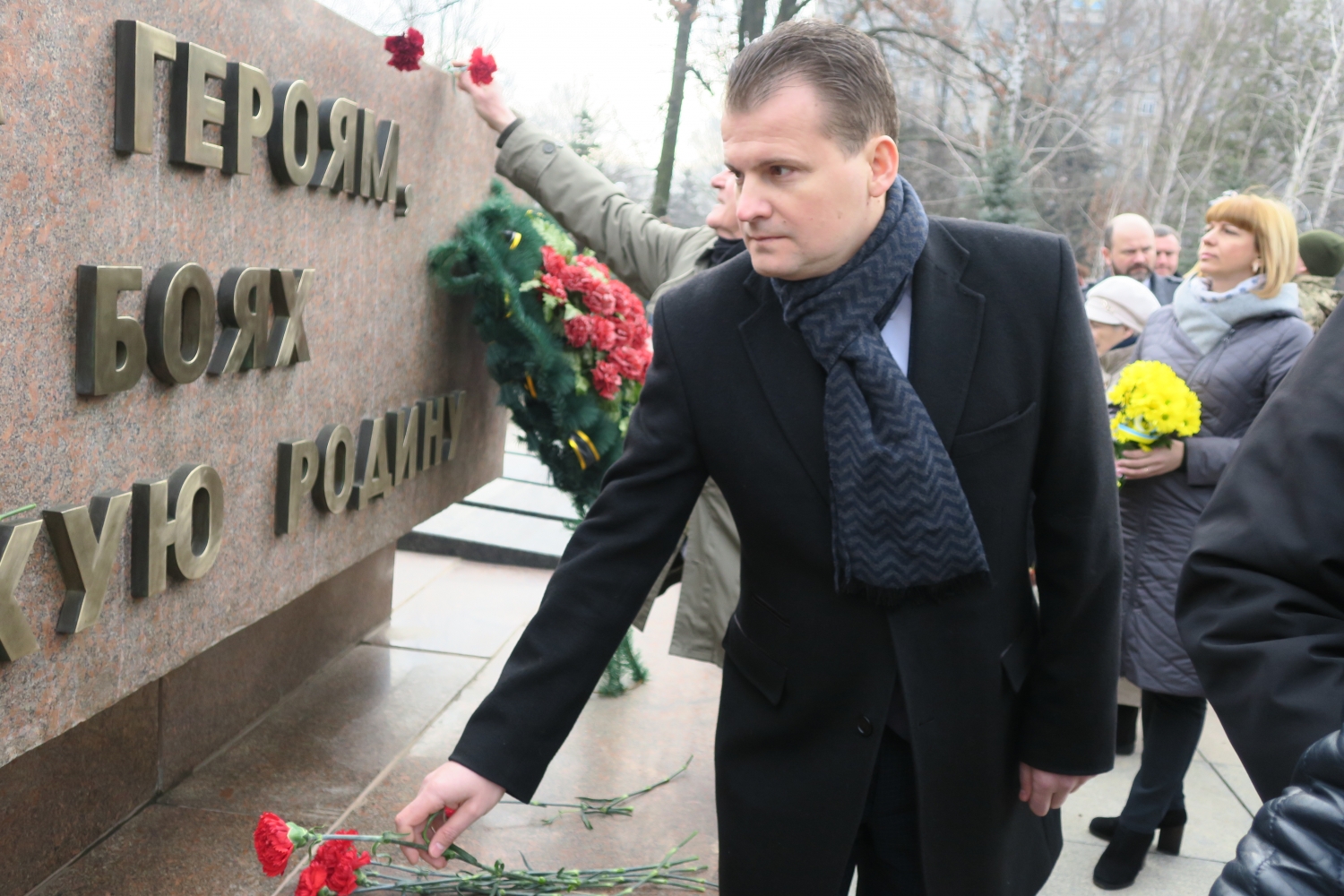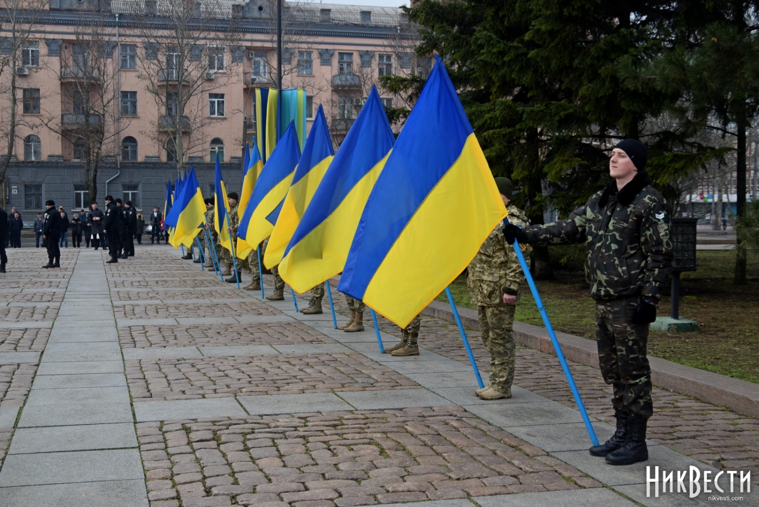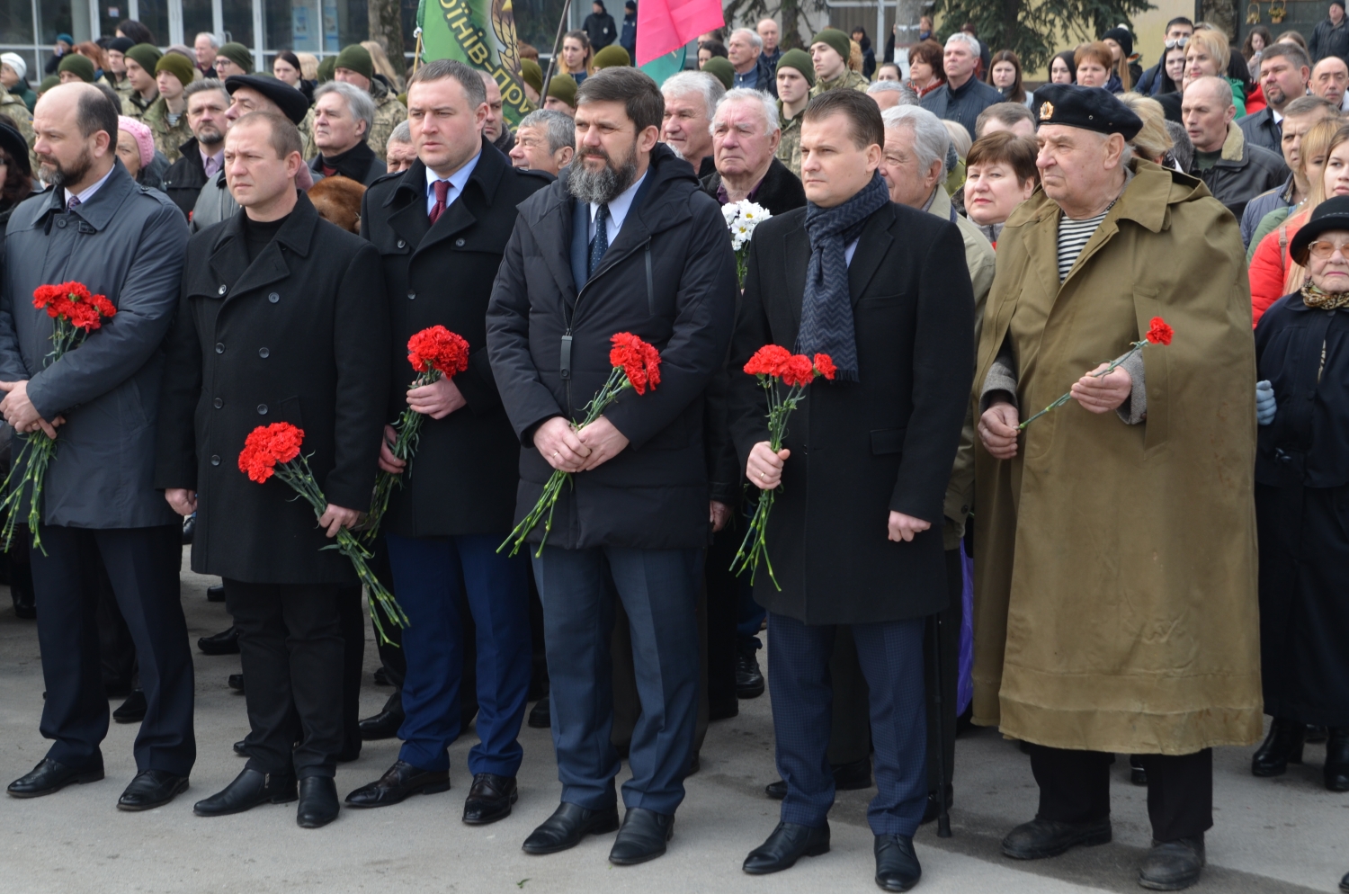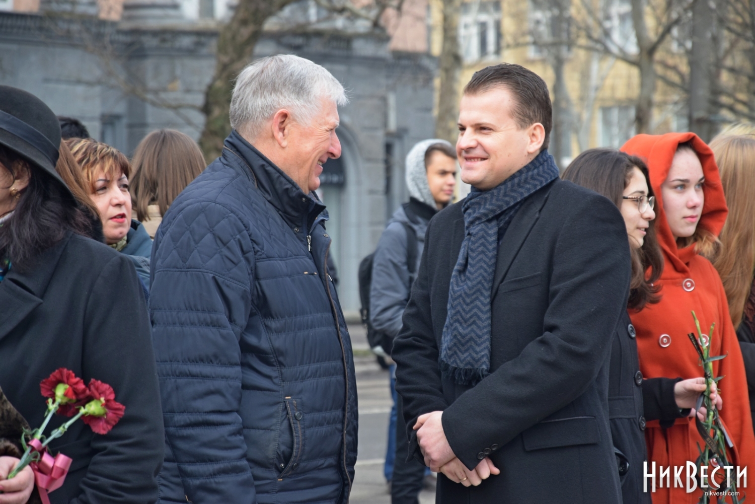 На церемонии возложения присутствовали первый заместитель председателя Николаевской облгосадминистрации Вячеслав Бонь, руководитель аппарата облгосадминистрации Юрий Гранатуров, советник главы области Евгений Шевченко, заместители главы Николаевского облсовета Иван Кухта и Андрей Кротов, первый заместитель Николаевского городского головы Владимир Крыленко, вице-мэры Юрий Степанец и Александр Омельчук, а также депутаты областного и городского совета и жители города.