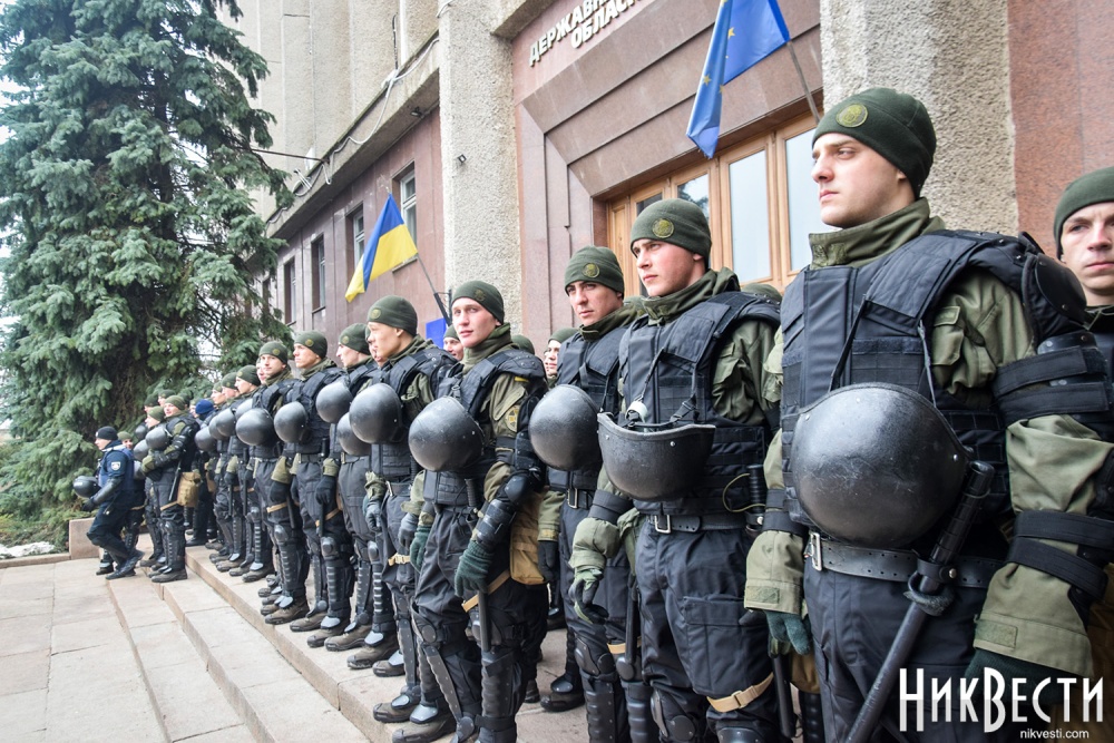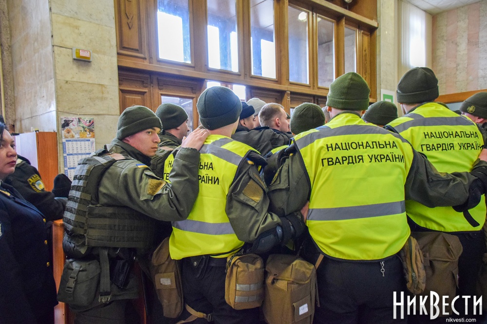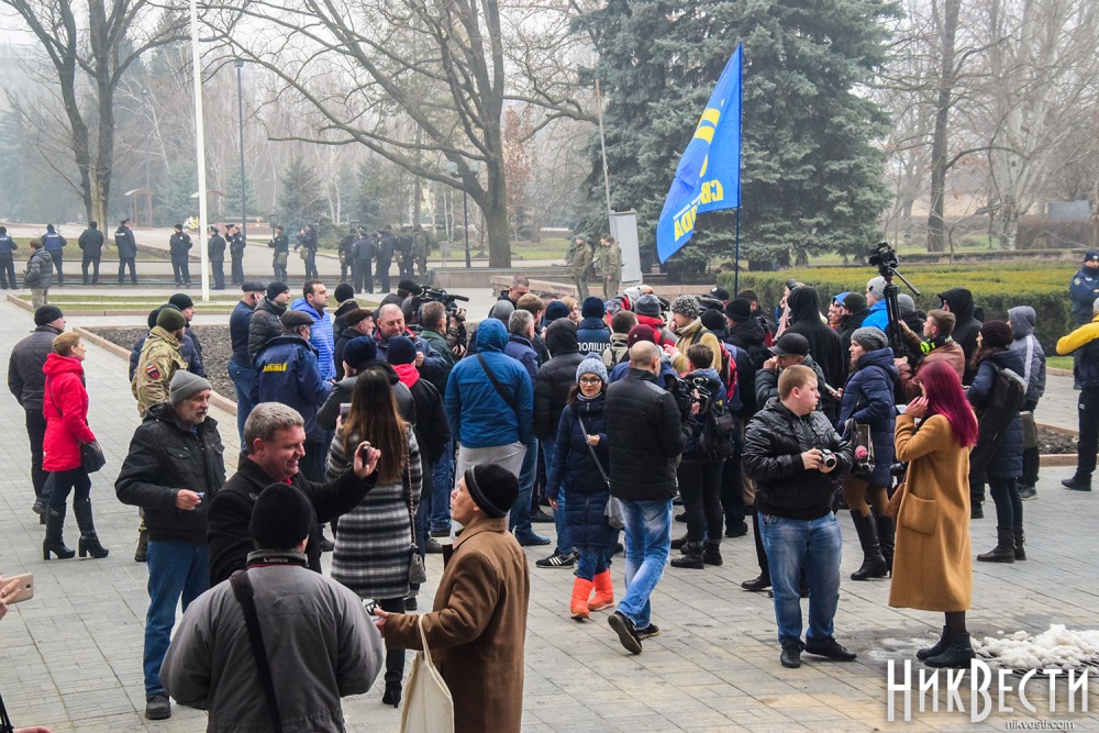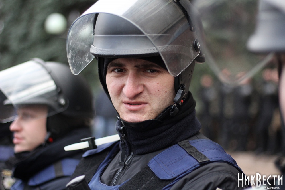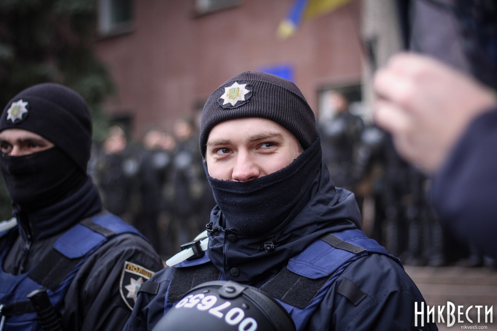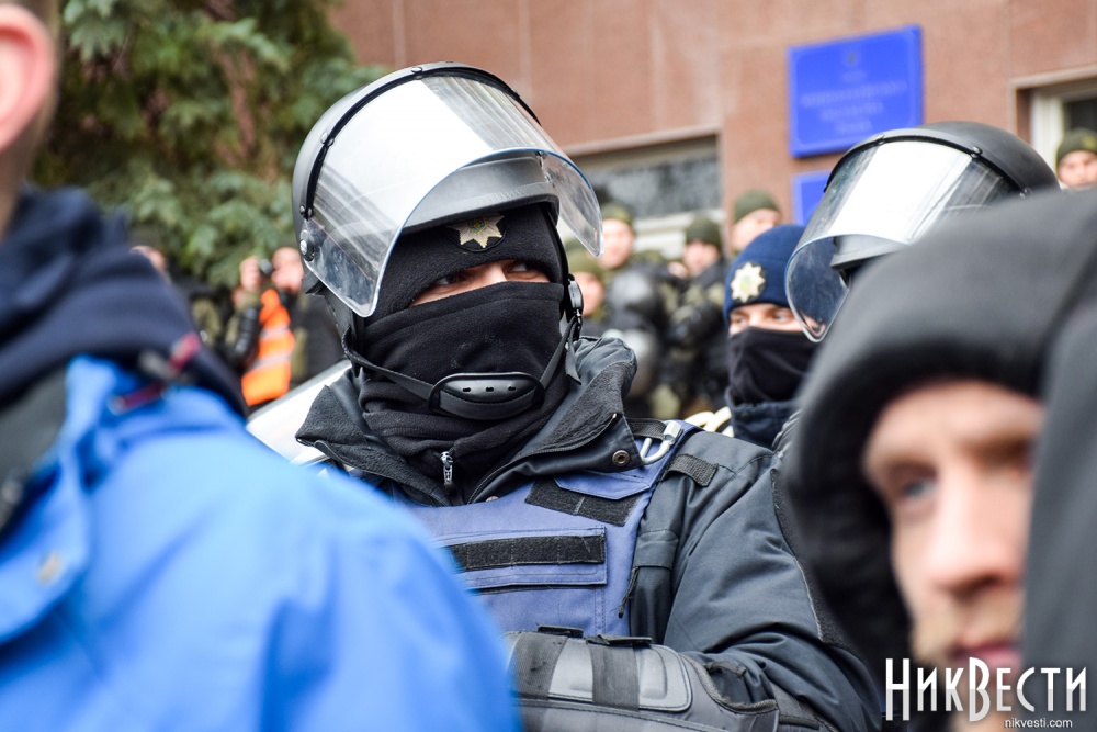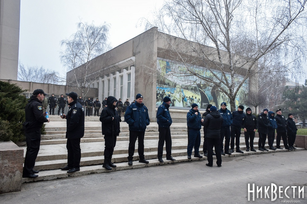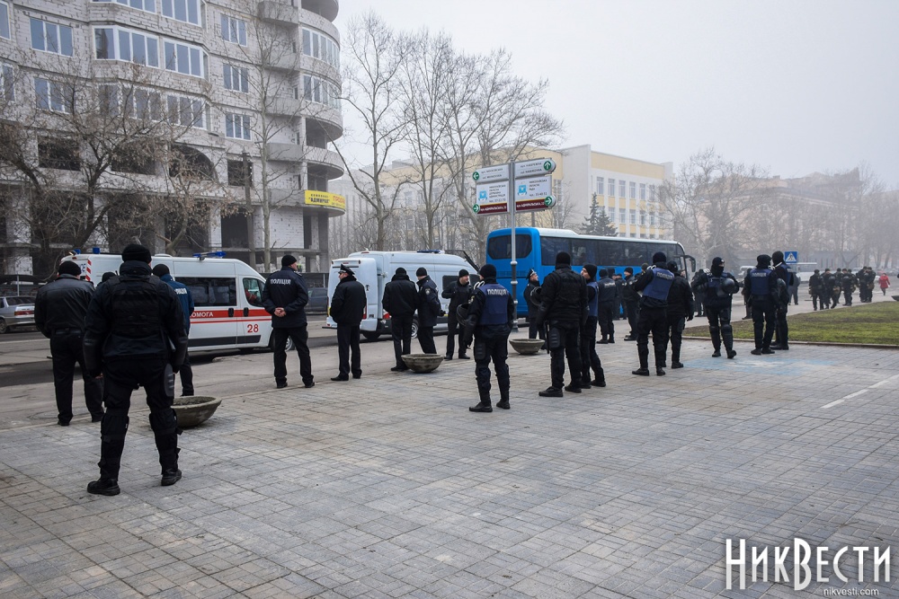 Как сообщили в полиции, сегодня охрану правопорядка у Николаевского облсовета обеспечивали 450 правоохранителей. С просьбой обеспечить усиленную охрану в Нацполицию обратился сам областной совет. На площадь у здания облсовета, оцепленного по периметру, активистом пропускали только после личного досмотра.