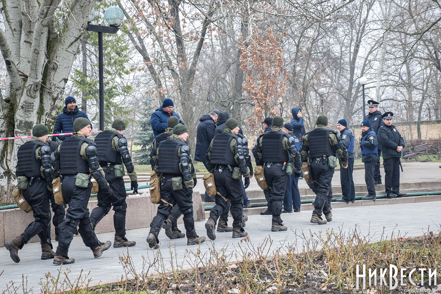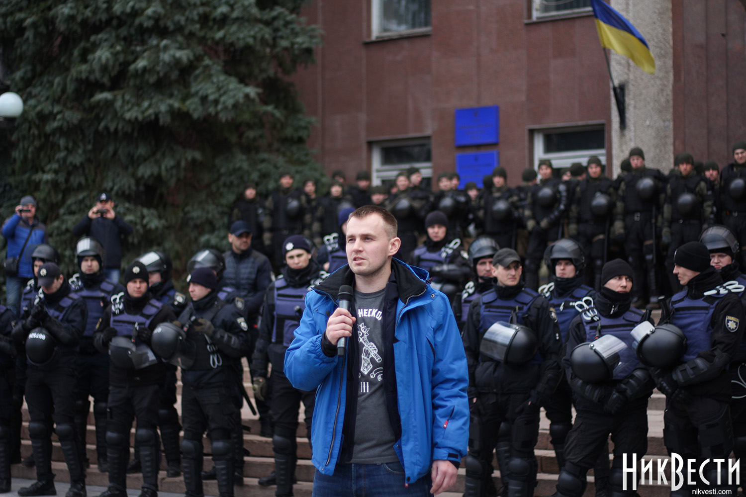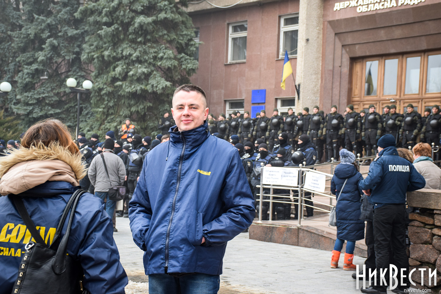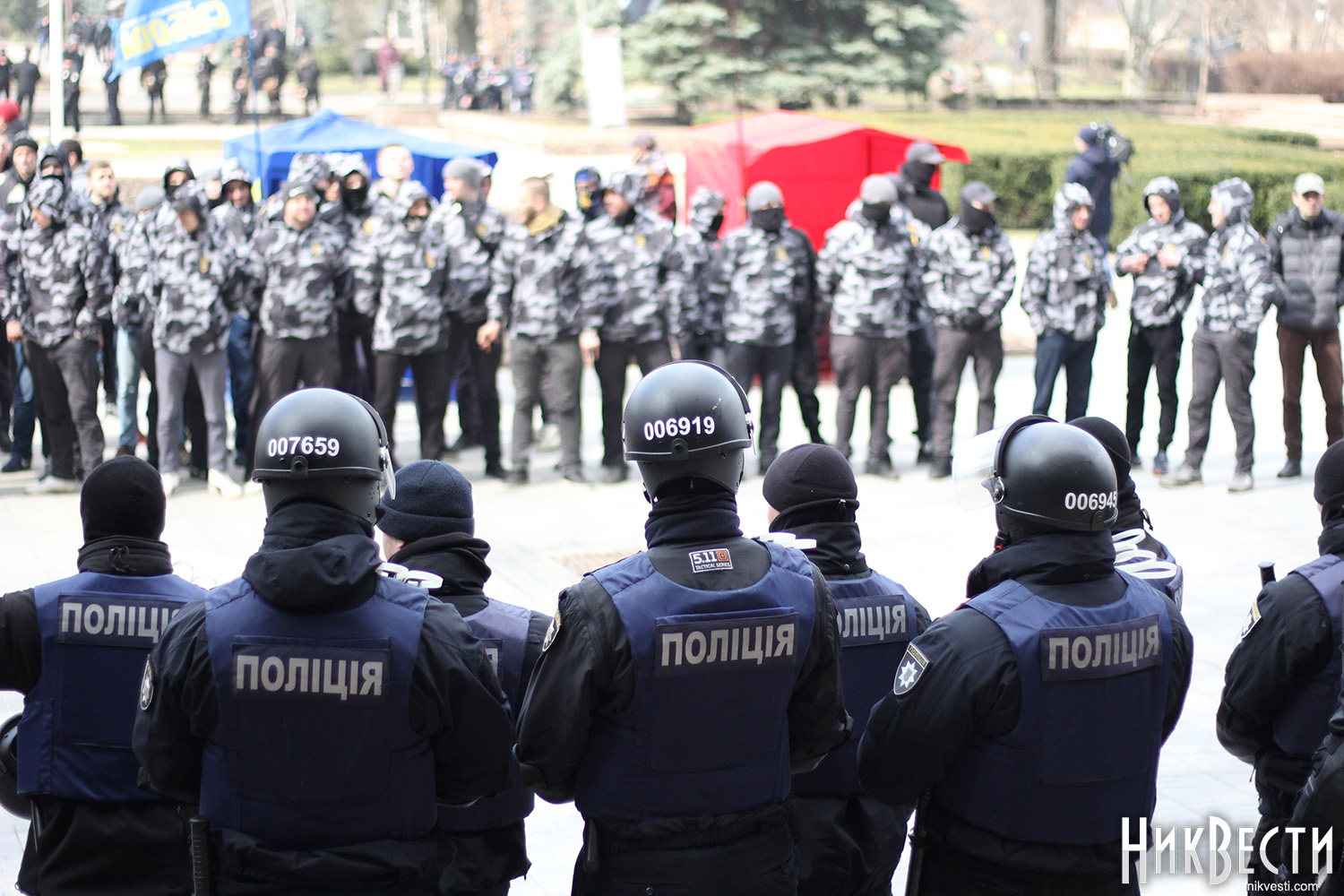 Как сообщили в полиции, сегодня охрану правопорядка у Николаевского облсовета обеспечивали 450 правоохранителей. С просьбой обеспечить усиленную охрану в Нацполицию обратился сам областной совет. На площадь у здания облсовета, оцепленного по периметру, активистом пропускали только после личного досмотра.