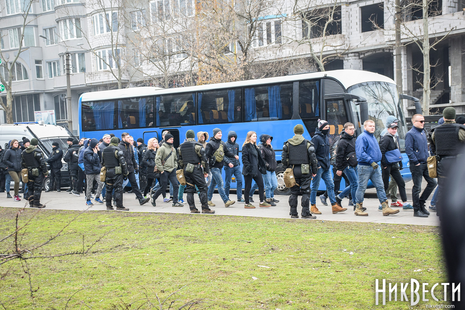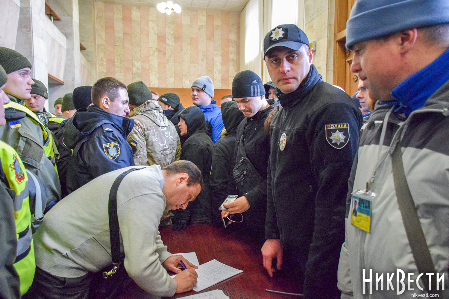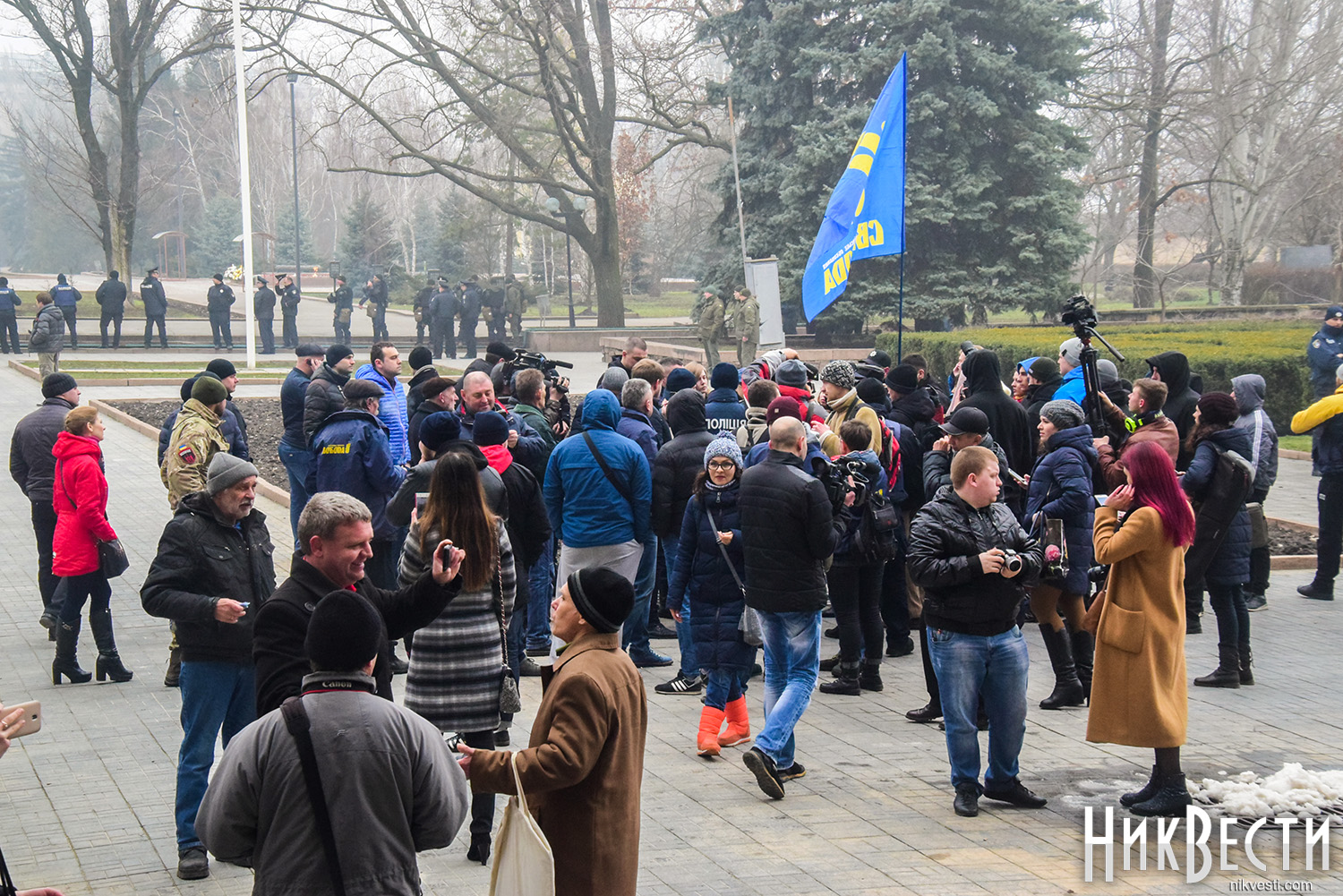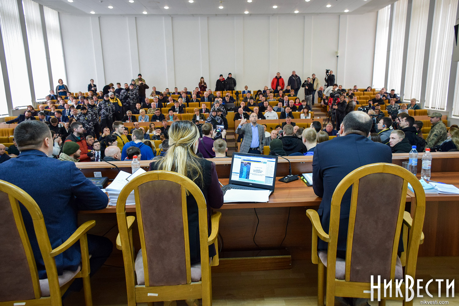 Как сообщили в полиции, сегодня охрану правопорядка у Николаевского облсовета обеспечивали 450 правоохранителей. С просьбой обеспечить усиленную охрану в Нацполицию обратился сам областной совет. На площадь у здания облсовета, оцепленного по периметру, активистом пропускали только после личного досмотра.