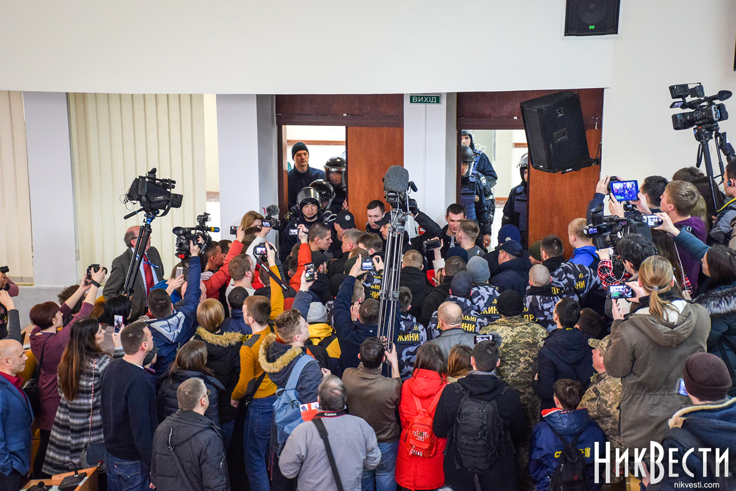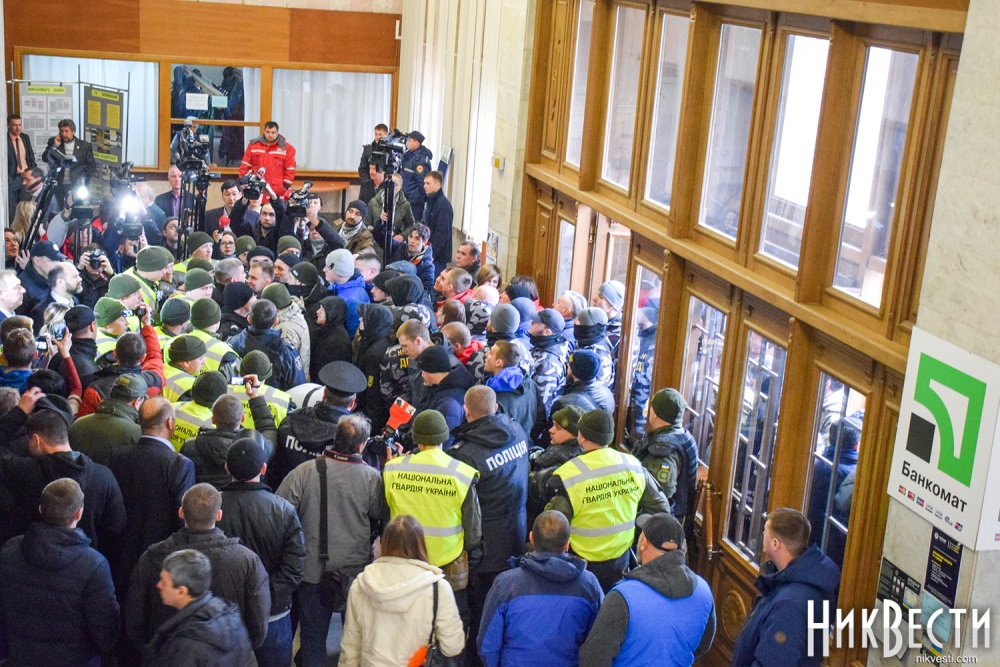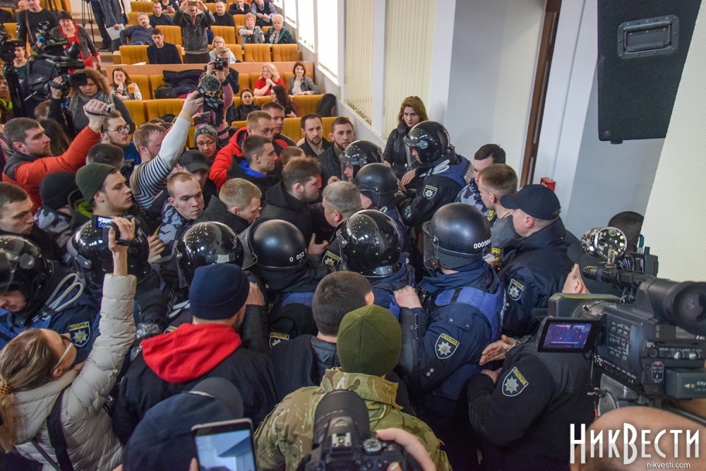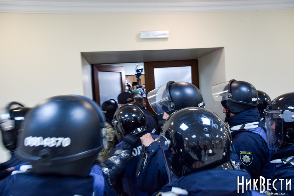 Неизвестно, чего хотела добиться глава областного совета таким обращением к общественности, но в итоге активисты, которых на тот момент у входа в здание скопилось около 50 человек, силой прорвали кордон полиции и спустя несколько минут таки попали в сессионный зал Николаевского облсовета.
