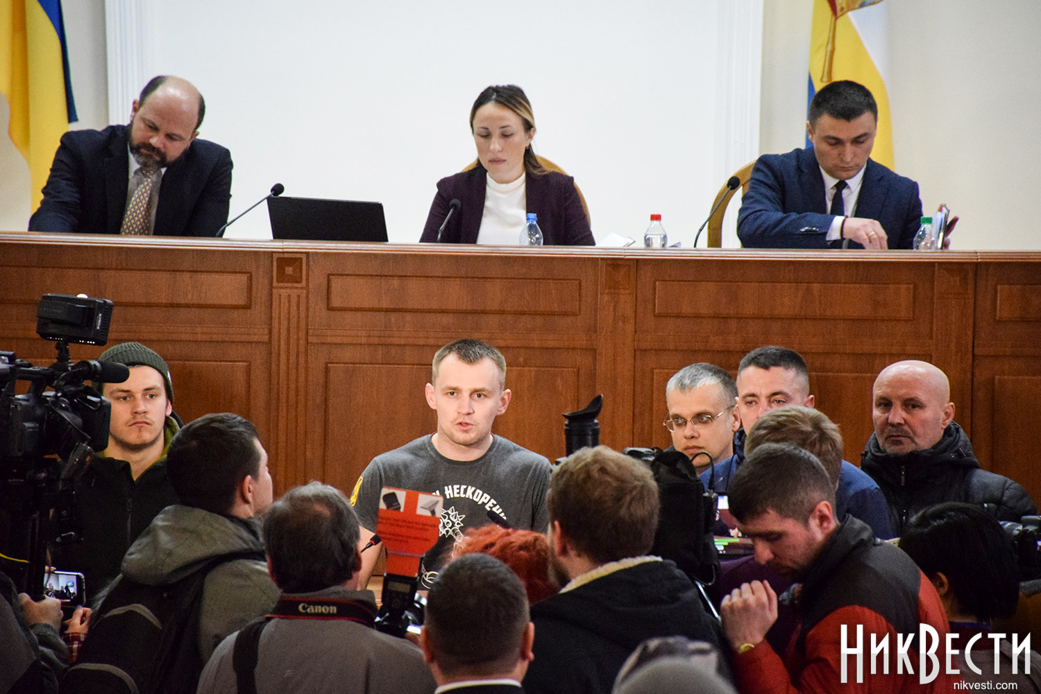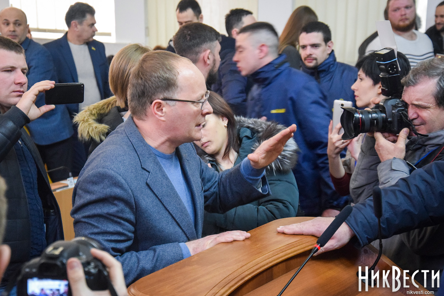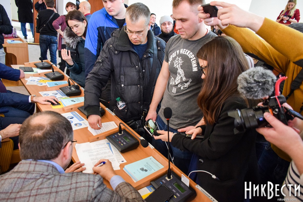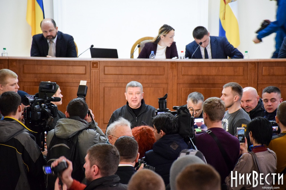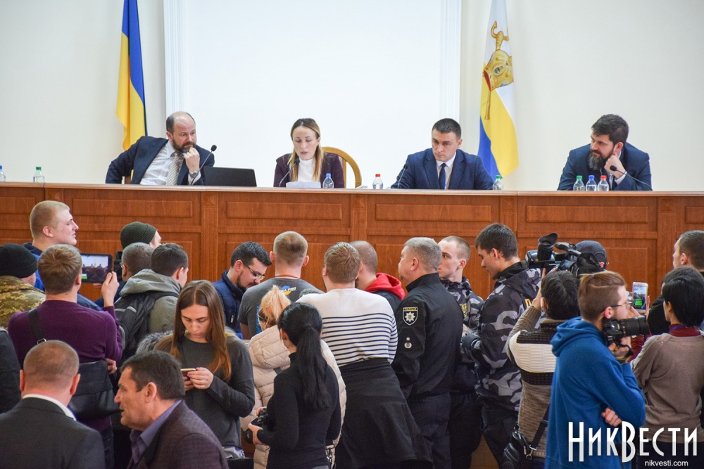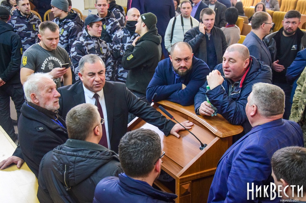 После продолжительного спора между активистами, депутатами и главой областного совета, в ходе которого депутаты высказались относительно того, готовы ли они проголосовать за недоверие губернатору, глава Николаевского облсовета объявила перерыв и собрала в своем кабинете совещание с главами фракций. В это же время активисты начали сбор подписей депутатов за вынесение на рассмотрение сессии этого вопроса.
