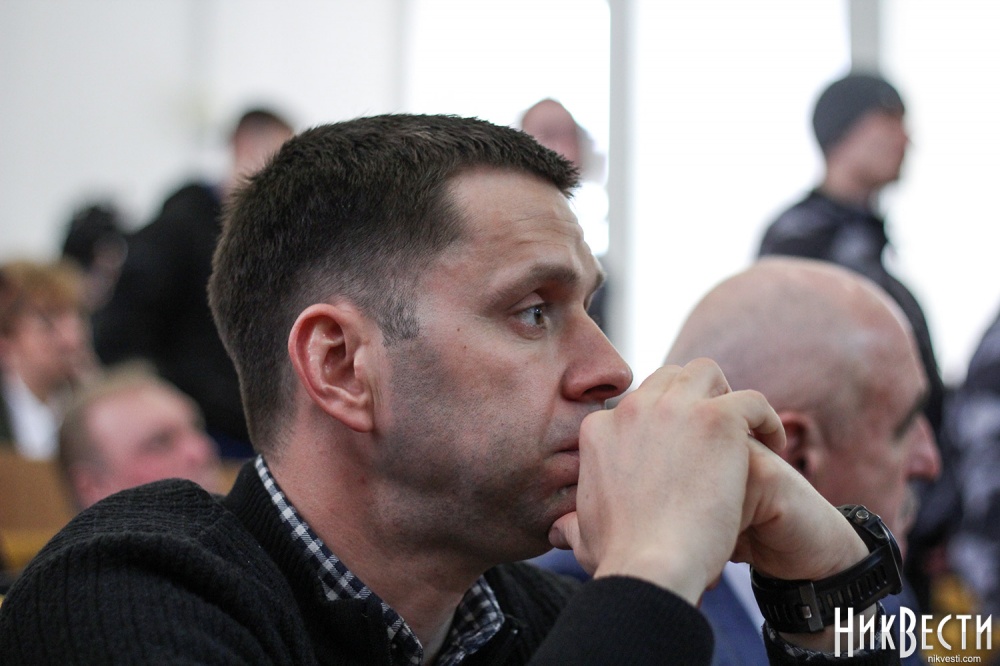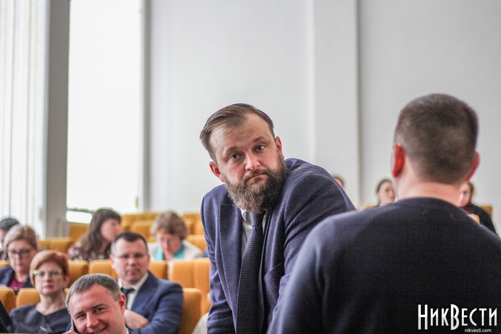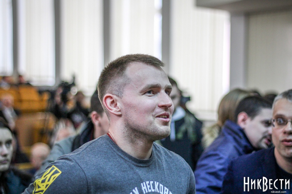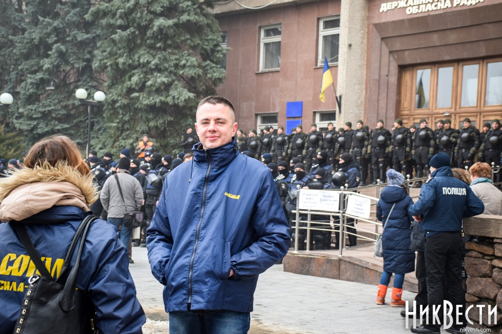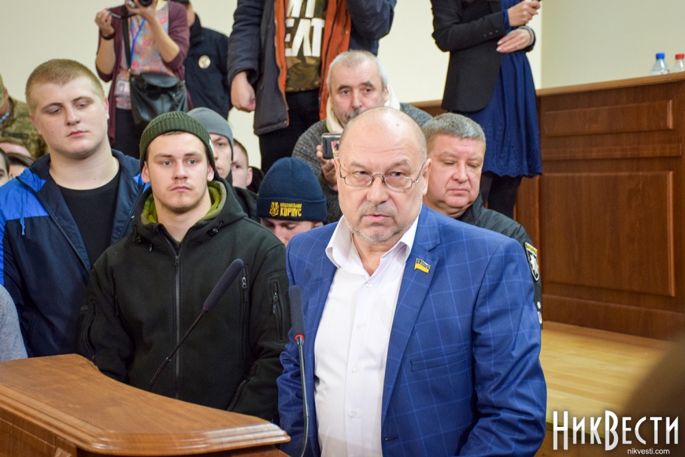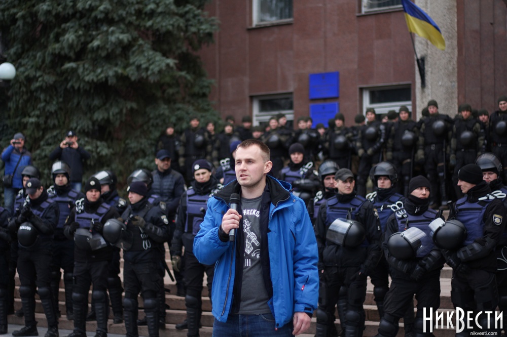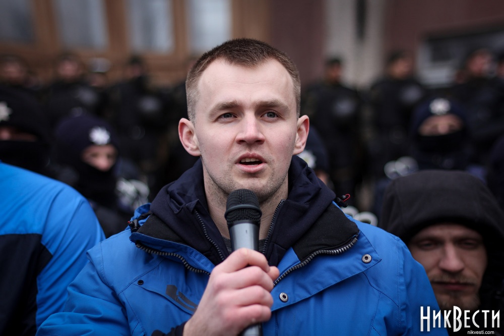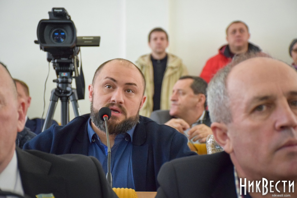 Заняв место у трибуны облсовета, глава "Нацкорпуса" в Николаевской области обратился к депутатам, и заявил о требовании вынести на рассмотрение сессии вопрос о недоверии главе Николаевской ОГА Алексея Савченко и его заместителям.