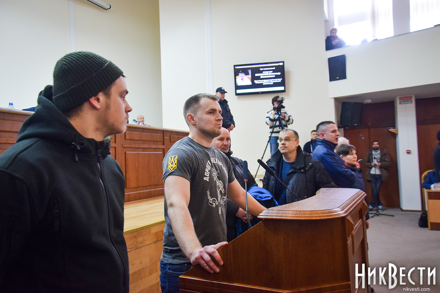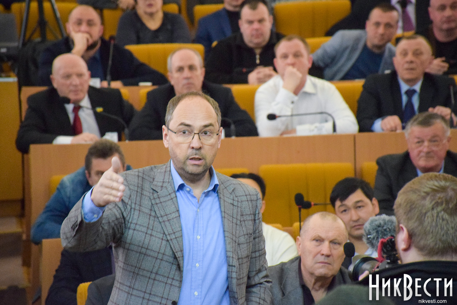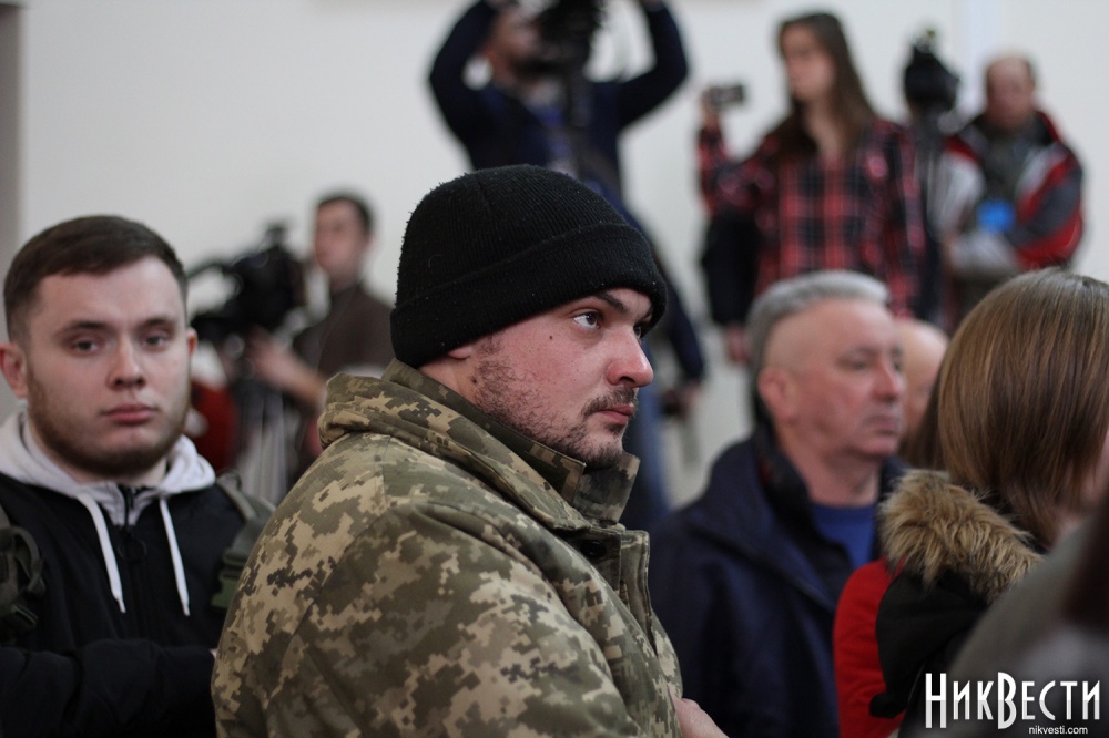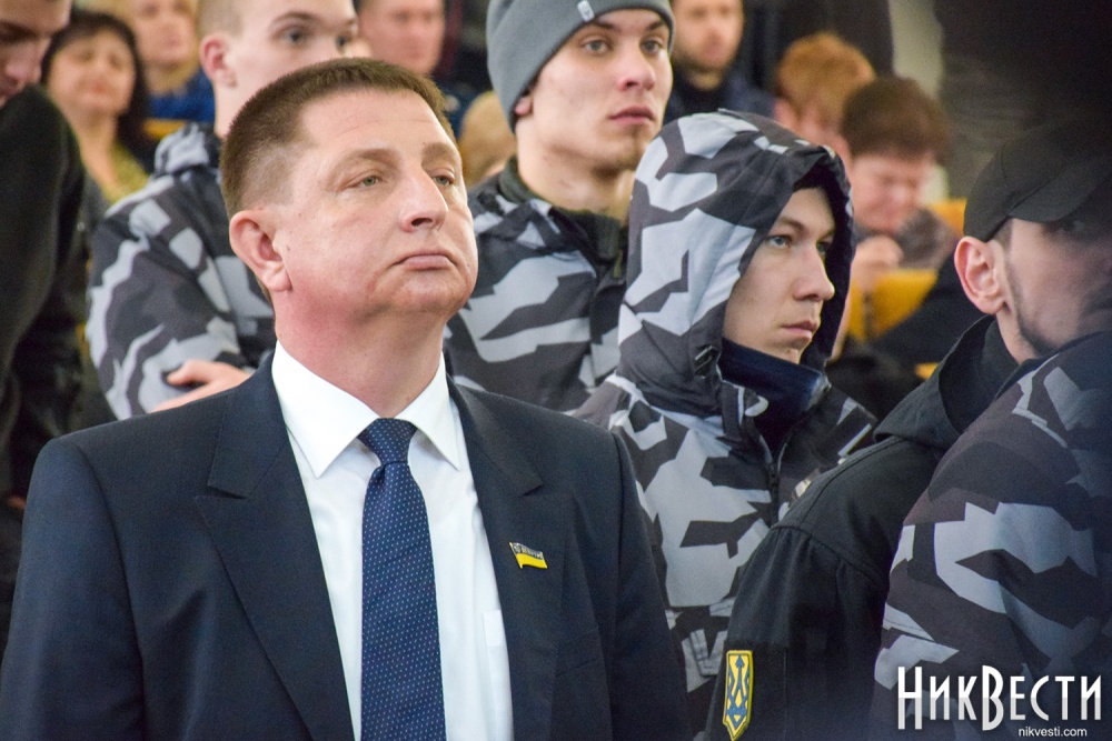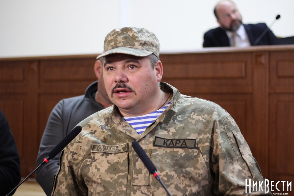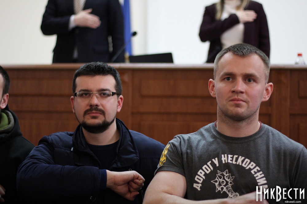 Заняв место у трибуны облсовета, глава "Нацкорпуса" в Николаевской области обратился к депутатам, и заявил о требовании вынести на рассмотрение сессии вопрос о недоверии главе Николаевской ОГА Алексея Савченко и его заместителям.