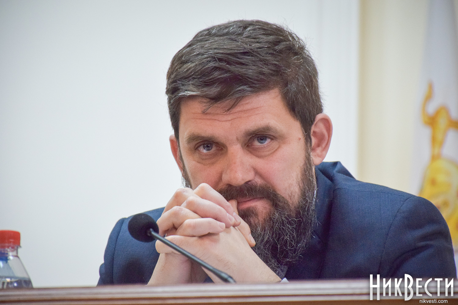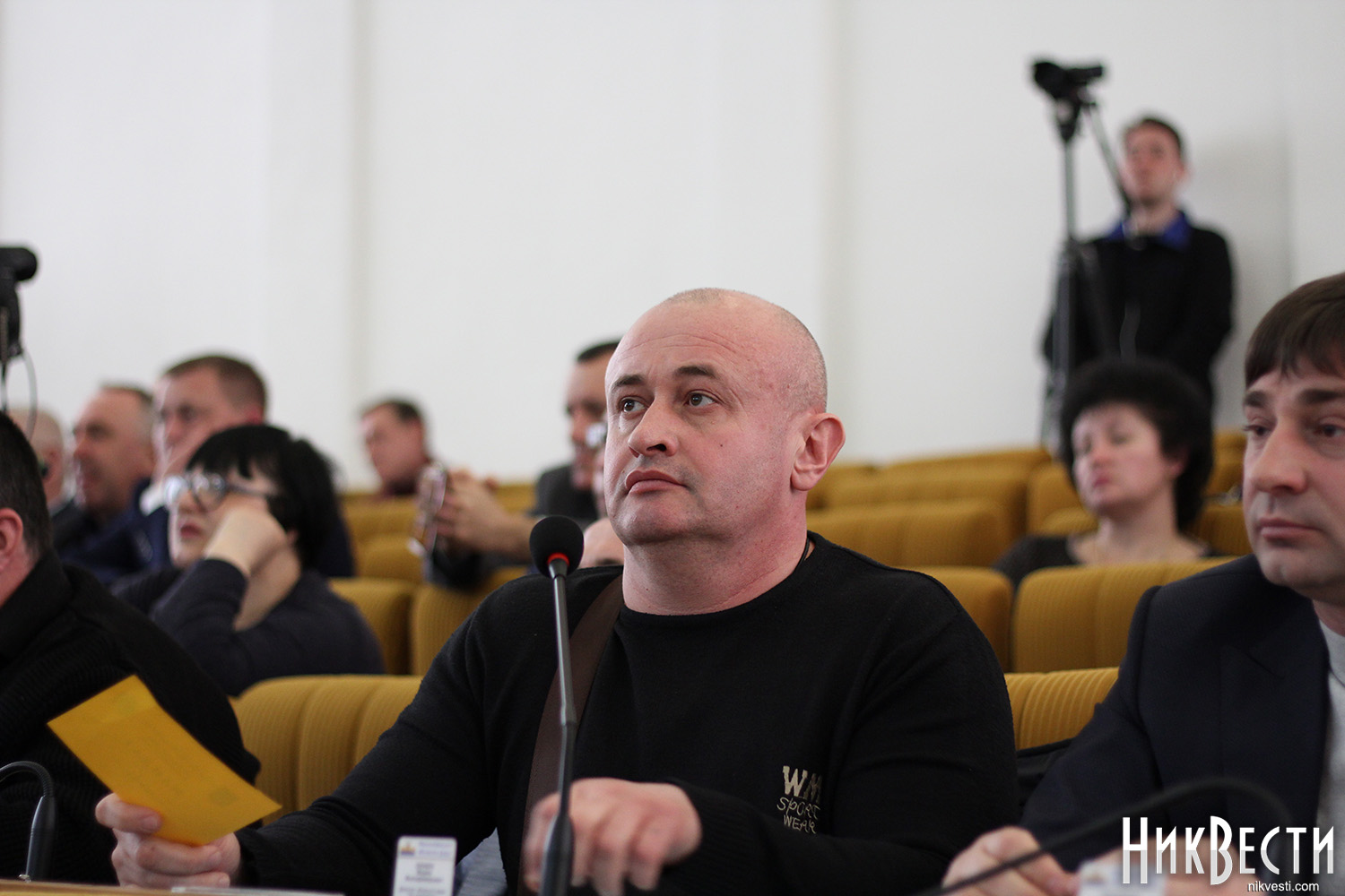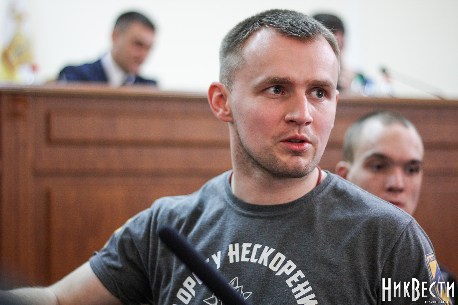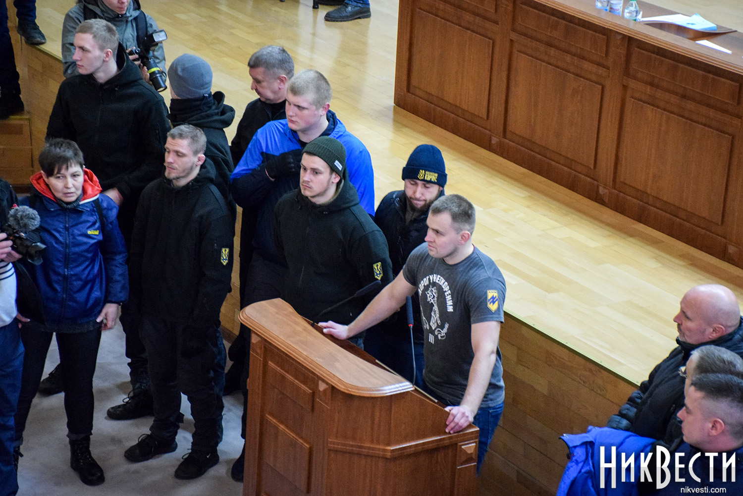 Заняв место у трибуны облсовета, глава "Нацкорпуса" в Николаевской области обратился к депутатам, и заявил о требовании вынести на рассмотрение сессии вопрос о недоверии главе Николаевской ОГА Алексея Савченко и его заместителям.