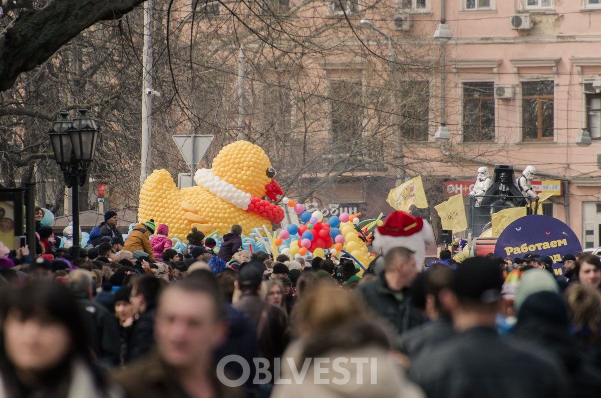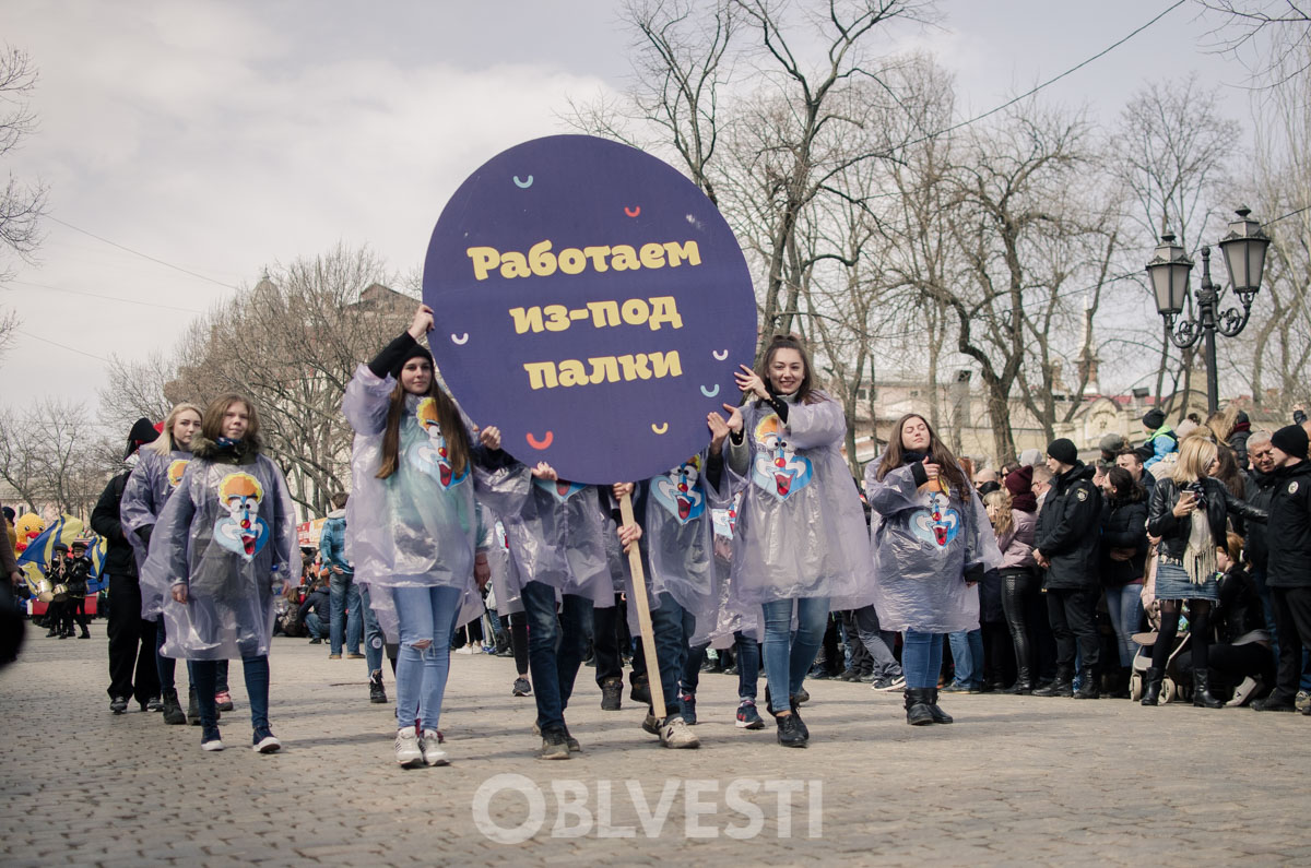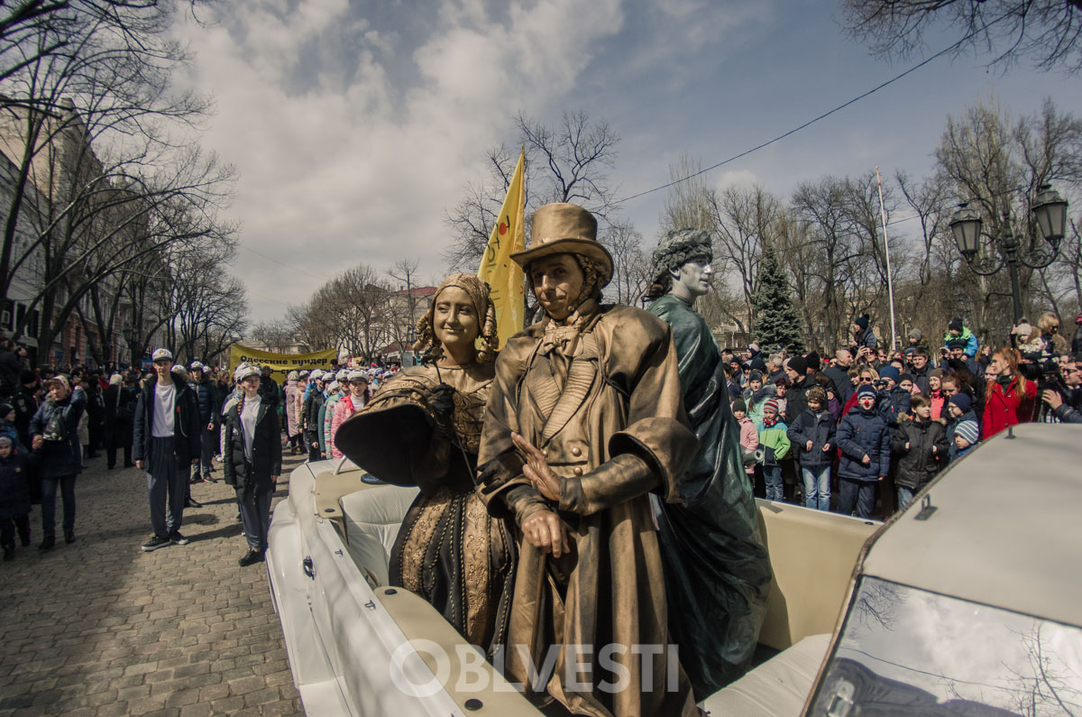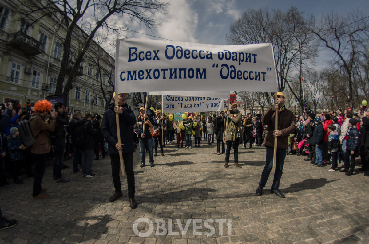 Главное событие Юморины – карнавальное шествие - началось с небольшим опозданием. Колонна стартовала от Соборной площади, затем отправилась на Дерибасовскую, закончилось движение возле памятника Дюку де Ришелье.