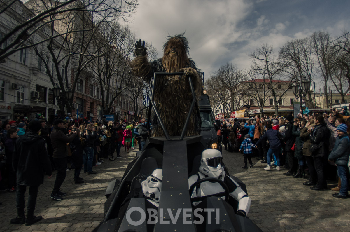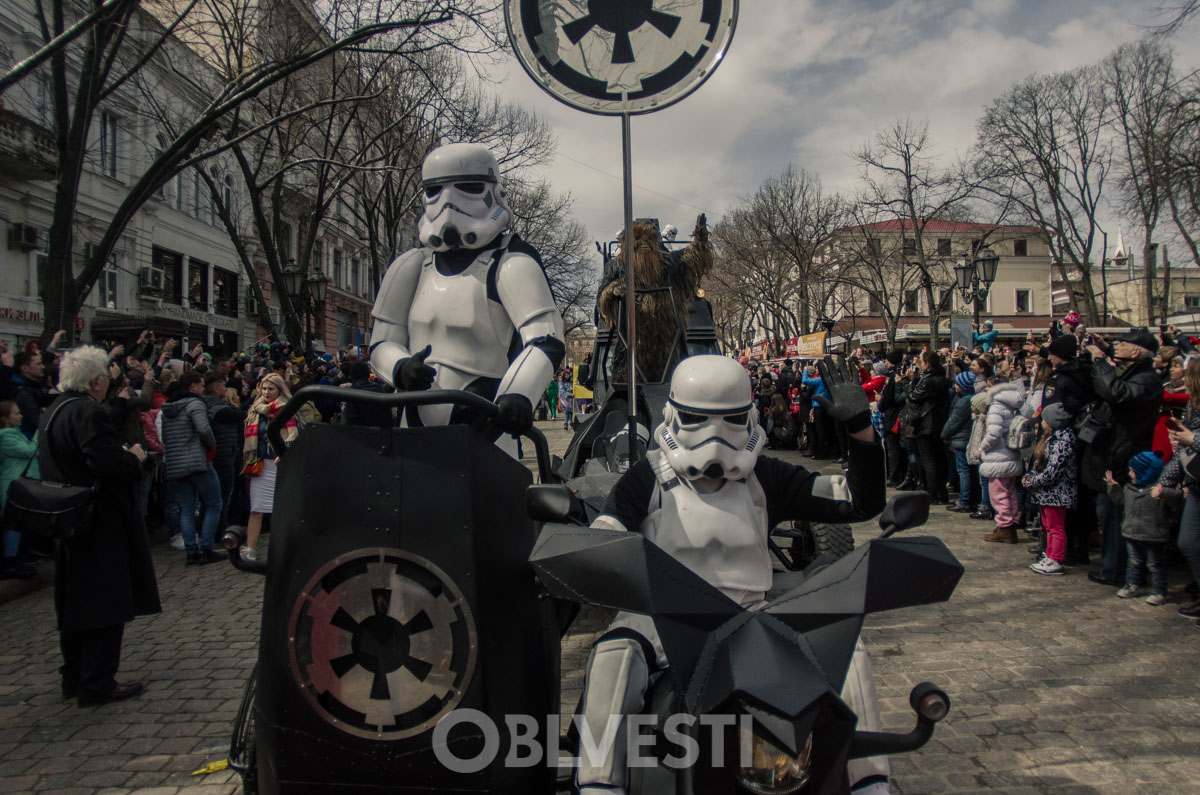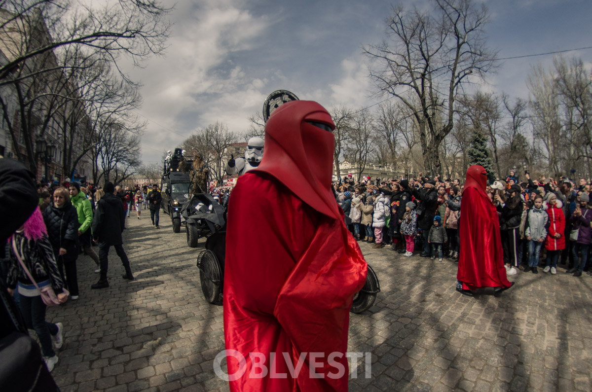 В самом параде приняло участие около 2500 человек. По улицам Одессы прошагали комики, артисты на ходулях, ряженые, профессиональные косплееры, проехались байкеры, несколько декорированных автомобилей в том числе с Пушкиным и штурмовиками Империи на борту. Всего в карнавале было 40 тематических коробок.