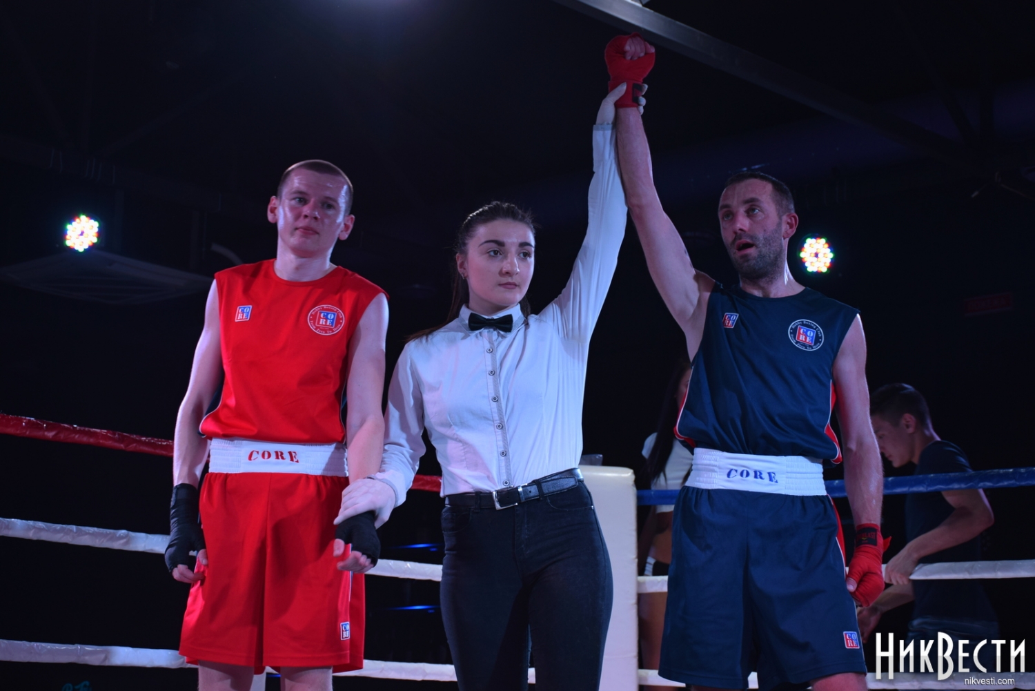 И сильнейшими оказались бойцы хобби боксинг-клуба Core. 8:1 – в пользу николаевских любителей. Только в категории супер-средний вес до 80 килограммов Евгений Науменко уступил Антону Лукьянчуку. В остальных боях первенство было у николаевской команды. В супер-полулегком весе до 58 килограммов победу одержал Владислав Бакан, в супер-легком весе до 63 килограммов – Владимир Сухарников, в среднем весе до 75 килограммов – Назар Казьмирук, Евгений Федорчук, Иван Лихолат, в полутяжелом весе до 85 килограммов – Сергей Пелык, в тяжелом весе до 91 килограммов – Вячеслав Шейко и Дмитрий Алаев.