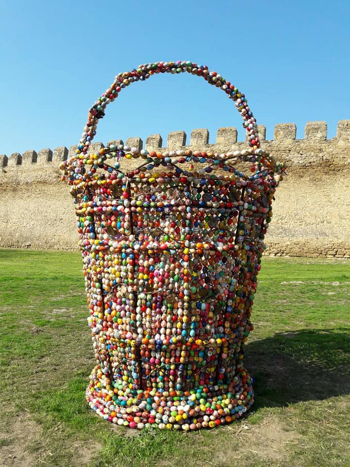 Корзина создана из более чем 6 тысяч писанок и крашанок, расписанных учениками школ Белгород-Днестровского района.