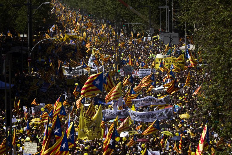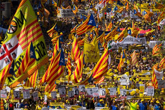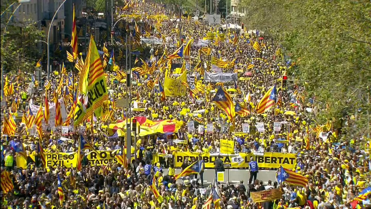 Сегодня в Барселоне (Испания) сотни тысяч сторонников независимости Каталонии вышли на улицы города, требуя освободить лишенных свободы каталонских лидеров.