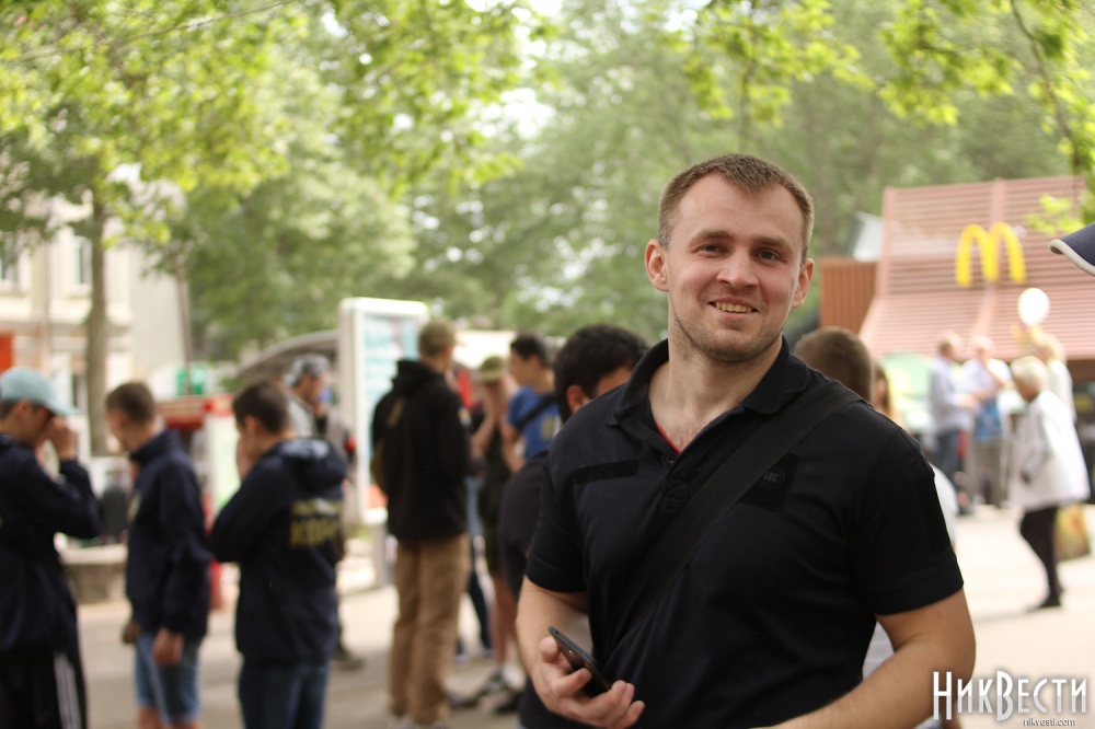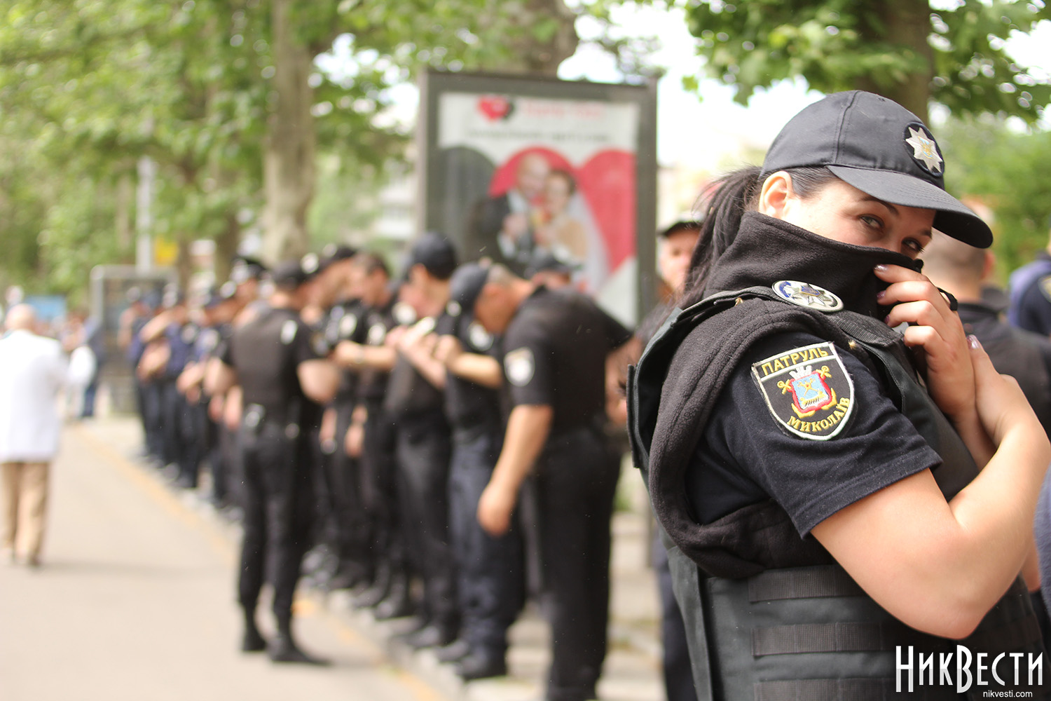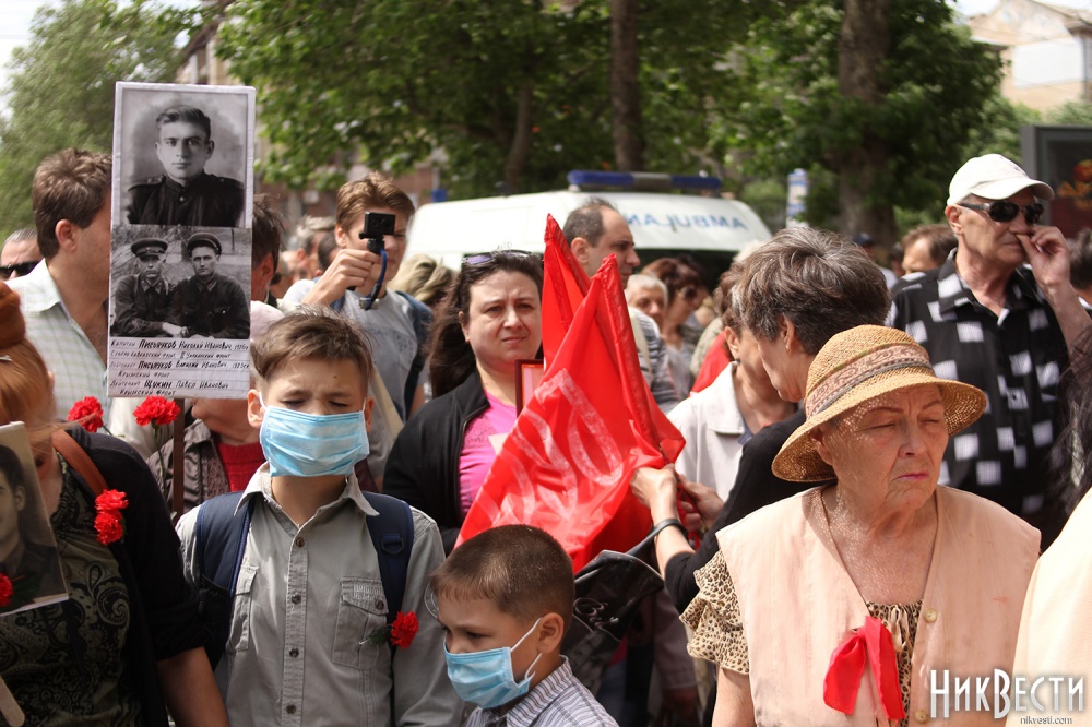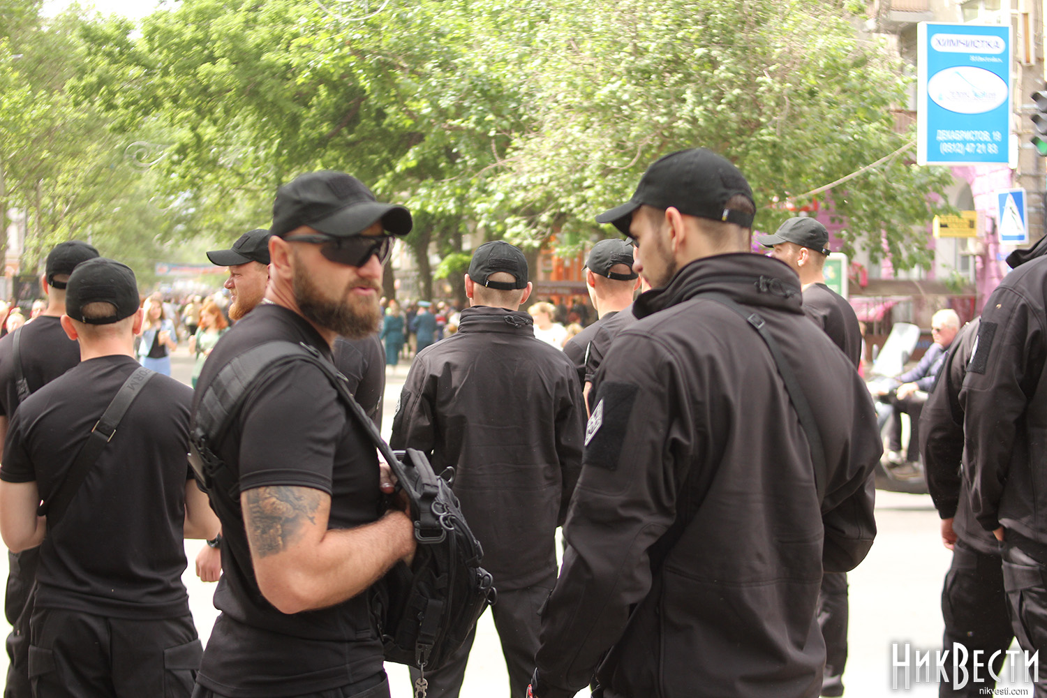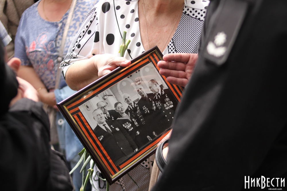 В 11:30 на пересечении улиц Соборной и проспекта Центрального в Николаеве начала формироваться колонна из участников акции «Бессмертный полк». Несколько граждан пронесли на акцию запрещенную символику в виде «георгиевских лент», которую сотрудники полиции пытались отобрать, из-за чего между участниками акции и правоохранителями вспыхнул конфликт.