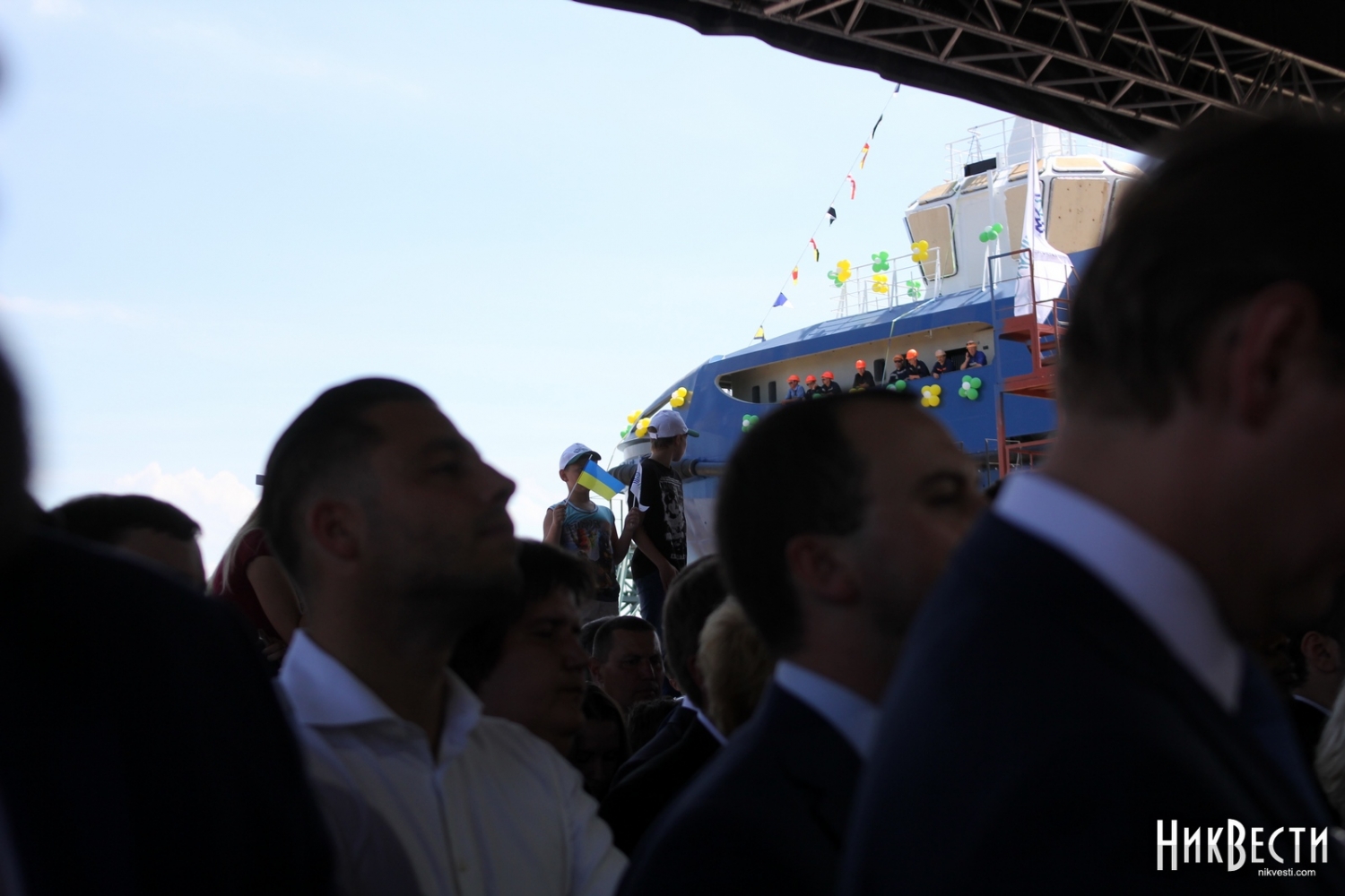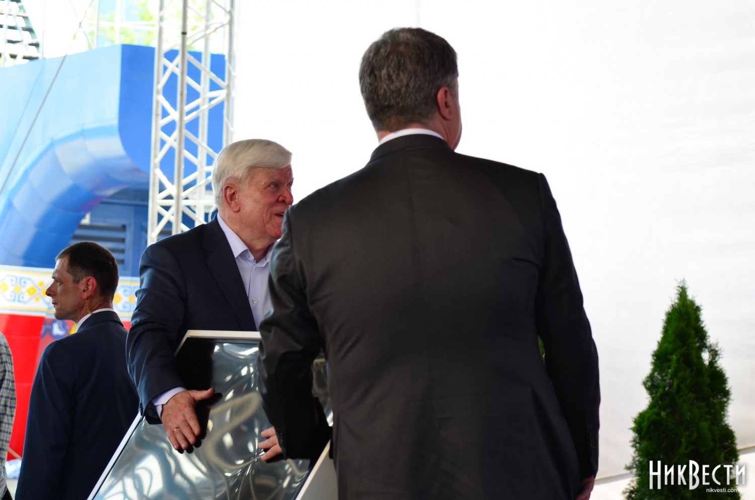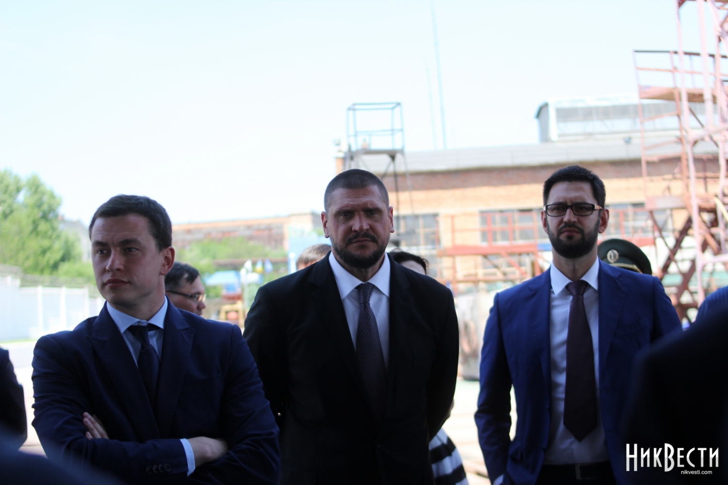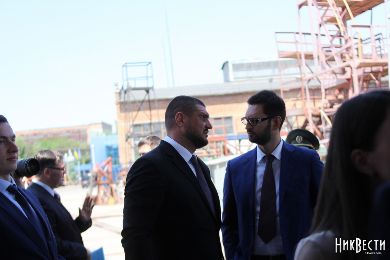 Также Петр Порошенко принял участие в торжественной закладке первого 140-метрового самоходного перегружателя проекта П-140. Кроме этого, Президент заложил линейный буксир проекта POSS-115, закладка которого тоже состоялась на заводе. Буксир предназначен для перевозки грузов по реке Днепр и караванами по 2 единицы несамоходных судов грузовместимостью 5 тысяч и 2 тысячи тонн. В общем, Президент и гости предприятия могли подняться на самоходное сверхмощное дноуглубительное судно «Николаевец», оценить масштаб 100-метрового несамоходного судна проекта В5000, способного снять с украинских дорог более 200 грузовиков за один рейс, а также прогуляться на высокоскоростных пассажирских судах «НИБУЛОН Экспресс».