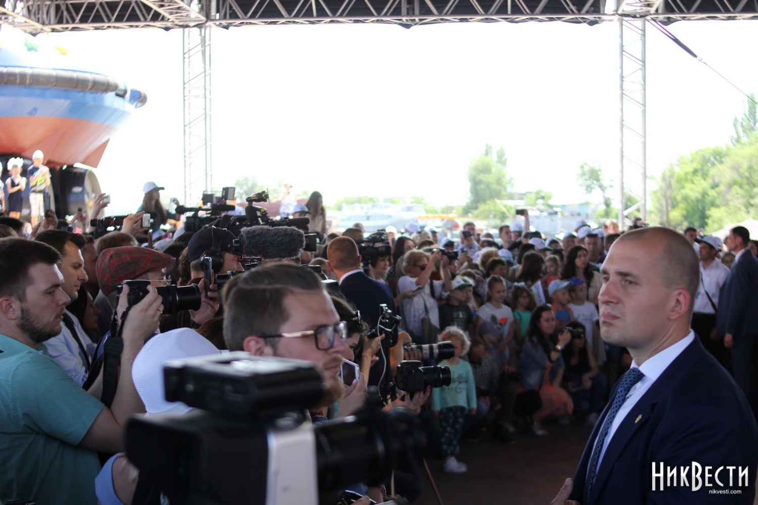Петр Порошенко выступил со сцены перед присутствующими, отметив, что для Украины очень важно развитие судостроения.