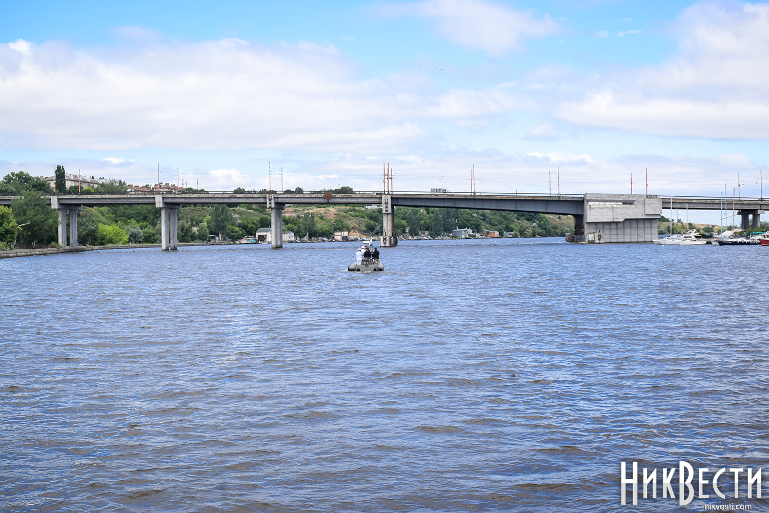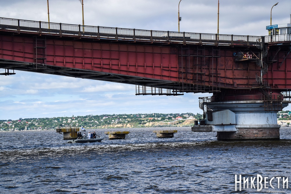 Сенкевич и Савченко с военного катера осмотрели состояние Варваровского моста в Николаеве