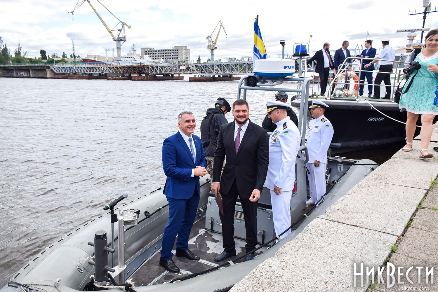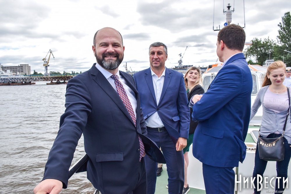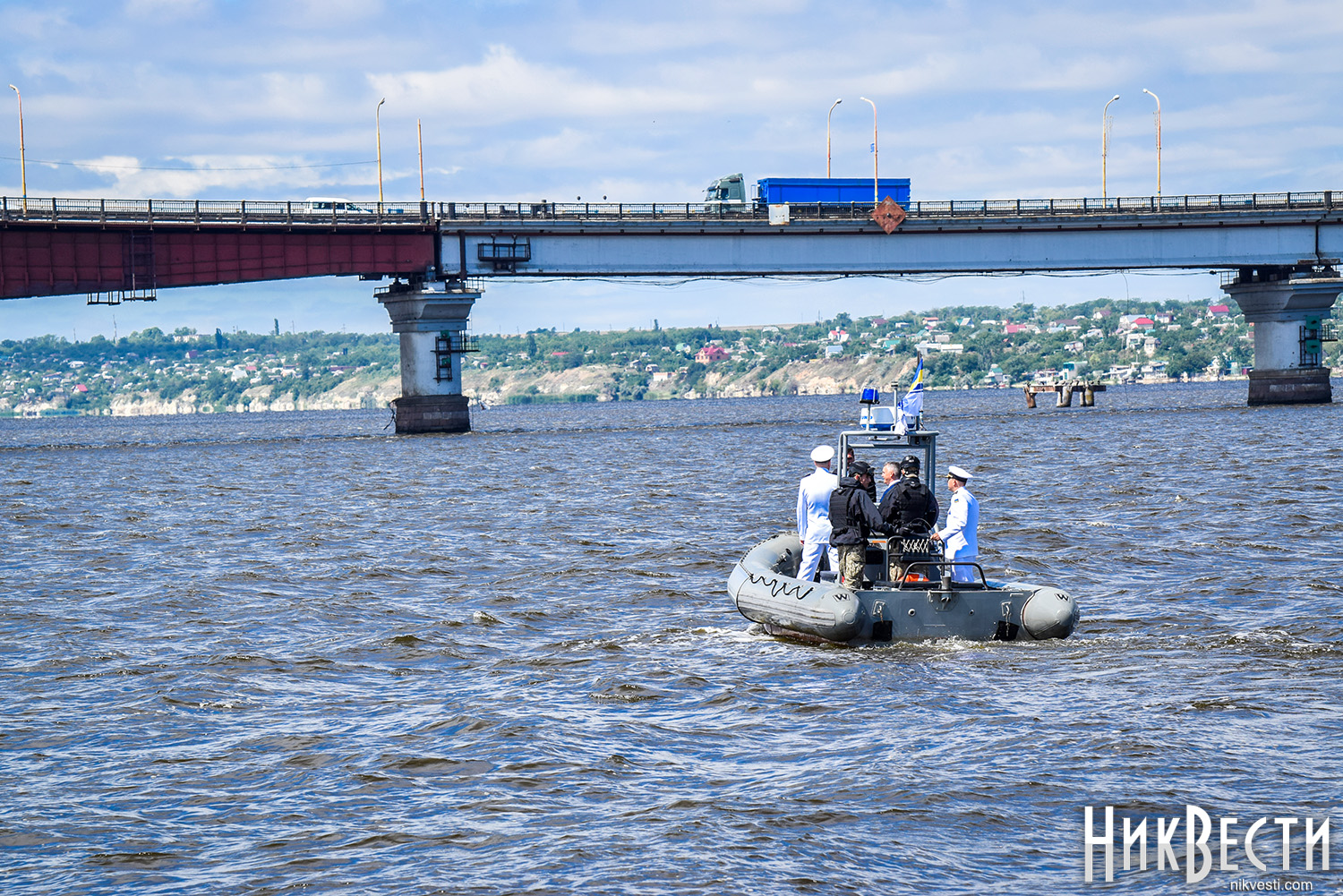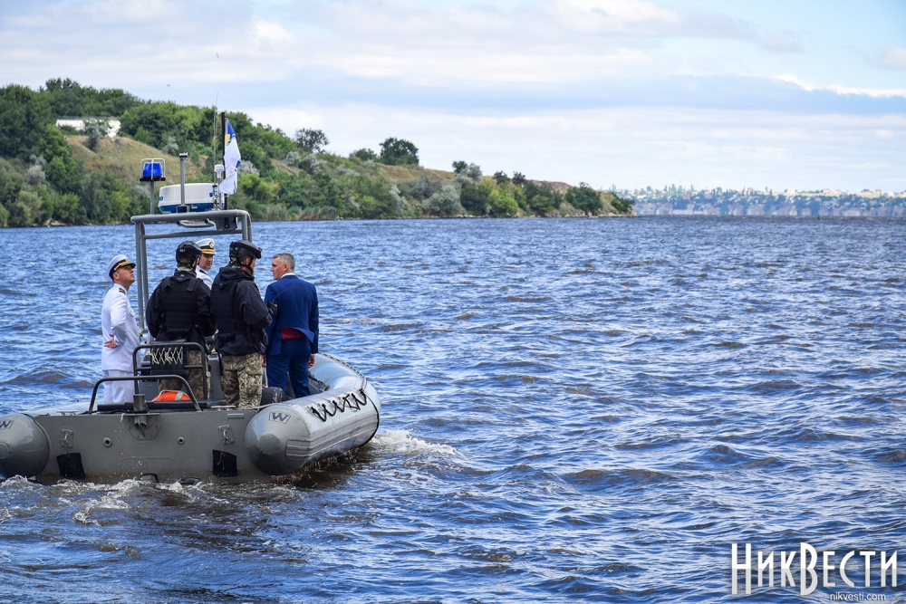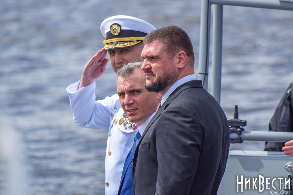 Сегодня, 1 июля, на военном катере по пути на набережную речного вокзала «*8 причал», где проходит празднование Дня военно-морских сил Украины, мэр и губернатор остановились у раздвижной части Варваровского моста, чтобы осмотреть его состояние, - сообщает корреспондент НикВести.
