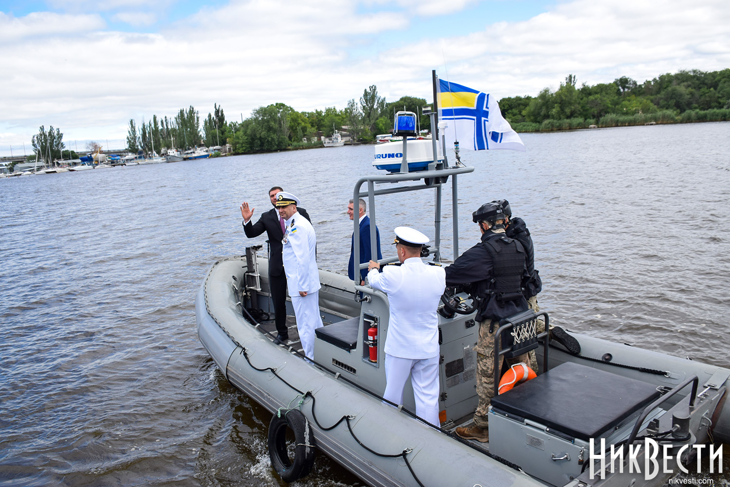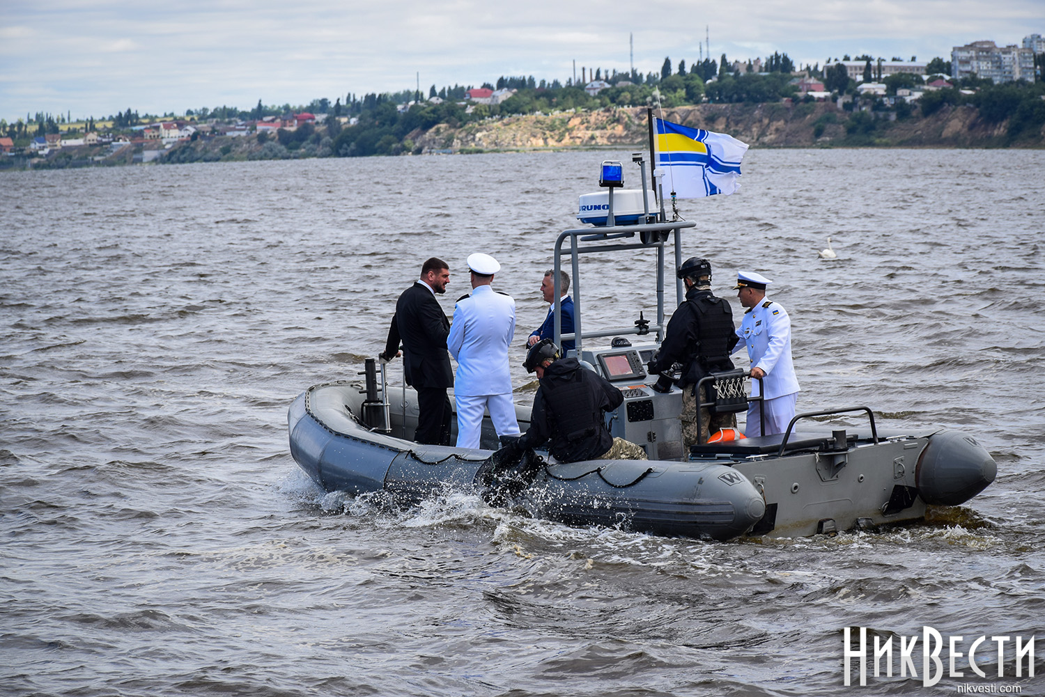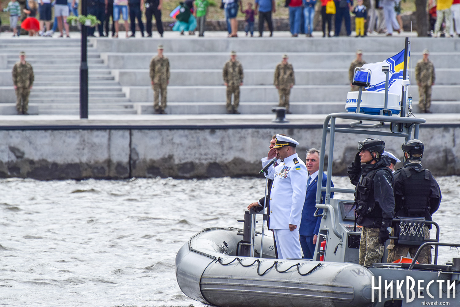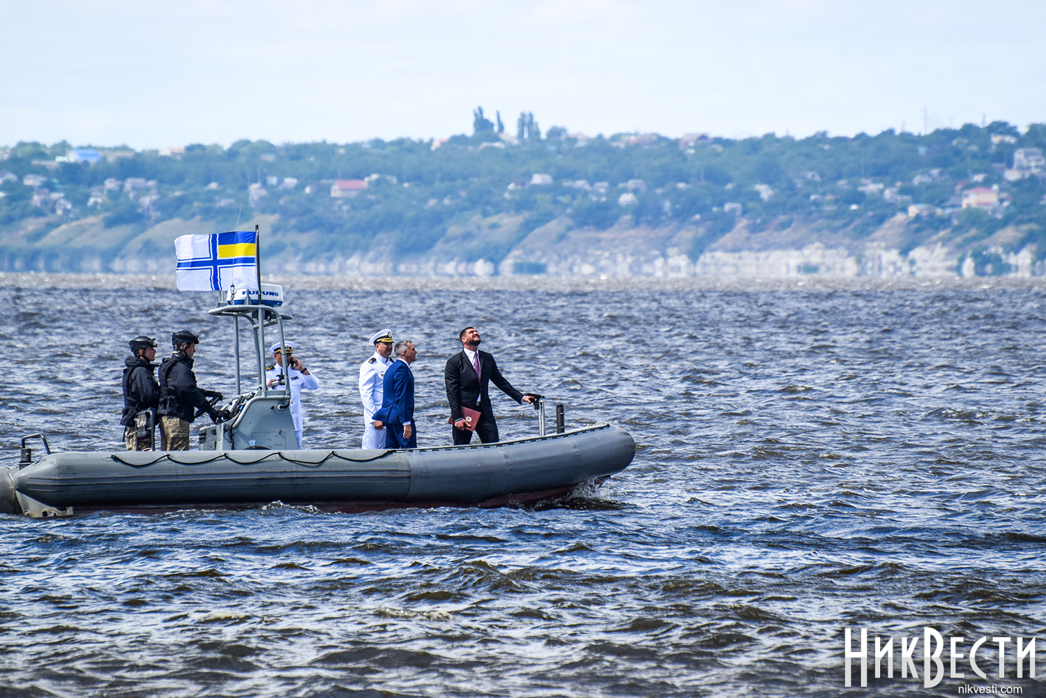 Сегодня, 1 июля, на военном катере по пути на набережную речного вокзала «*8 причал», где проходит празднование Дня военно-морских сил Украины, мэр и губернатор остановились у раздвижной части Варваровского моста, чтобы осмотреть его состояние, - сообщает корреспондент НикВести.