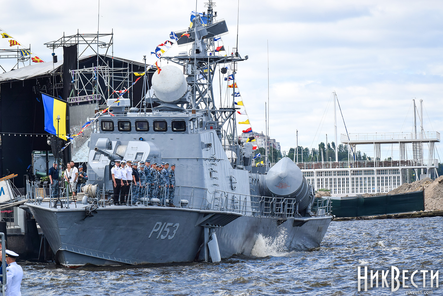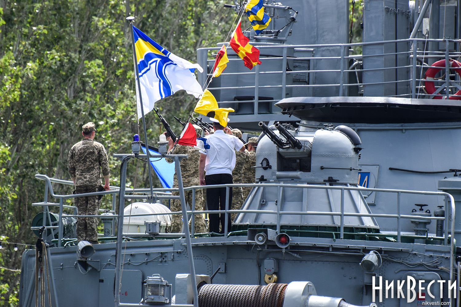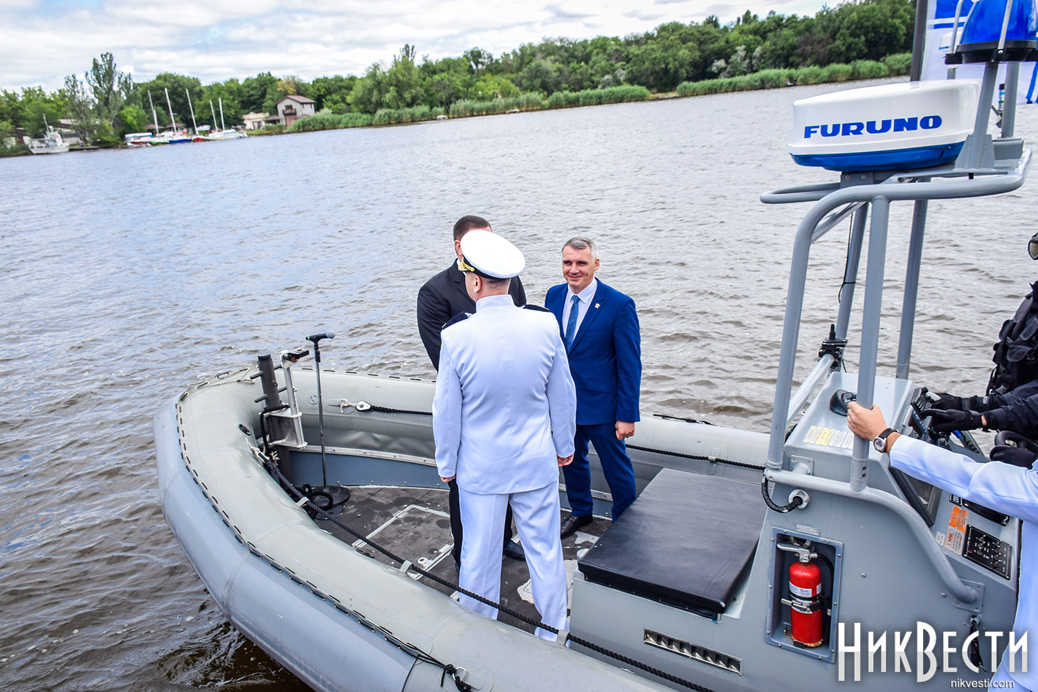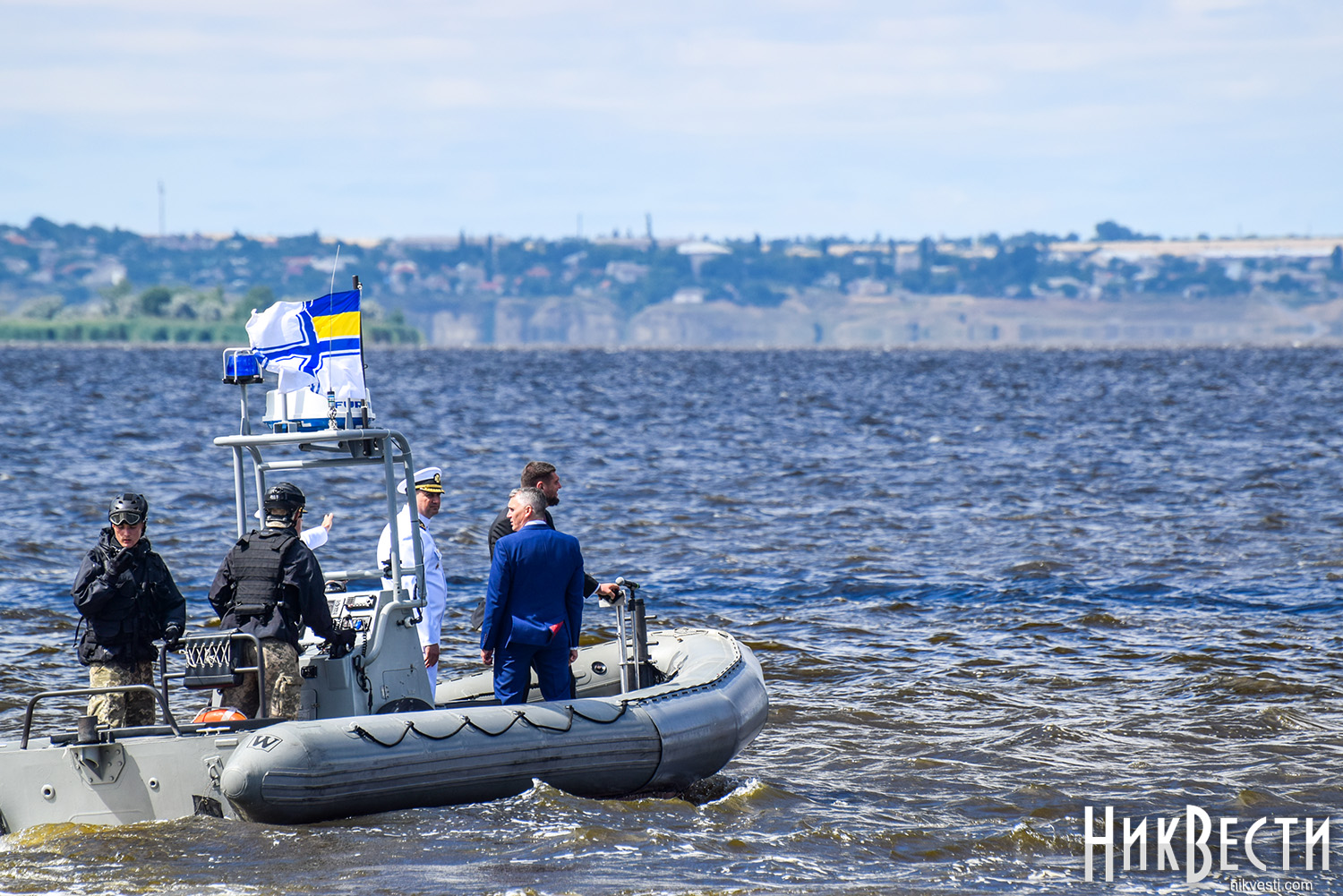 Сегодня, 1 июля, на военном катере по пути на набережную речного вокзала «*8 причал», где проходит празднование Дня военно-морских сил Украины, мэр и губернатор остановились у раздвижной части Варваровского моста, чтобы осмотреть его состояние, - сообщает корреспондент НикВести.