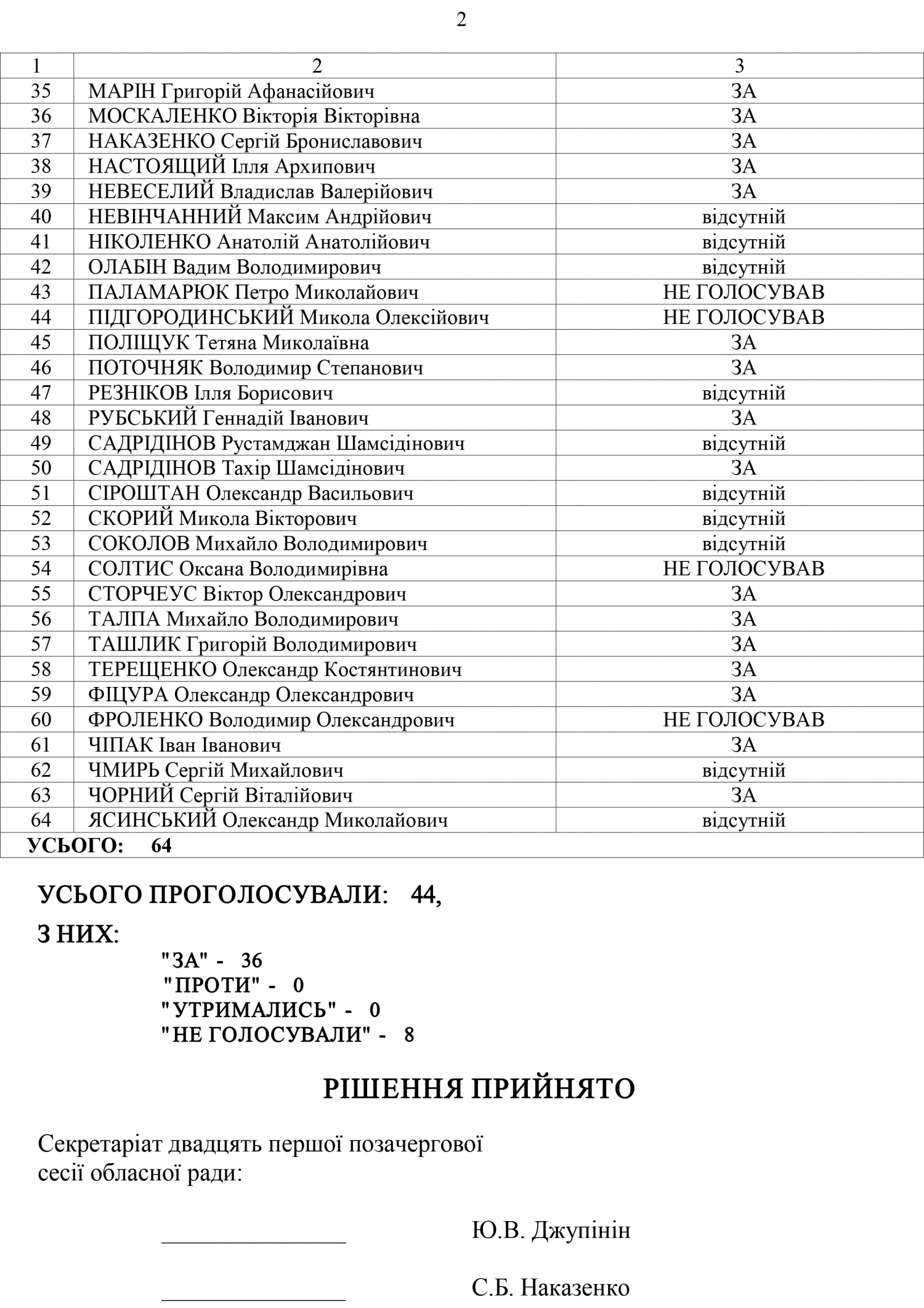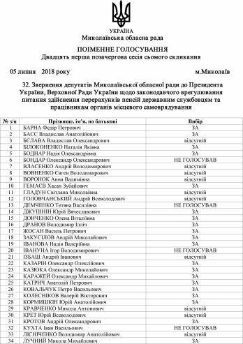 За данное решение проголосовали 36 депутатов из 44 присутствовавших на сесии Николаевского облсовета, 8 не голосовали.