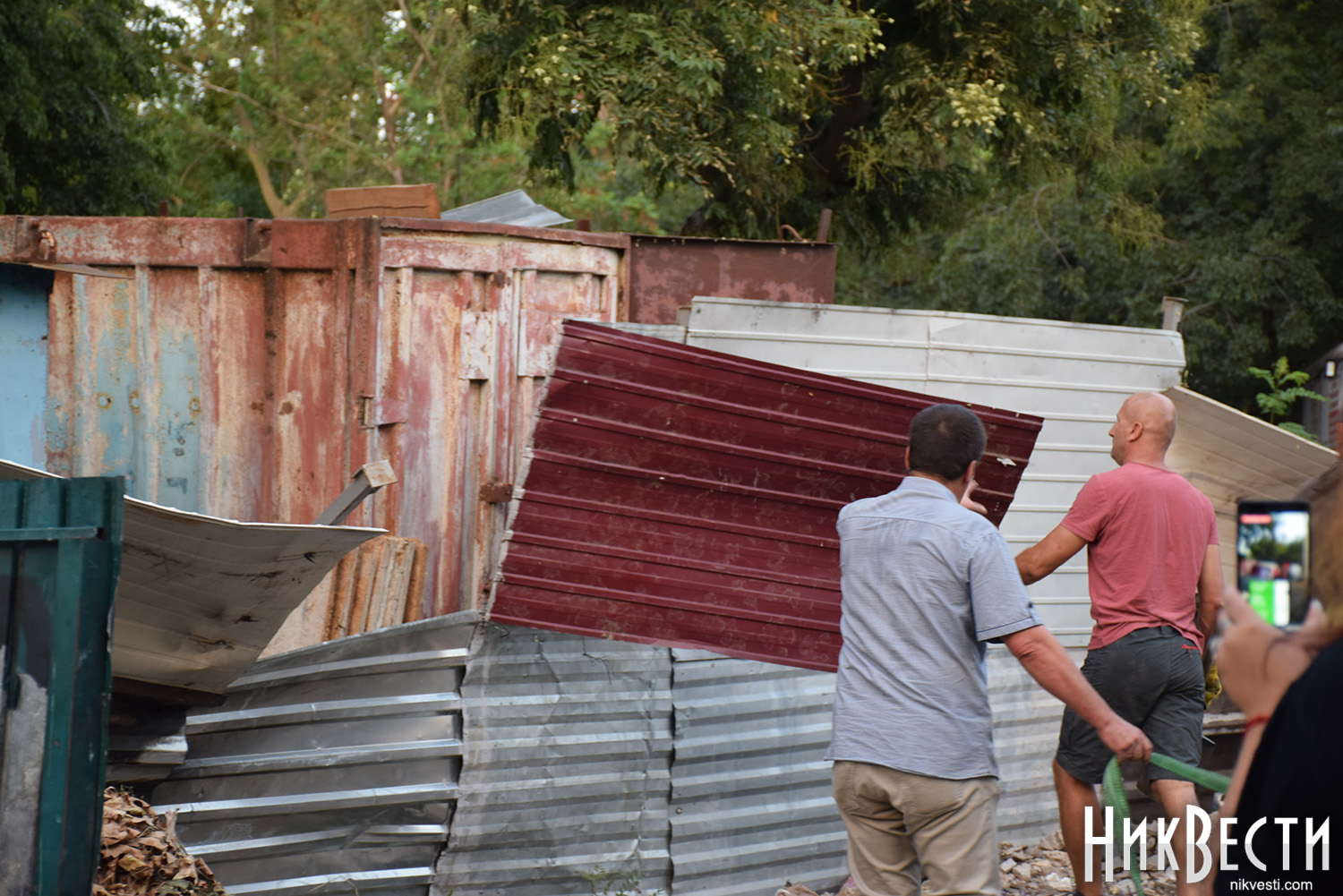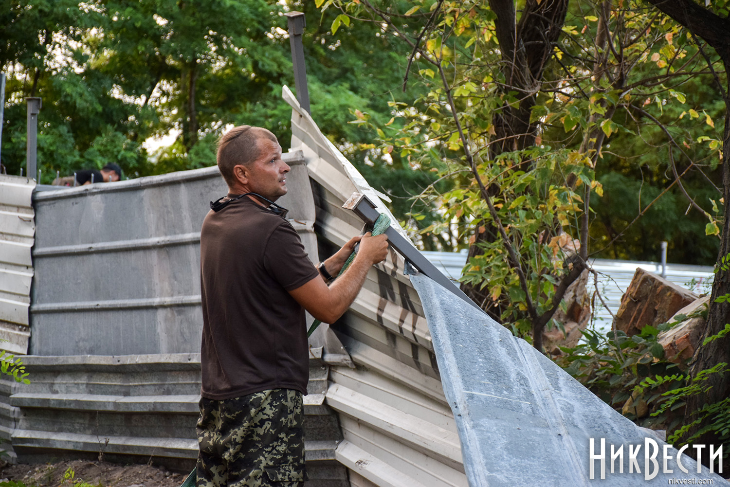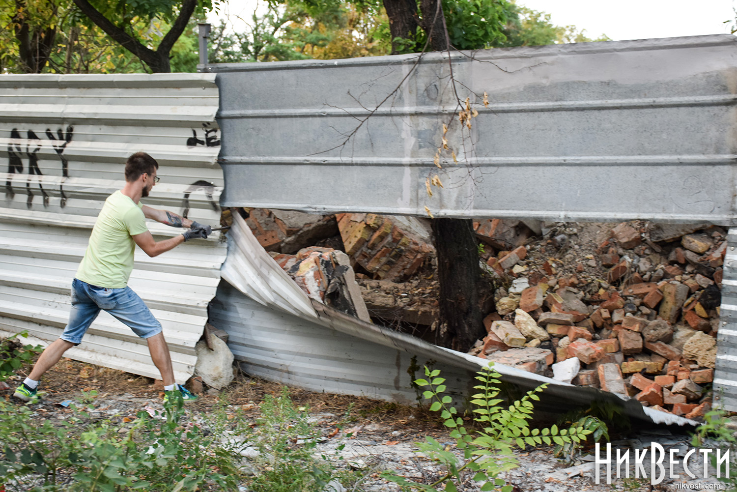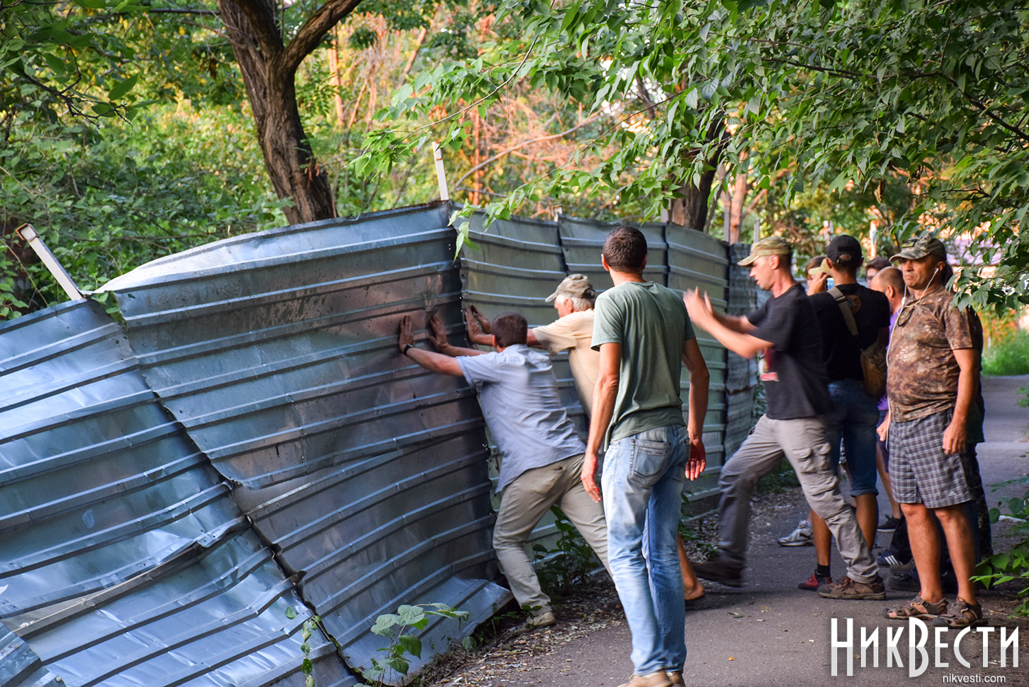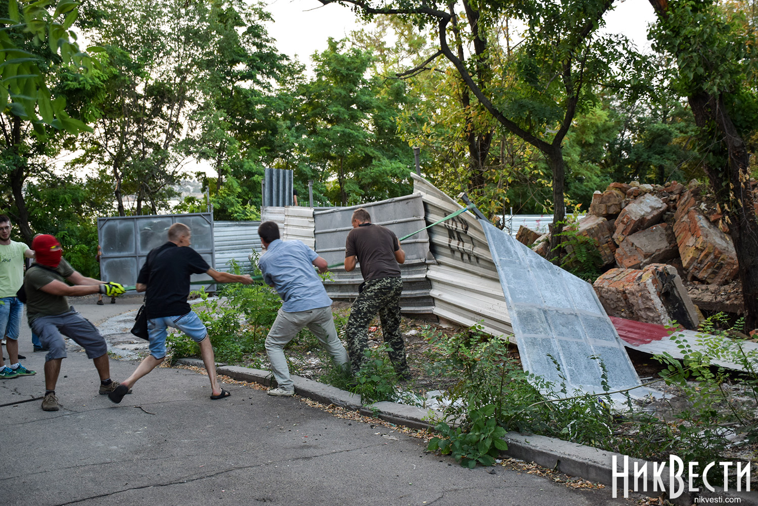 Николаевцы снесли забор вокруг стройки в микрорайоне Леваневцев, утверждая, что она незаконна