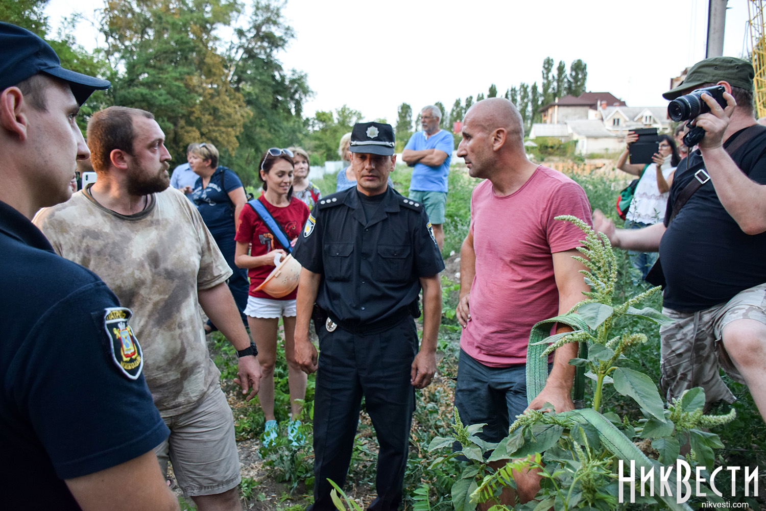 Однако присутствовавший на месте строительства директор департамента внутреннего финансового контроля, надзора и противодействия коррупции Николаевского городского совета Андрей Ермолаев заявил, что стройка, на которой снесли забор, незаконная и предстваил правоохранителям соответсвующий документ.