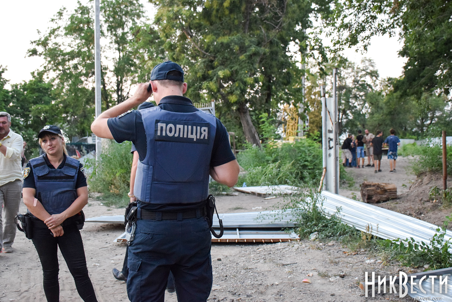 По истечению часа на место прибыли сотрудники следственно-оперативной группы. Правоохранители составляли протоколы, опрашивая местных жителей. На вопрос корреспондента НикВести, как будут квалифицированы действия активистов, один из сотрудников ответил, что пока выясняются все обстоятельства произошедшего. В дальнейшем на основании показаний свидетелей и собранных материалов демонтаж активистами забора будет квалифицирован либо как хулиганство, либо как порча имущества.