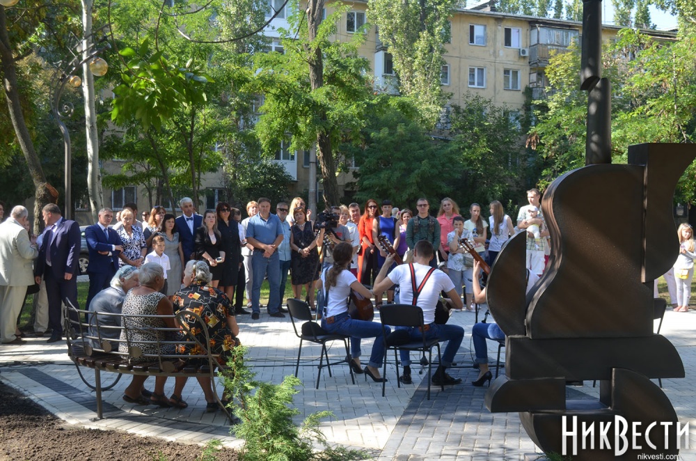 Первый сквер по улице Белой был создан в честь режиссера и композитора, создателя ансамбля песни и танца «Корабел», первого художественного руководителя областного дворца культуры Игоря Криворучко. Горожан поздравил мэр Александр Сенкевич и глава Администрации Заводского района Виктор Дмитрук.