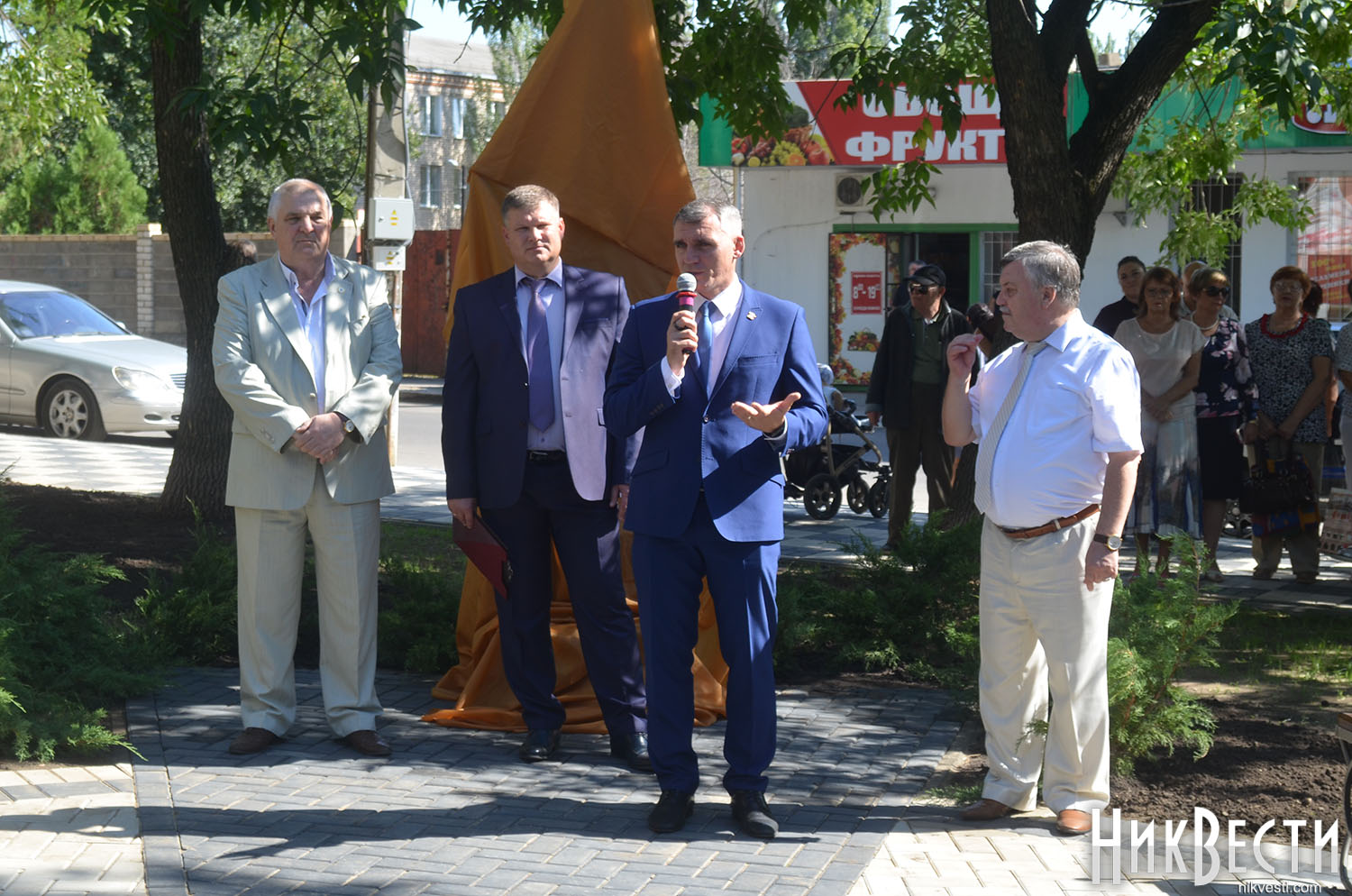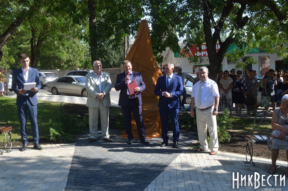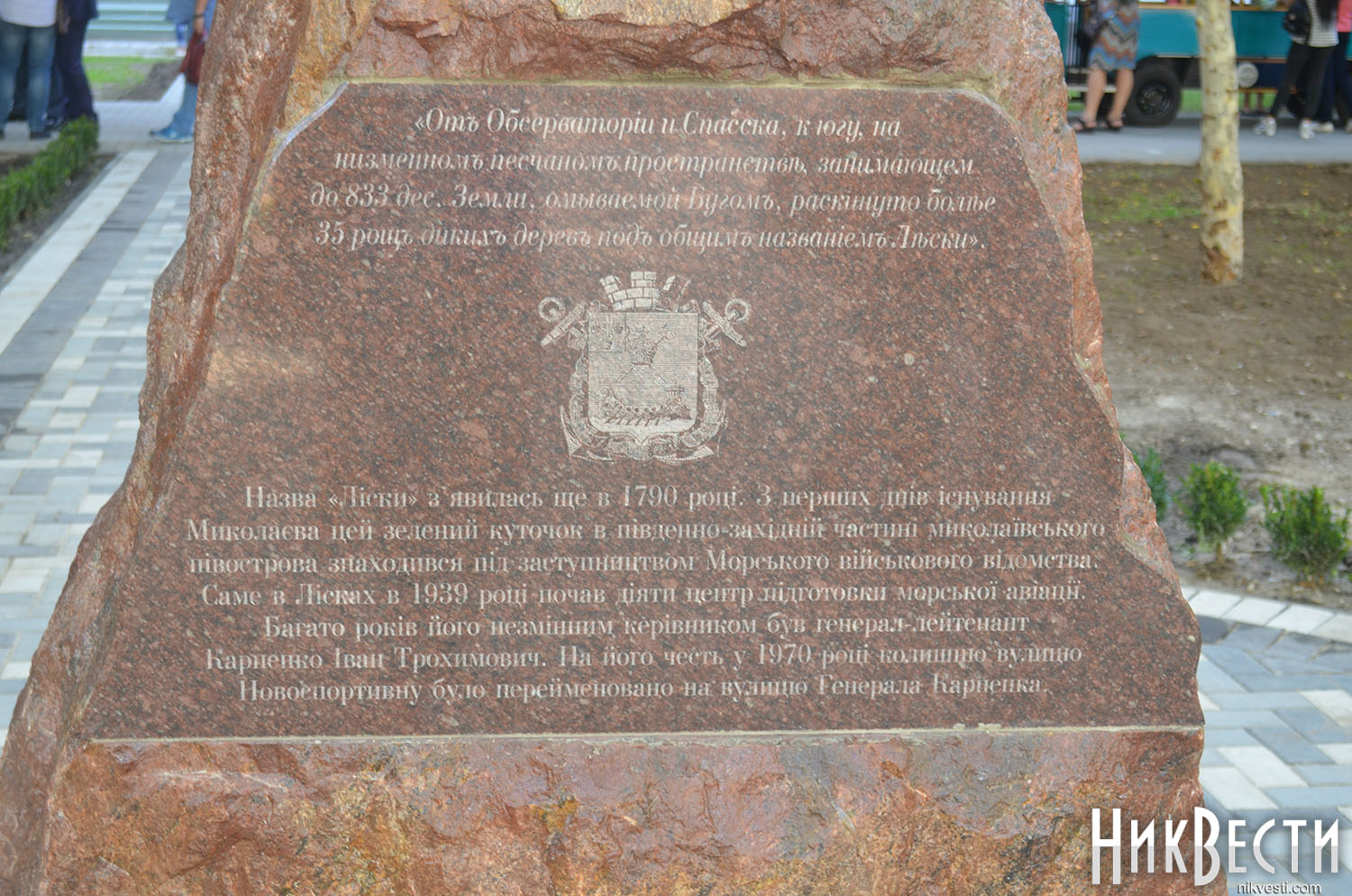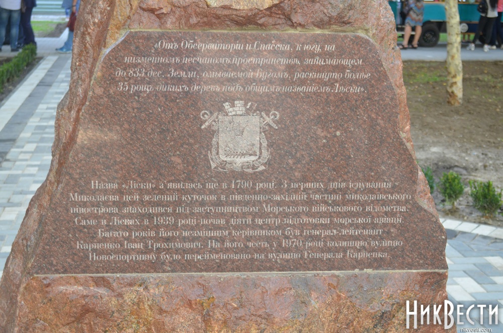 Во втором сквере по улице Генерала Карпенко установили монумент в виде каменной глыбы, на которой высечена краткая история Николаева и района «Лески» в частности. На его открытии также выступил Александр Сенкевич.