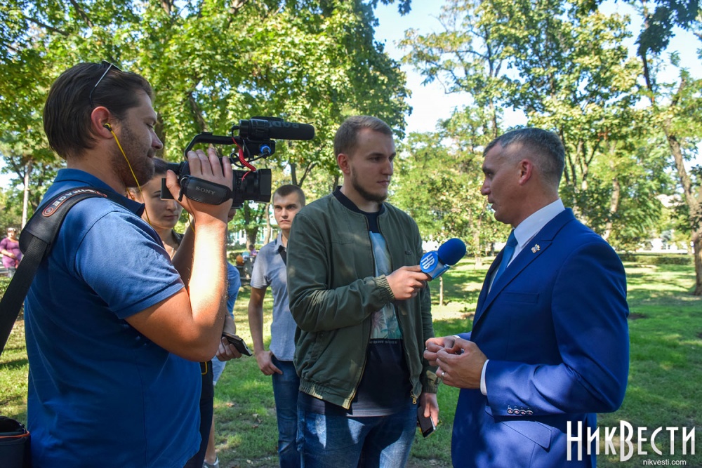 — Вспоминая 2013 год, очень тяжелый для города Николаева, когда мы потеряли мэра города, то Владимир Иванович принял его. Помимо всех проблем, ежедневных совещаний, подготовки вместе с Николаем Кругловым и депутатским корпусом он одним из первых задумал строительство абсолютно нового спортивного городка в Корабельном районе и заложил первый камень. И проезжая в этом районе, возле парка «Водолея», вы можете видеть еще одну память о том, как Владимир Иванович это делал, - сказал Игорь Дятлов.