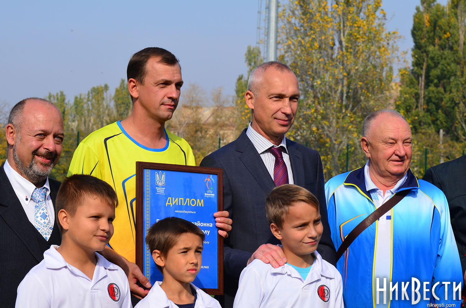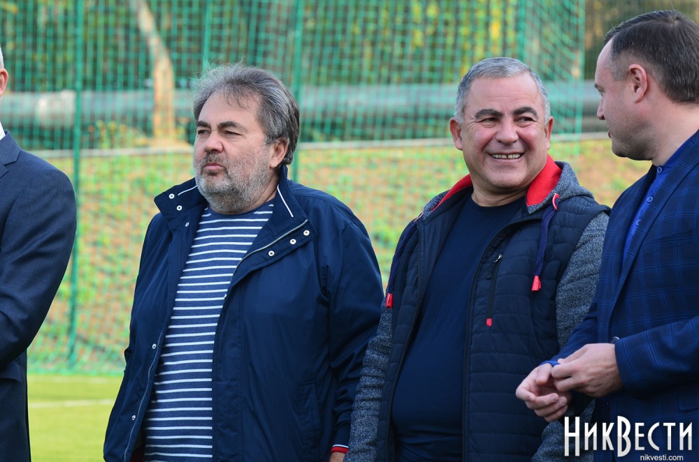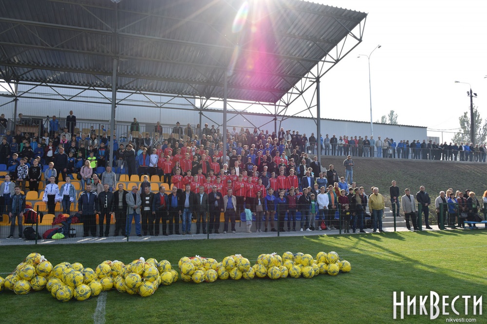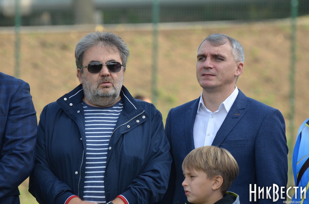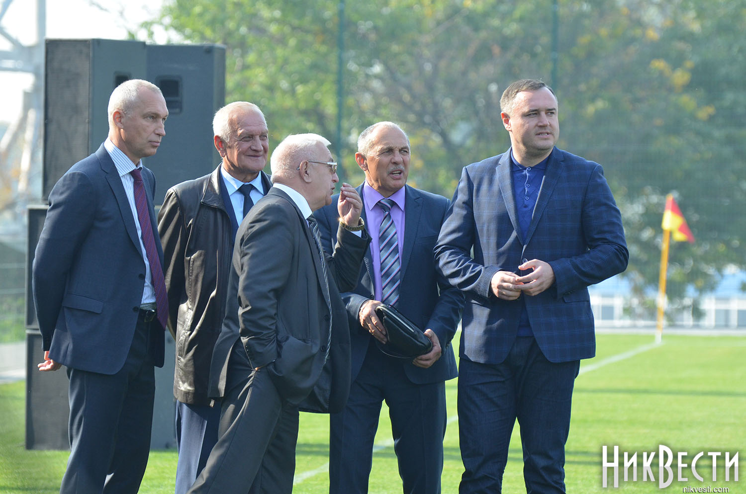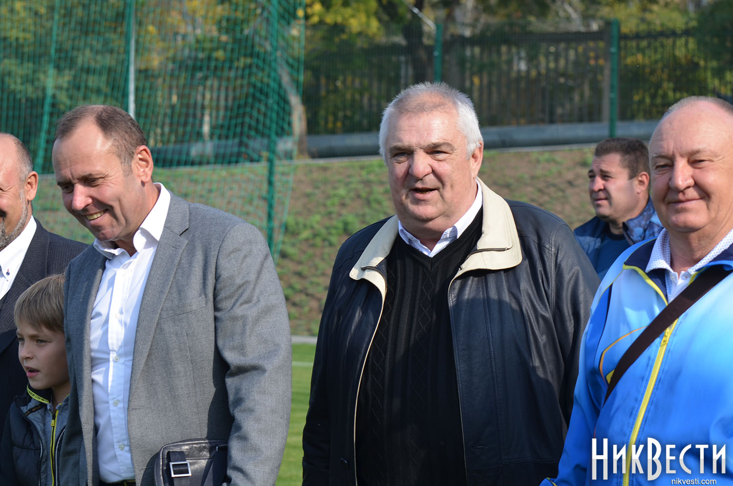 На торжественную часть открытия футбольного поля приехали первые лица города: Николаевский городской голова Александр Сенкевич, вице-губернатор Евгений Шевченко, а также депутаты городского и областного советов.