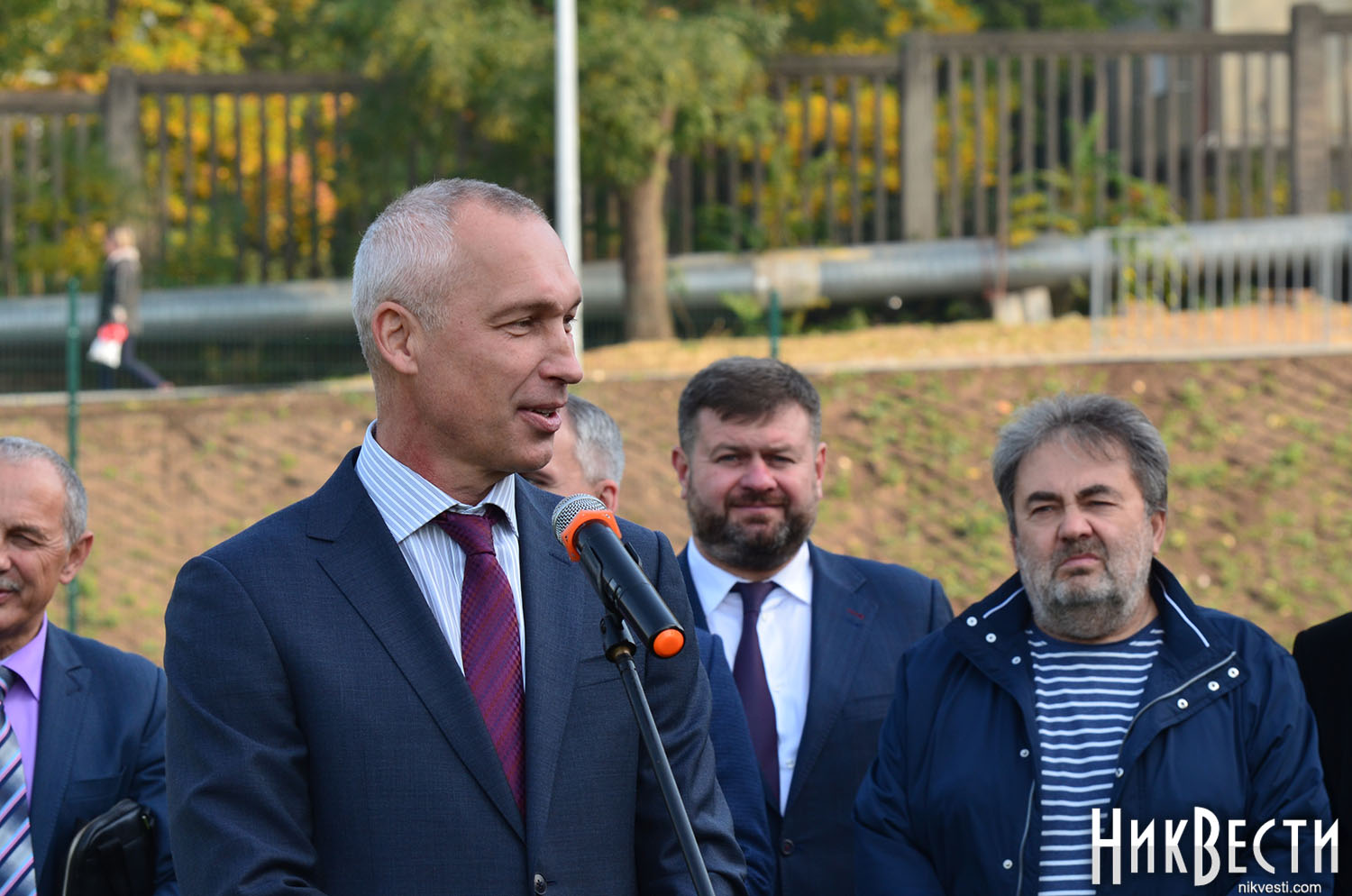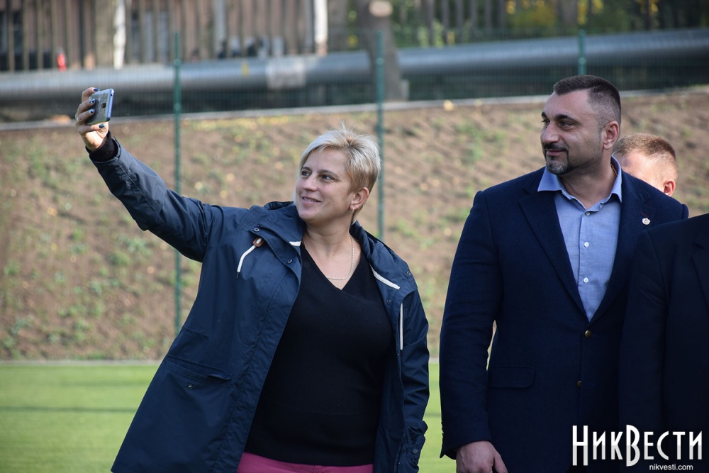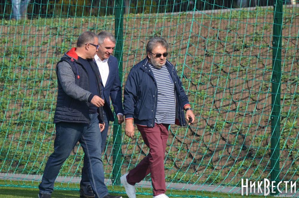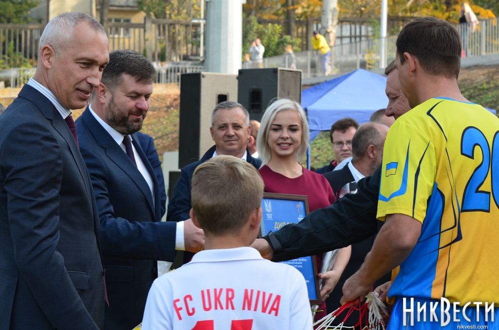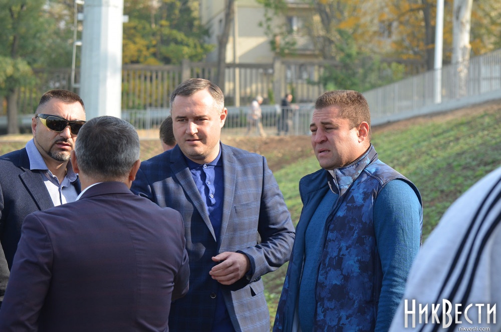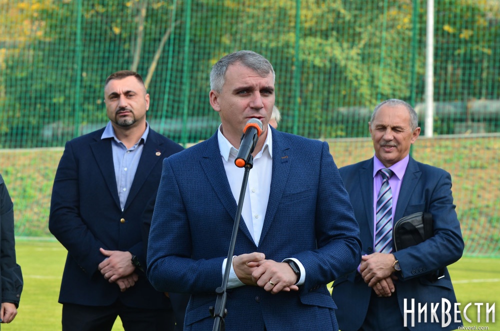 На торжественную часть открытия футбольного поля приехали первые лица города: Николаевский городской голова Александр Сенкевич, вице-губернатор Евгений Шевченко, а также депутаты городского и областного советов.
