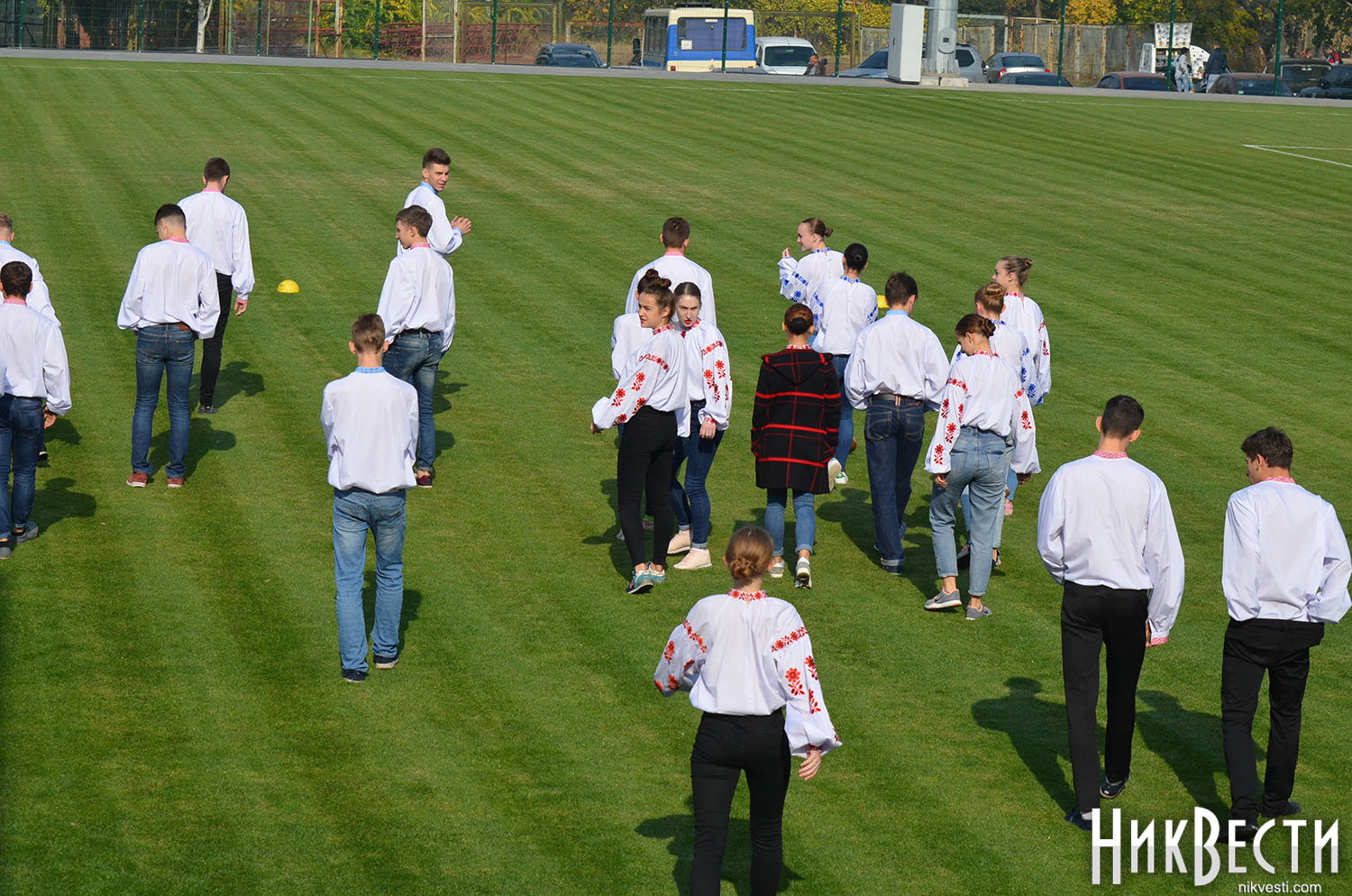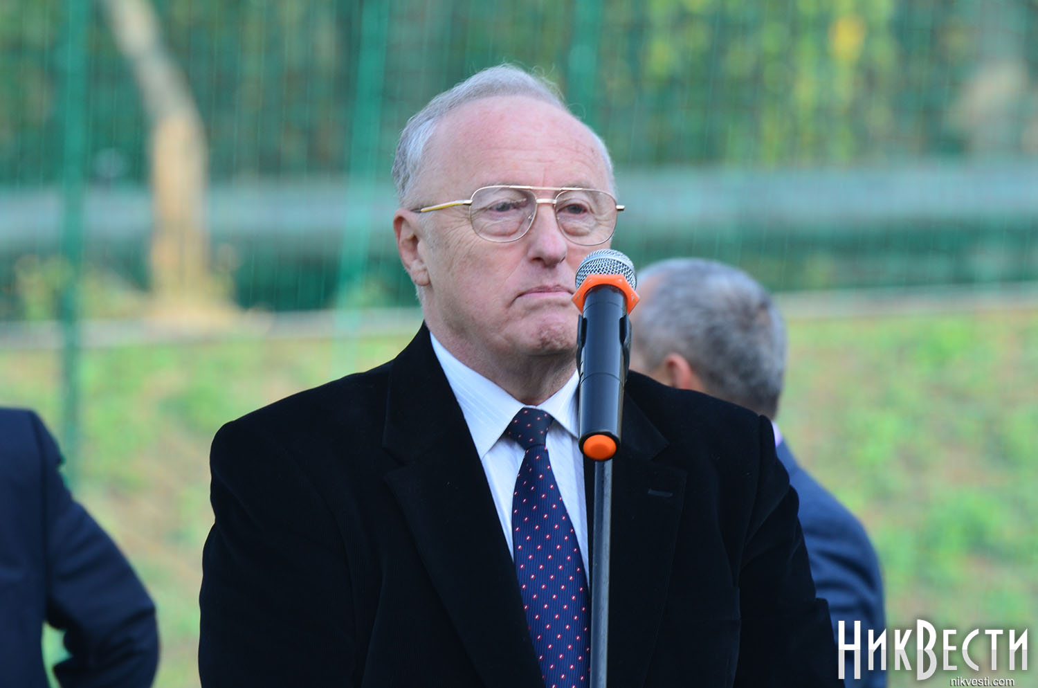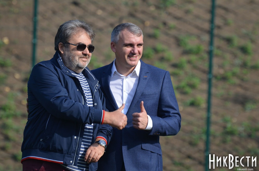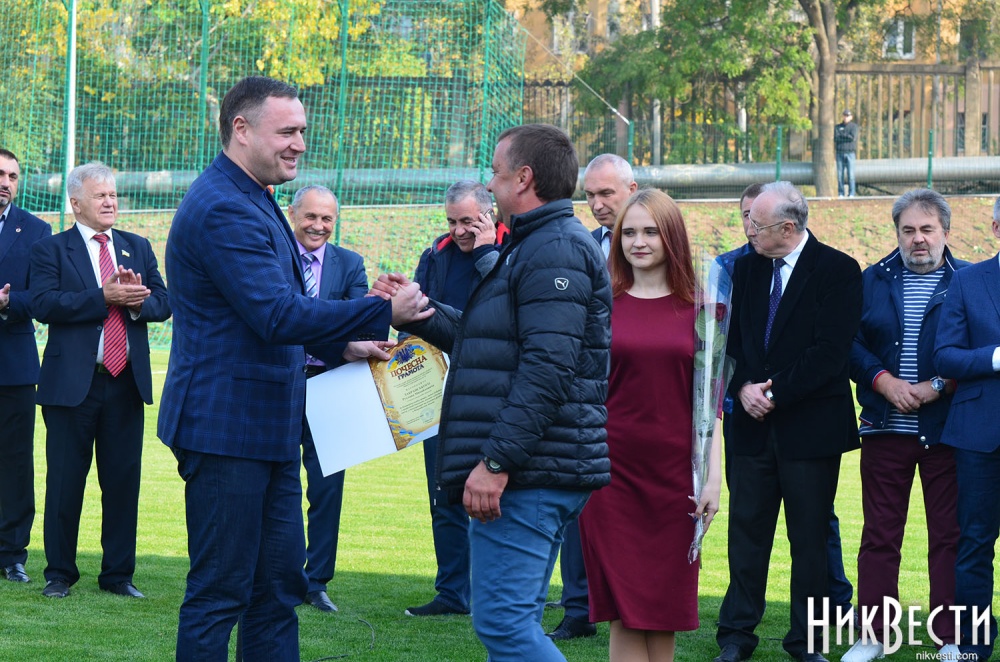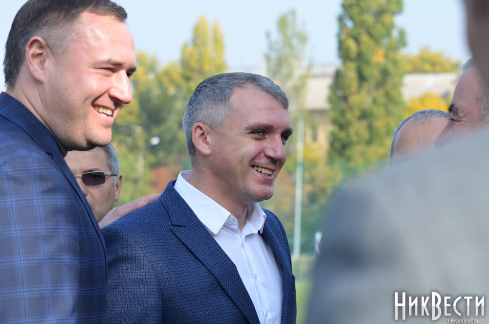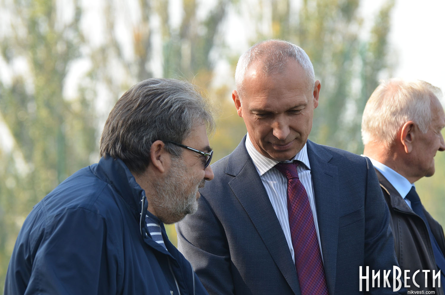 На торжественную часть открытия футбольного поля приехали первые лица города: Николаевский городской голова Александр Сенкевич, вице-губернатор Евгений Шевченко, а также депутаты городского и областного советов.