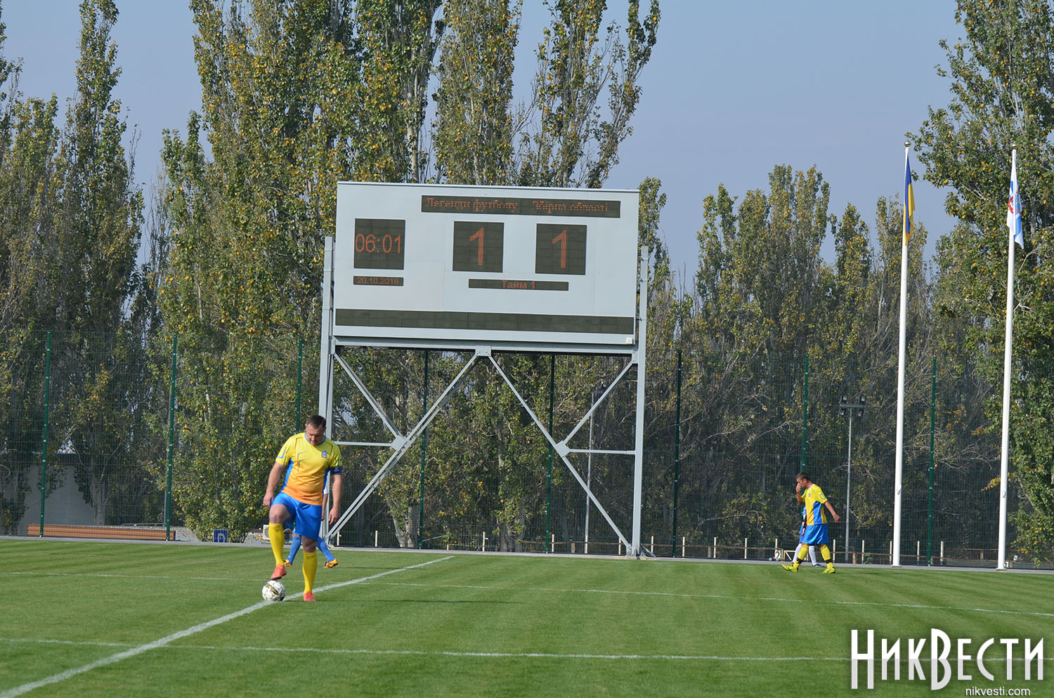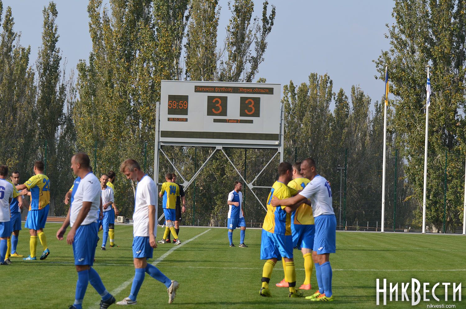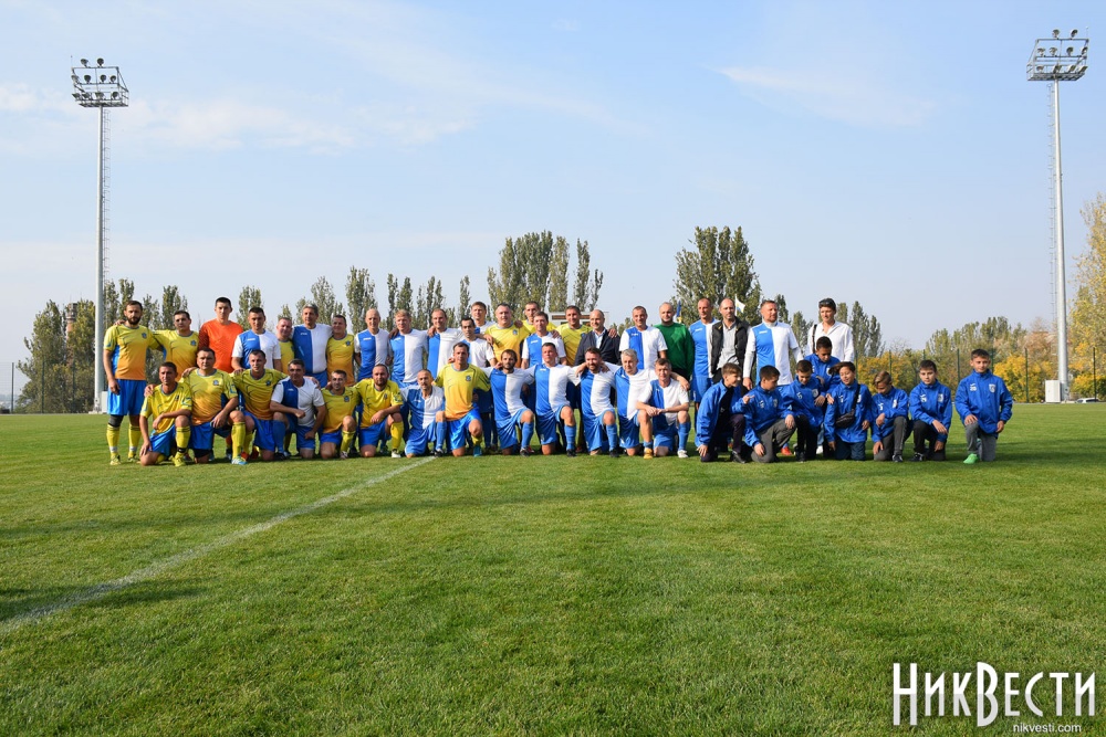 Товарищеский матч между командами «Легенды спорта» и «Сборной Николаевской области» был сокращенным, сыграли два тайма по 30 минут. Игра завершилась ничьей — 3:3.
