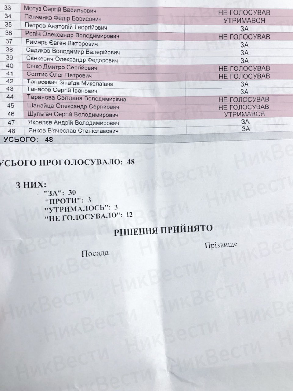 Всего за данное решение проголосовало 30 из присутствовавших на заседании 48 депутатов городского совета.